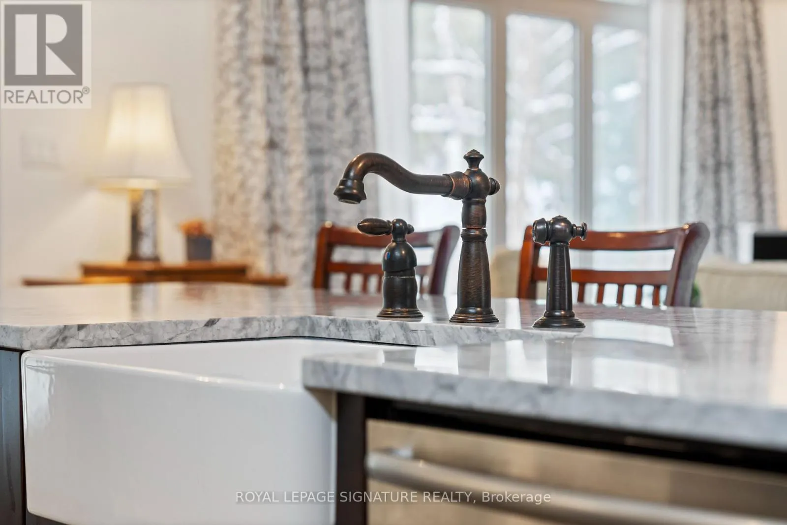 Cross Streets: Ocean Way. ** Directions: Hwy 6, turn north on Ocean way, east on Newport. Style and sophistication define this exceptional executive bungalow offering over 2,600 sq ft of finished living space on a spectacular lot in one of Port Dover's most prestigious neighbourhoods. Built in 2009 and upgraded to perfection, this move-in-ready home showcases modern colours,quality finishes, and thoughtful design throughout. The custom kitchen is a true showpiece,featuring an oversized island, marble countertops, stone backsplash, and stainless steel appliances, while a separate dining room and open-concept great room create an ideal space for entertaining, complete with cathedral ceilings, a striking limestone fireplace, built-in media storage, and wide plank hardwood flooring throughout most of the main level. The spacious primary suite offers a large walk-in closet and a spa-inspired ensuite with granite counters,vessel sinks, oversized walk-in shower, and a freestanding floor-mounted bathtub. Additional main-floor bedroom, a beautifully updated 3-piece bath with walk-in shower, and a generous laundry room with garage access complete the level. The mostly finished basement expands the living space with a large recreation room behind elegant French doors, two spacious bedrooms, a3-piece bath with walk-in shower, a versatile office with ample storage, a second kitchen area,and a utility room offering even more storage. The private, landscaped backyard backs onto Black Creek Conservation Area and is an entertainer's dream, featuring a covered porch, stone patio, armour stone, river rock, perennial gardens, and mature trees that provide breathtaking fall colour. Recent updates include upgraded shingles, resurfaced driveway, and custom drapery valued at over $8,000. Ideally located near just minutes from Port Dover's beach, marina, theatre, shops,restaurants, and downtown core, this home offers the perfect blend of luxury, comfort, and lifestyle in one of Norfolk County's most sought-after lakeside communities. (id:27476)