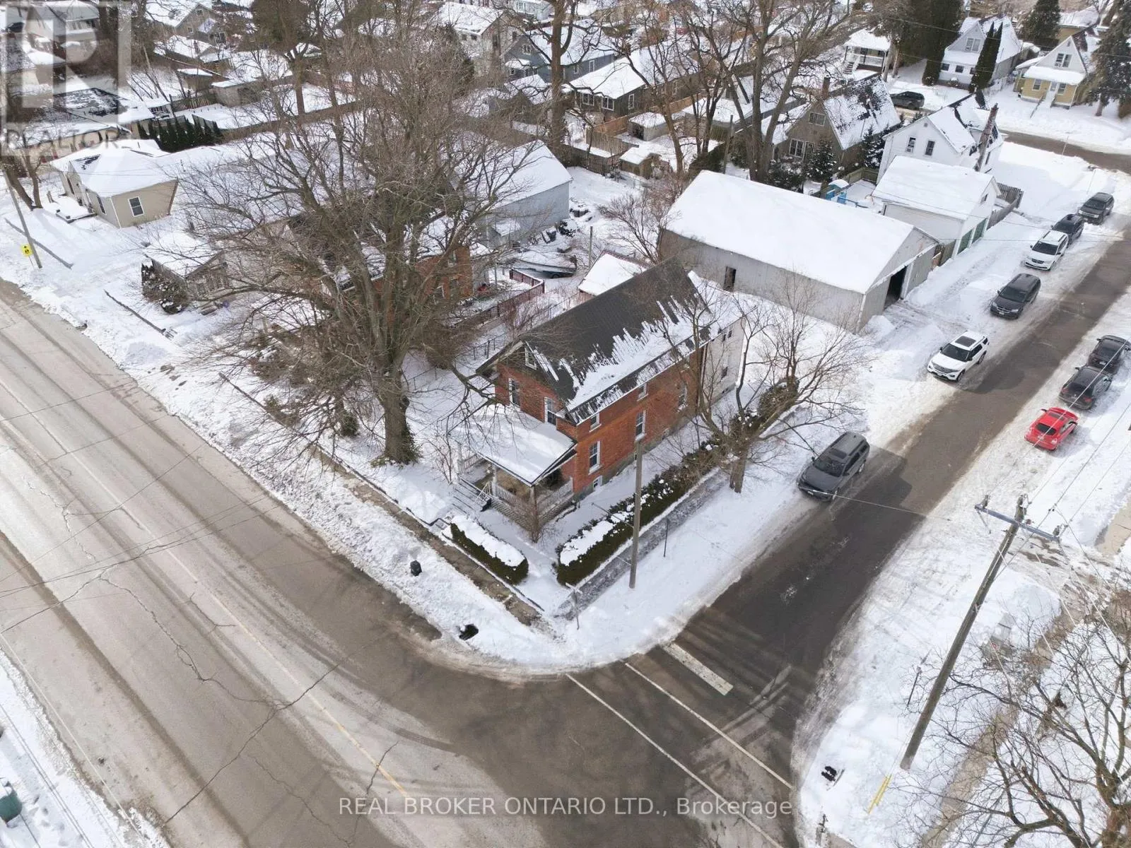 Cross Streets: Marshall Lane. ** Directions: Queensway W to Queen St N. Welcome home to 58 Queen Street North, ideally located in the heart of Simcoe. This solid all-brick home sits on a generous lot and offers exceptional versatility, including an over 1900 sqft detached shop with hydro, oversized garage door, and loft space. Perfect for hobbies, storage, or a small business opportunity.Inside, a spacious entryway opens into a bright, open-concept living and kitchen area. The kitchen features warm wood cabinetry, tiled backsplash, stainless steel appliances, and durable concrete countertops. Exposed brick accent walls throughout the main level add a charming, rustic character. A wide hallway off the kitchen provides the perfect space for a home office, reading nook, or additional seating area. The main floor also offers a very spacious 4-piece bathroom with an oversized vanity and soaker tub, along with the convenience of a main-floor bedroom complete with a walk-in closet.The upper level features three additional generously sized bedrooms, including the primary bedroom, all filled with natural light. Laundry is conveniently located on this level, along with another large 4-piece bathroom. A loft-style area completes the upper floor, ideal for a cozy sitting space, play area, or flex room. An unfinished basement provides additional storage and future potential.This property also presents excellent investment potential, with the possibility to convert the home into a duplex thanks to existing double staircases and multiple entrances.Some recent updates include newer windows, appliances, and a new metal roof. The detached shop offers endless possibilities - create the ultimate man cave, dream garage, workshop, or operate a small business from home.A unique opportunity with space, updates, and flexibility - this is one you won't want to miss. (id:27476)