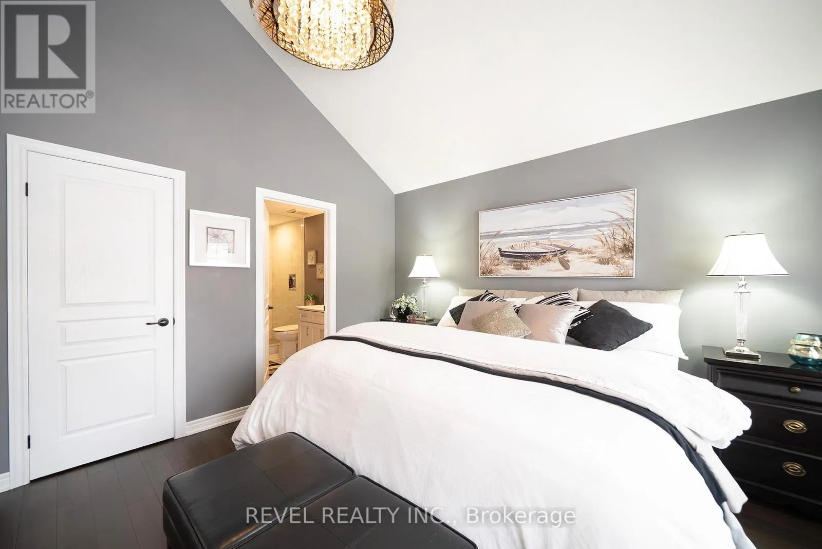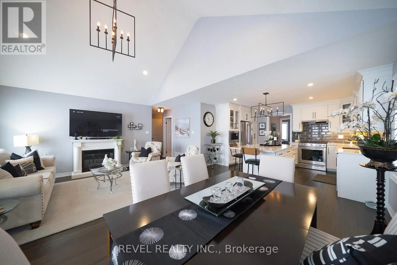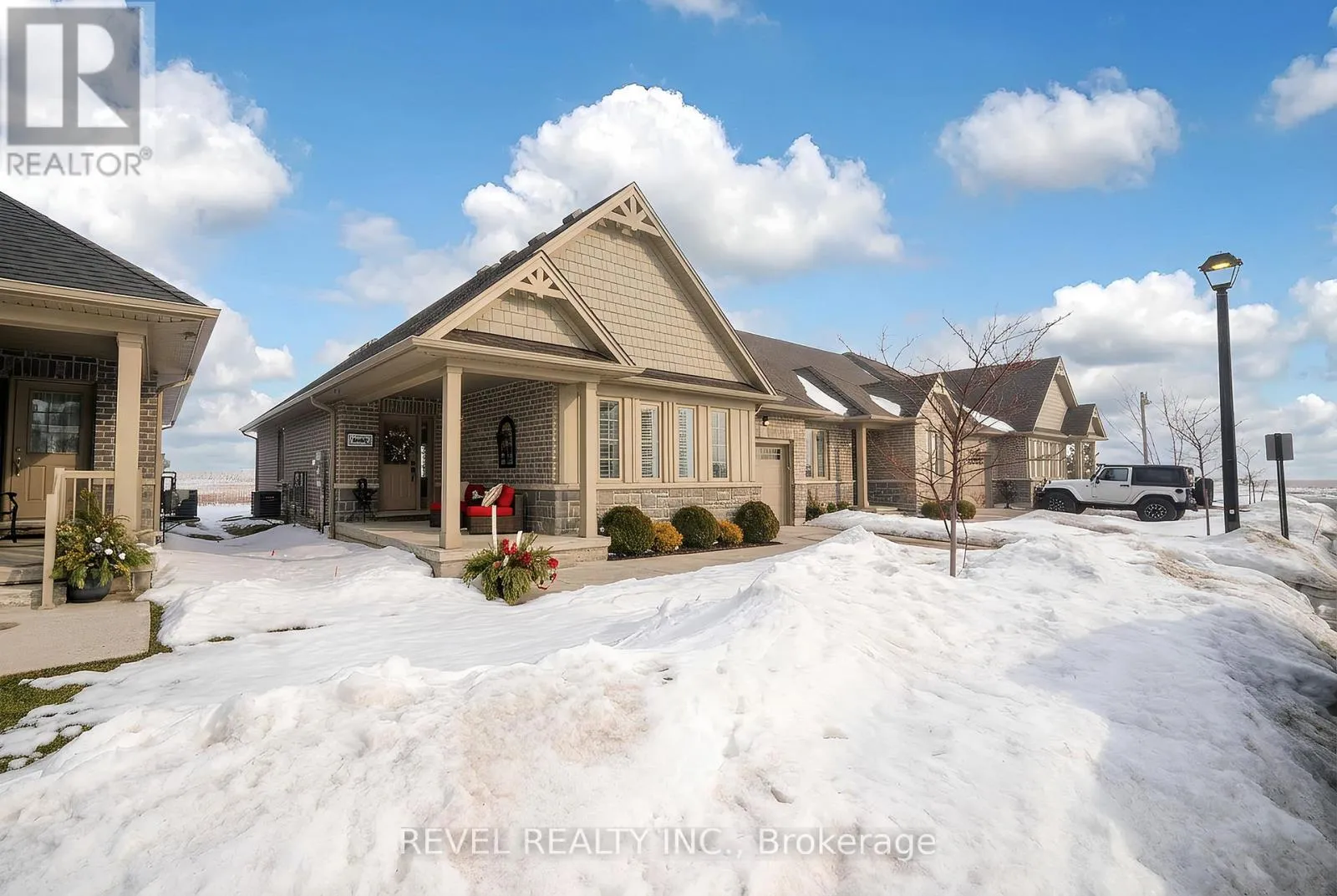 Cross Streets: Dover Coast Blvd & Schooner Drive. ** Directions: Dover Coast Blvd to Schooner Drive. Welcome to 261 Schooner Drive in beautiful Port Dover - a stunning end-unit freehold (POTL) townhome offering stylish, low-maintenance bungalow living. This 2-bedroom, 2-bathroom home features a bright, thoughtfully designed layout just minutes from the lake, beach, golf and the charming shops and restaurants in their downtown core.The main floor offers a desirable open-concept design, enhanced by vaulted ceilings (LR/ DR), engineered hardwood flooring and California shutters throughout the principal rooms and bedrooms. The inviting front entrance leads into an upgraded white shaker kitchen complete with quartz countertops, subway tile backsplash, under-cabinet lighting, stainless steel appliances including a 5-burner gas stove, and a spacious centre island with pendant lighting. The kitchen flows seamlessly into the dining area and great room, creating an ideal space for both everyday living and entertaining. Patio doors extend the living space to a private 16' x 12' concrete patio with no current rear development behind.The spacious primary bedroom offers vaulted ceilings, a walk-in closet and a beautifully appointed ensuite with soaker tub and frameless glass shower. A second bright bedroom and full guest bathroom provide comfortable space for visitors or a home office. Main floor laundry and inside access to the single-car garage add everyday convenience.Ideally located near The Links at Dover Coast Golf Club, David's Restaurant & Spa and the Port Dover waterfront, this meticulously maintained bungalow is perfect for downsizers, retirees or anyone seeking turnkey living in a sought-after lakeside community.Enjoy life by the lake! It's a serious upgrade in lifestyle. (id:27476)