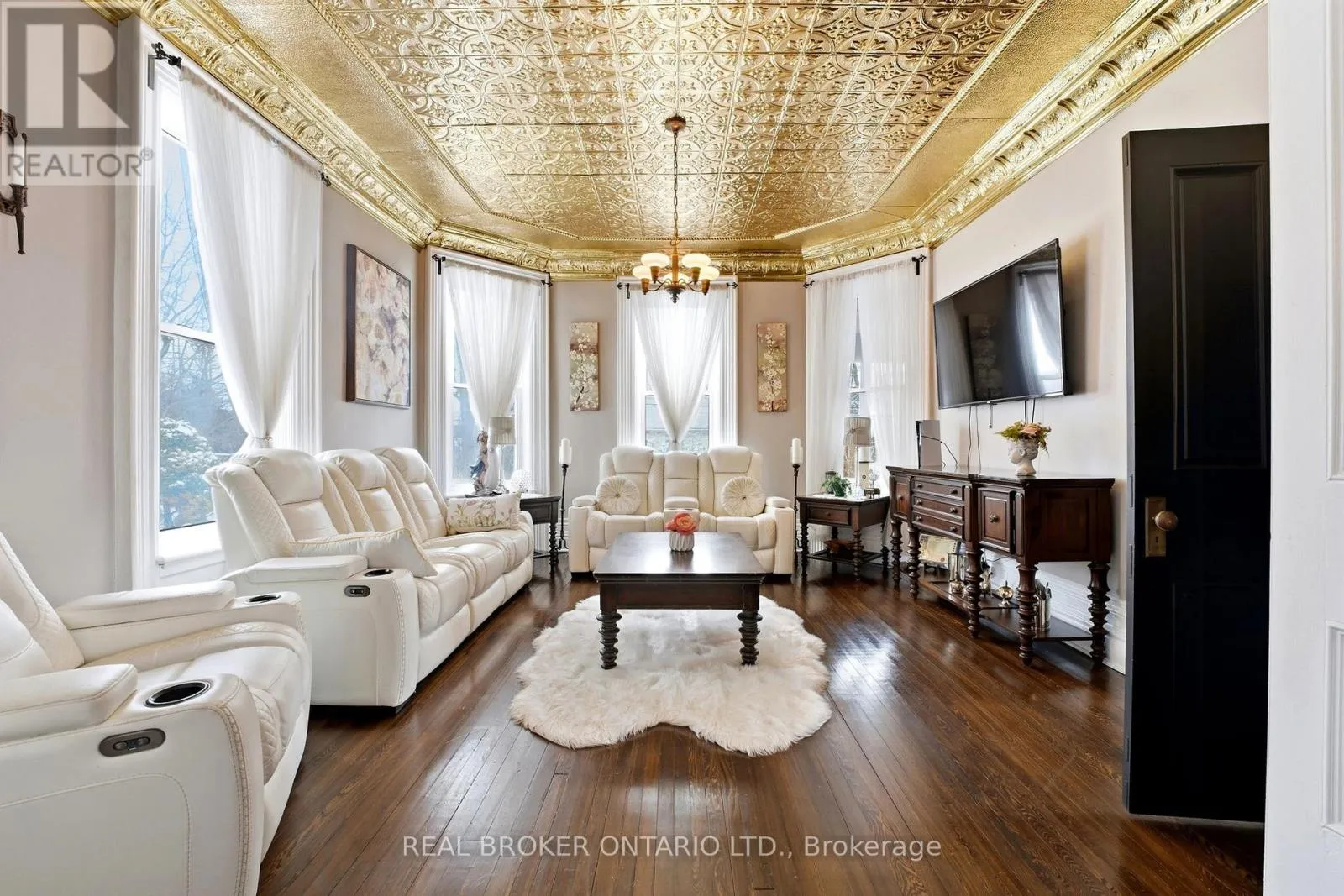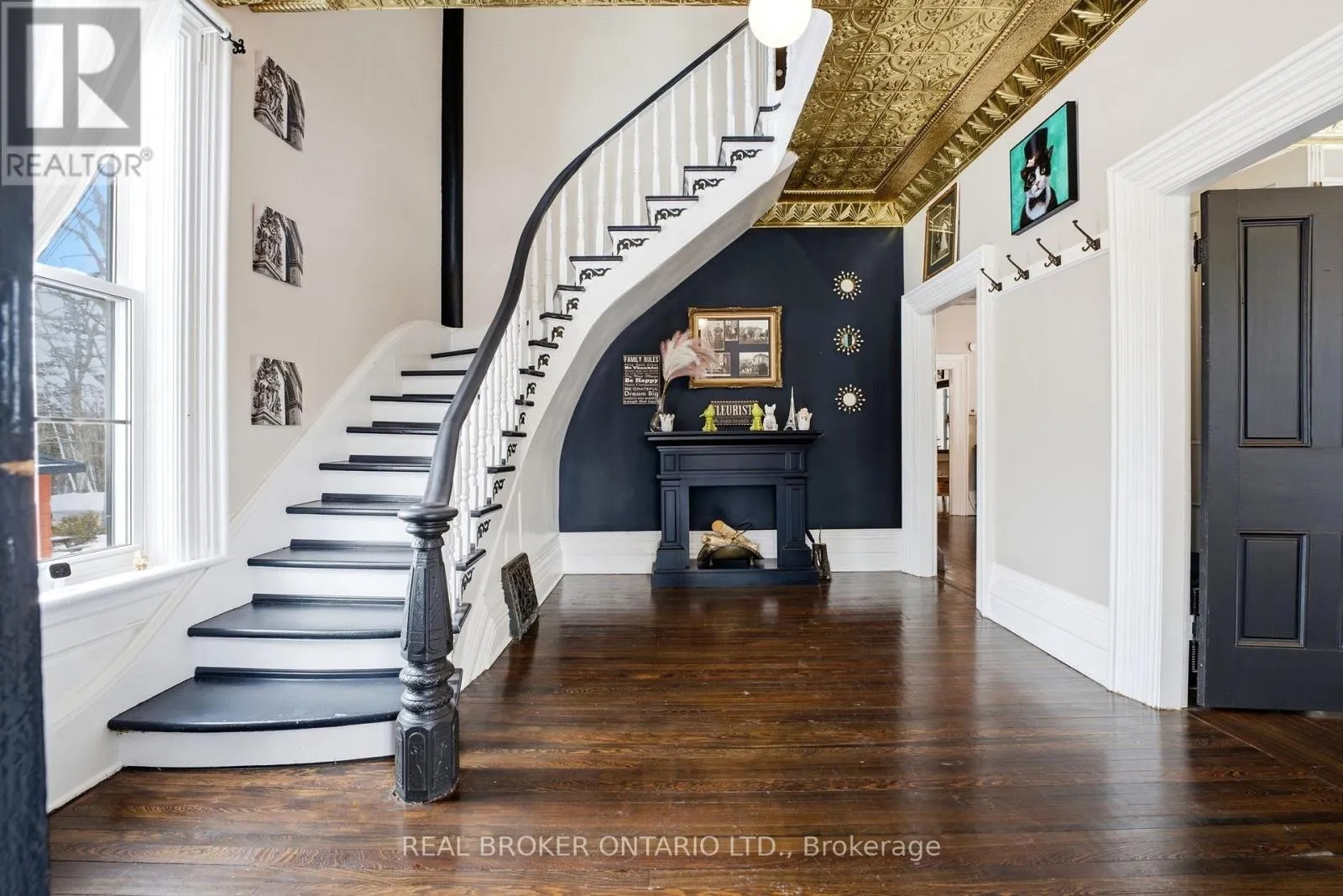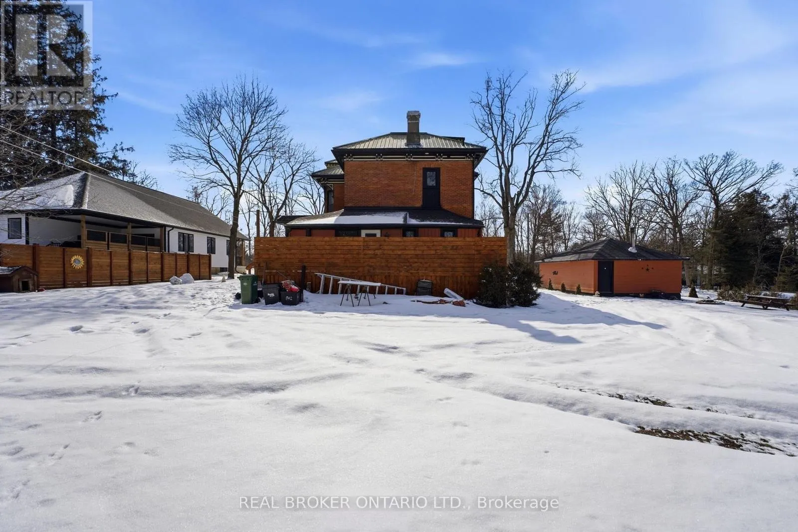 From Highway 3, turn onto Western Avenue. The property is located on the east side of the road. Welcome to the iconic Quance House - a celebrated landmark in Delhi, originally built in 1896 and steeped in local heritage. Once the residence of the prominent Quance family, owners of one of the last operating mills along Big Creek in Norfolk County, this grand 2.5-storey brick home is a timeless showcase of historic craftsmanship and enduring character. Set proudly on a rare half-acre corner lot spanning two streets, this stately property offers 4 spacious bedrooms plus a main floor office, 2 beautifully updated bathrooms, convenient main floor laundry, and a refreshed kitchen that blends modern function with classic style. Inside, the home's rich history is on full display. Soaring tin ceilings, refinished hardwood floors, original trim, and intricate architectural details create a warm and elegant atmosphere reminiscent of a bygone era. The formal dining room and expansive living room provide refined spaces for hosting gatherings or enjoying peaceful evenings at home. Thoughtfully maintained and updated, the home features newer windows, a durable steel roof, a double furnace system for efficient comfort, an owned hot water tank, and a Culligan water softener system. The full walk-through basement offers excellent storage and usability, complete with new awning-style windows that bring in natural light. Outdoors, the detached double-car garage includes an attached heated man cave - perfect for hobbies, a workshop, or entertaining on game day. The expansive backyard offers ample space to relax, garden, or explore the exciting potential for future lot severance. Located just steps from Quance Park, scenic walking trails, and the natural beauty of Big Creek, this is a rare opportunity to own one of Delhi's most treasured historic homes. Historic charm. Modern comfort. Endless potential. (id:27476)
