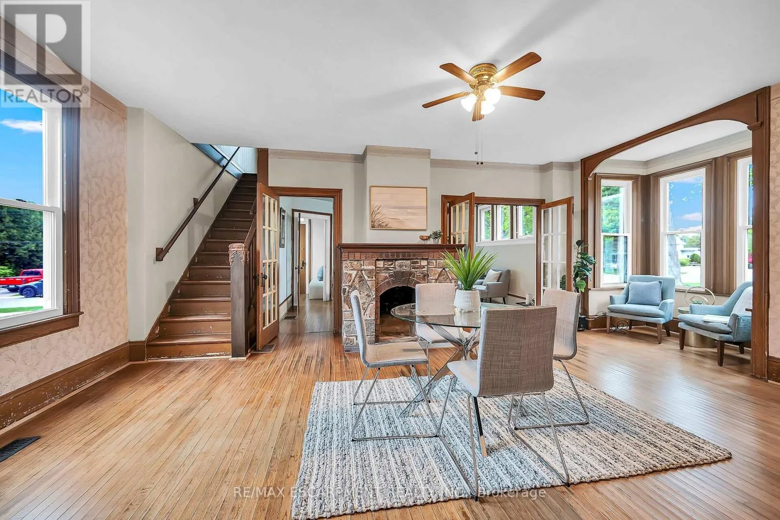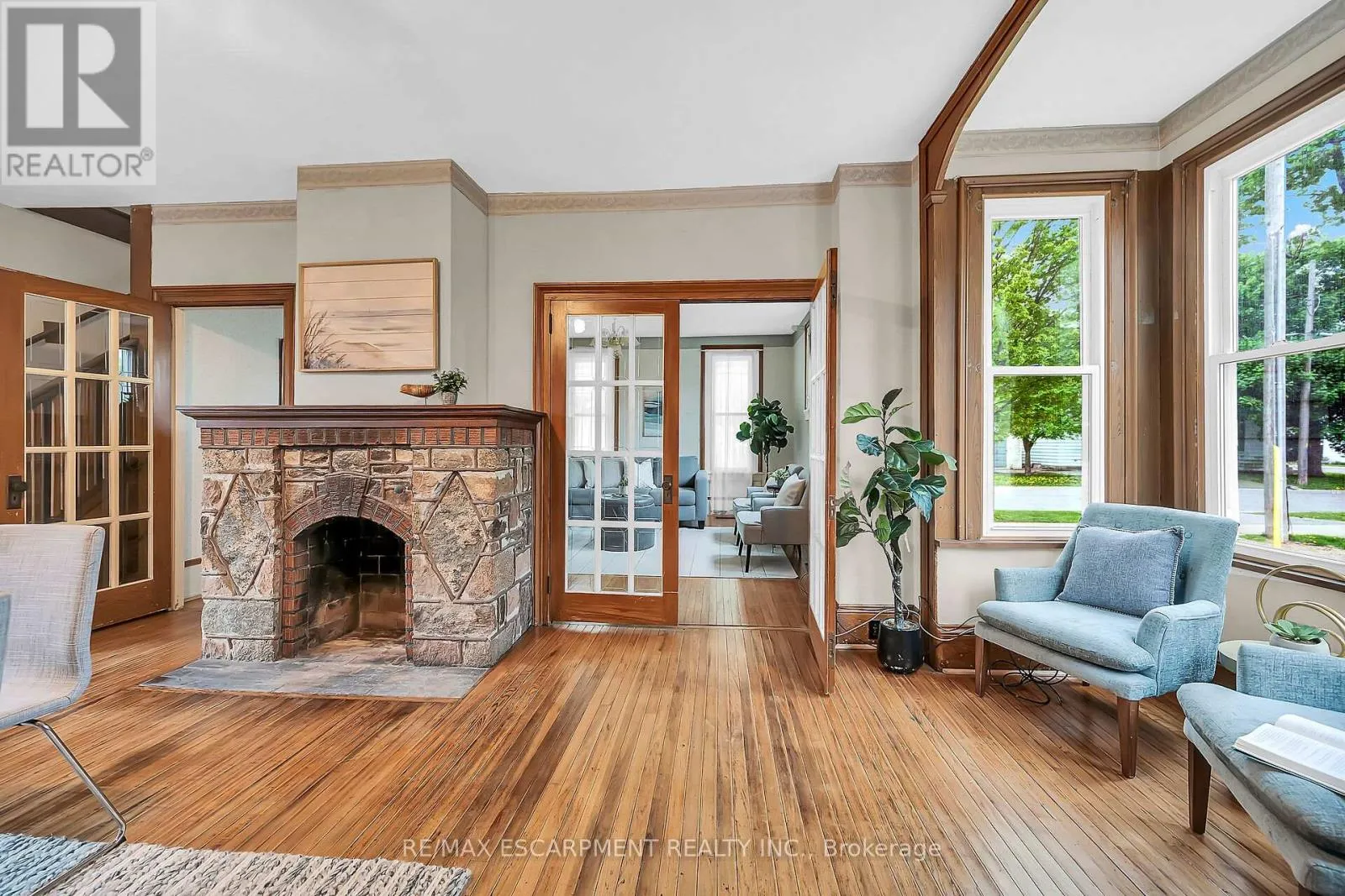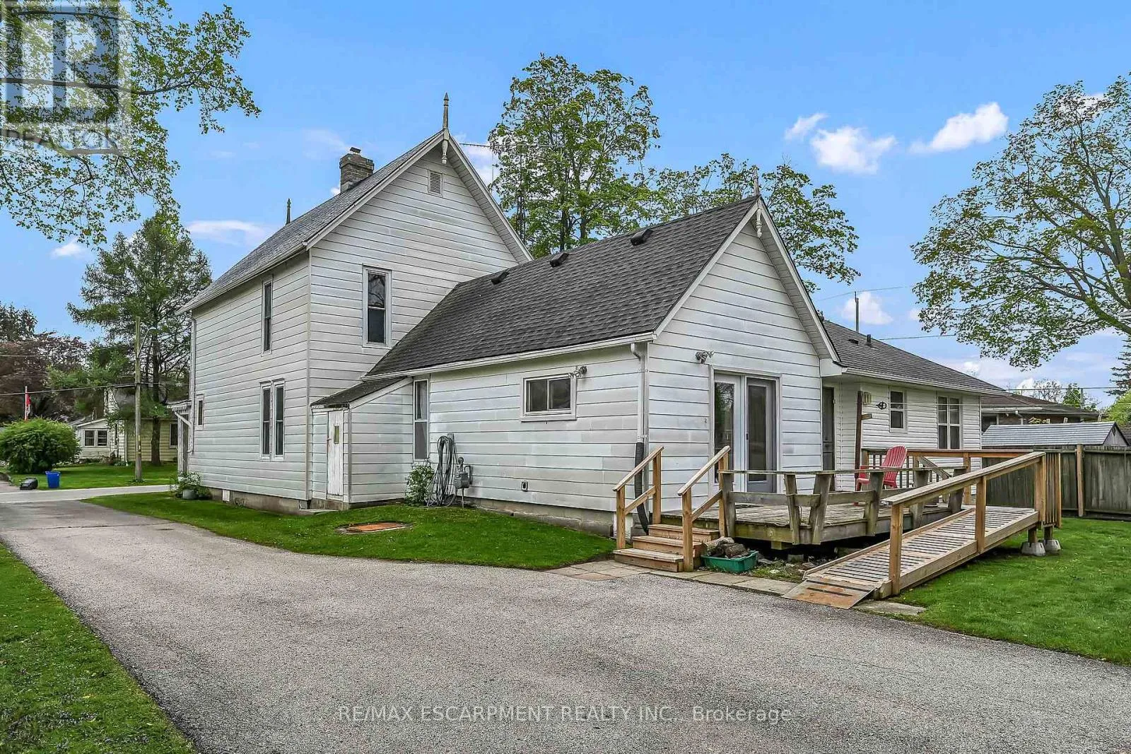 Cross Streets: MAIN STREET. ** Directions: Main Street to East on Greenock Street East. Stately 2 storey "Dover Classic" plus 2017 in-law style addition located in the heart of Port Dover - near schools & churches - walking distance to all of this popular Lake Erie town's sought after amenities - including live theatre, weekly "Music in the Park" attractions, eclectic shops, trendy eateries, mini golf, links style golf course & famous beach front. Positioned proudly on huge, mature 0.23 acre treed lot, the tastefully appointed home boasts quaint covered front porch & paved driveway extending to back yard where 128sf rear deck landing leads to separate doors accessing both primary & addition section. The freshly redecorated original home introduces 2,210sf of well preserved, character filled living area incs 1,077 sf of original main level living space sporting spacious multi-purpose room ftrs garden door deck walk-out - segues to functional kitchen - then pass thru French doors to inviting living room enhanced with authentic wood burning natural stone fireplace - continues to similar themed family room incs reverse side of stone fireplace - completed with welcoming front foyer. Ornate staircase ascends to 625sf - 3 bedroom upper level flanking 4pc bath. Beautifully refinished period hardwood flooring & heavy wood baseboards/trim compliment timeless décor with yesteryear's flair. Versatile 180sf service style partial basement houses newer n/g furnace equipped with AC-both new 2022, n/g hot water heater (rental), sump pump & new 200 amp hydro panel-2025. bright 498sf west-wing addition, built in 2018, provides the perfect multi-generational venue for either parents and/or children and/or an economic rental option. Ftrs open concept design highlighted with living room/kitchenette, sizeable bedroom, 4pc bath & foyer - accented with low maintenance vinyl flooring. Attractive & Affordable - Unbeatable Combination! (id:27476)