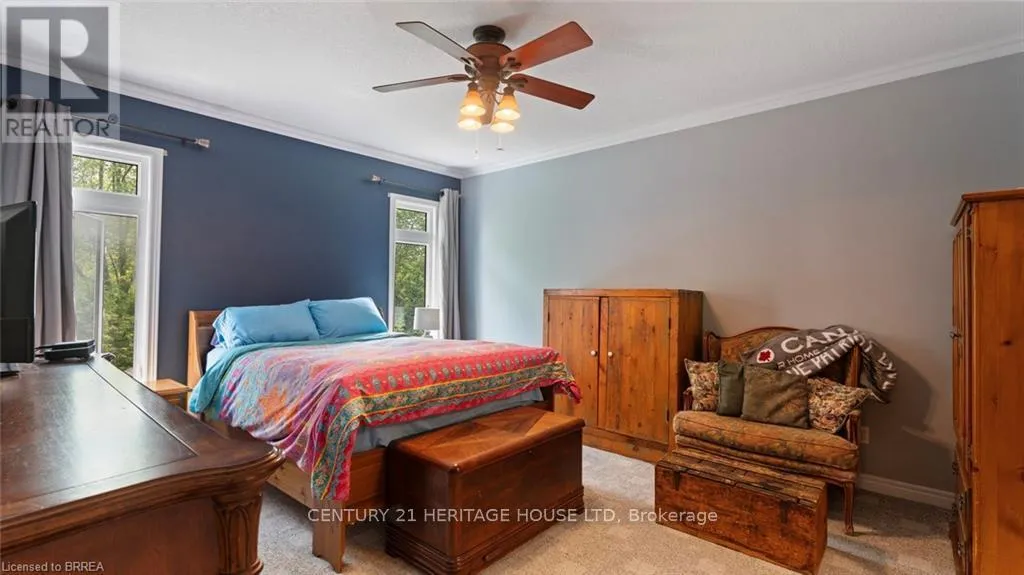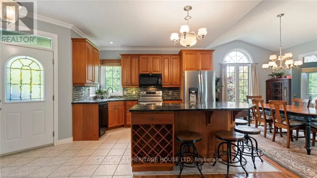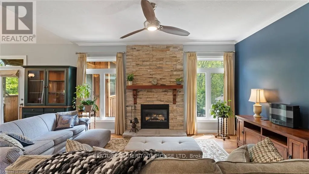 Cross Streets: Front Rd. ** Directions: Highway 59 South to Front Rd, corner of Front and Hunter Dr. The lifestyle you've been waiting for! Tucked away in "Ducks Landing" on a picturesque ravine lot, this custom-built brick bungalow offers the perfect balance of privacy, space, and convenience-all just steps from downtown Port Rowan. With 3 bedrooms and 3 full bathrooms, there's room for everyone. The airy main floor features open-concept living, with a bright kitchen that features a quartz island, ample cupboard space, plenty of work-space, and a cozy dining room with a cathedral ceiling that opens into a spectacular screened-in deck- perfect for outside dining and entertaining complete with a separate bbq area! You'll be impressed by the floor to ceiling stacked stone fireplace in the living room area. Retreat to the spacious primary bedroom with a private ensuite featuring double sinks and two walk-in closets. The second main-floor bedroom is set apart from the primary, and has access to a full 4 piece bath. Main floor laundry and pantry complete this level. The fully finished lower level features a large rec room with fireplace, office nook, third bedroom, three piece bathroom, and a walk-out to the backyard patio with retractable awning. Another room, which was used as a workshop, has a laundry tub and storage cupboards. You'll always have extra space thanks to the large furnace room with plenty of storage and a separate cold cellar. With in-law potential and ample storage, this home will adapt to all of your needs. Outside, soak in the sounds of nature and watch hummingbirds flutter through the trumpet vines and honeysuckle from the gorgeous covered deck. You'll love hosting parties or sipping a coffee while screened in with the ceiling fan keeping you cool. Sit by the Bay and enjoy the live Summer concert series. The quaint downtown boasts restaurants, a new Tim Hortons and shops. With marinas, beaches, golf, and Simcoe, Tillsonburg, and Long Point nearby-this home has it all. Bonus 20KW Stand By back-up generator installed in 2023. (id:27476)