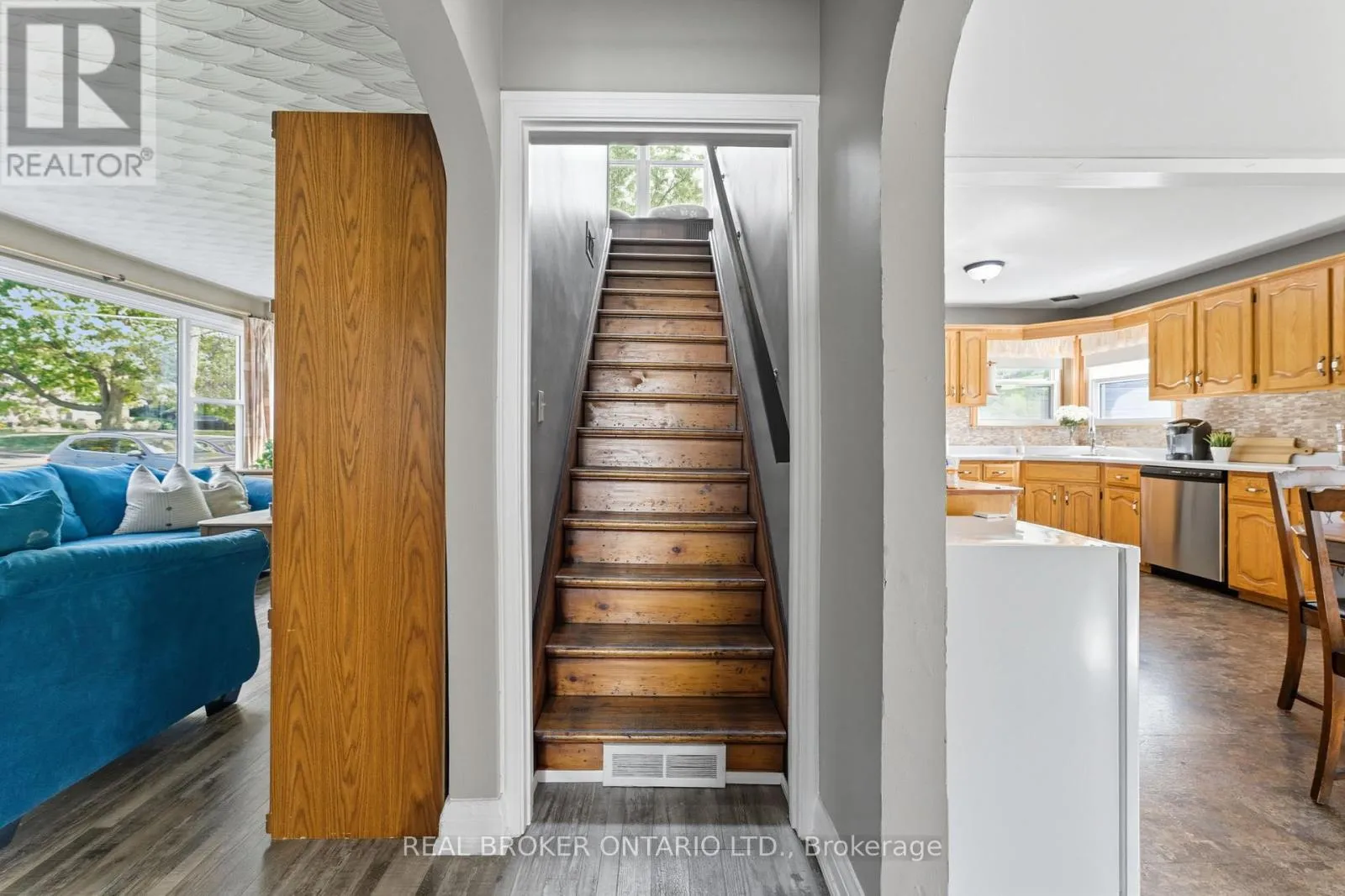 Cross Streets: McCall Crescent. ** Directions: McCall Crescent to Gibson Drive. Welcome to 36 Gibson Drive, a charming and cozy home nestled in one of Simcoe's most sought-after neighbourhoods. This 3+1 bedroom, 2-bathroom property offers the perfect blend of character and convenience, set on a large mature lot that provides both space and privacy. Step inside to a bright and spacious entryway that leads into a living room filled with natural light. The home's charming arched entryways add a touch of character you'll love. The heart of the home is the spacious eat-in kitchen, featuring oak cabinetry, tiled backsplash, stainless steel appliances, and ample cupboard and counter space - with room for a large dining table to gather around. Looking for main-floor living? You've found it! The primary bedroom, located at the back of the home for extra privacy, is complemented by an additional main-floor bedroom and a 4-piece bathroom. Upstairs, you'll find another generously sized bedroom. The finished lower level provides even more living space, including a rec room, a versatile room ideal for a home office, a 3-piece bathroom, and a utility room with plenty of storage. Out back, enjoy the large, private yard with its mature tree line, spacious wooden deck, and two storage sheds - perfect for entertaining, relaxing, or family fun. With various improvements completed in recent years, including a freshly paved driveway, leaf filter gutter guards (summer 2025), some updated windows throughout (2021), a newer furnace (2021), and fireplace (fall 2025), this charming family home is ready for its new owners! If you've been searching for a home in a fantastic neighbourhood that offers space, charm, and convenience, 36 Gibson Drive is one you won't want to miss! (id:27476)