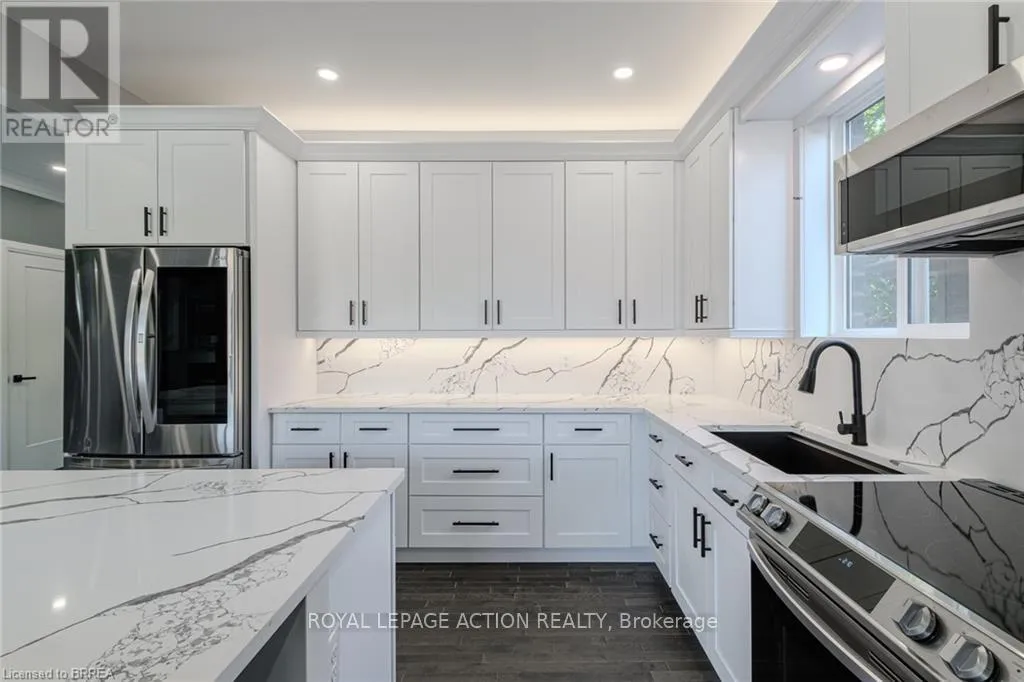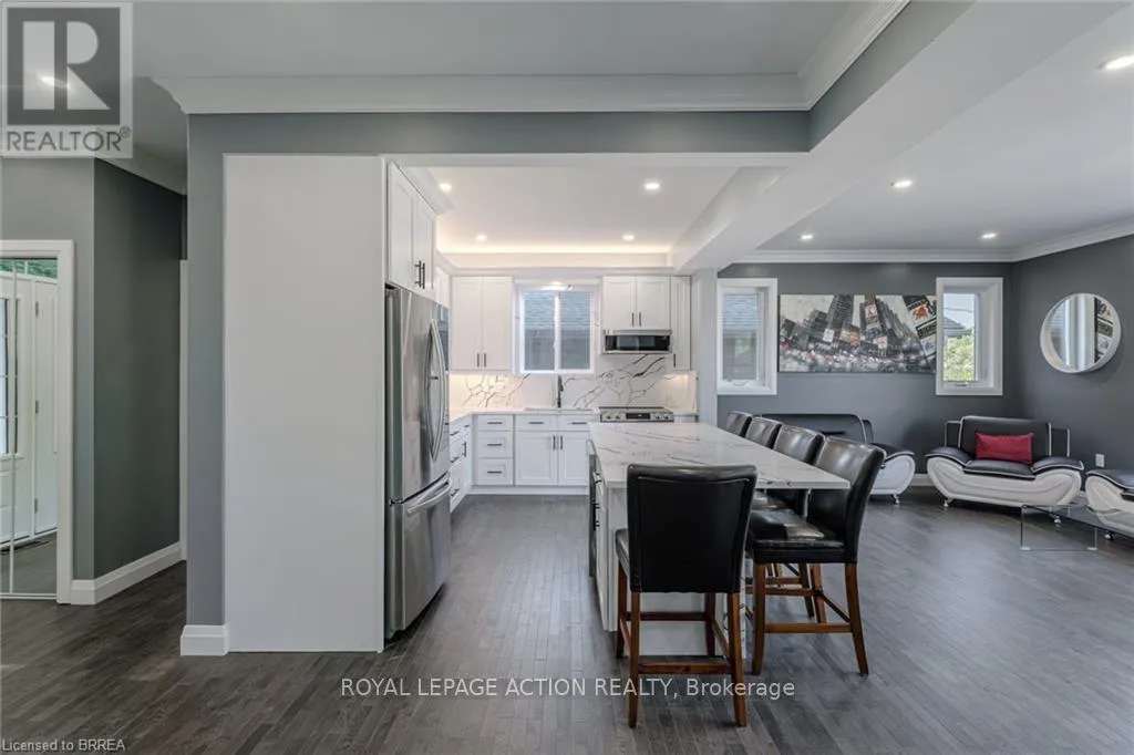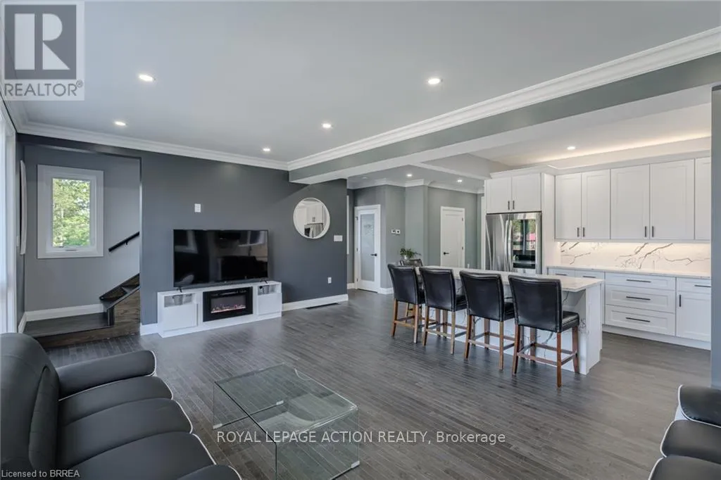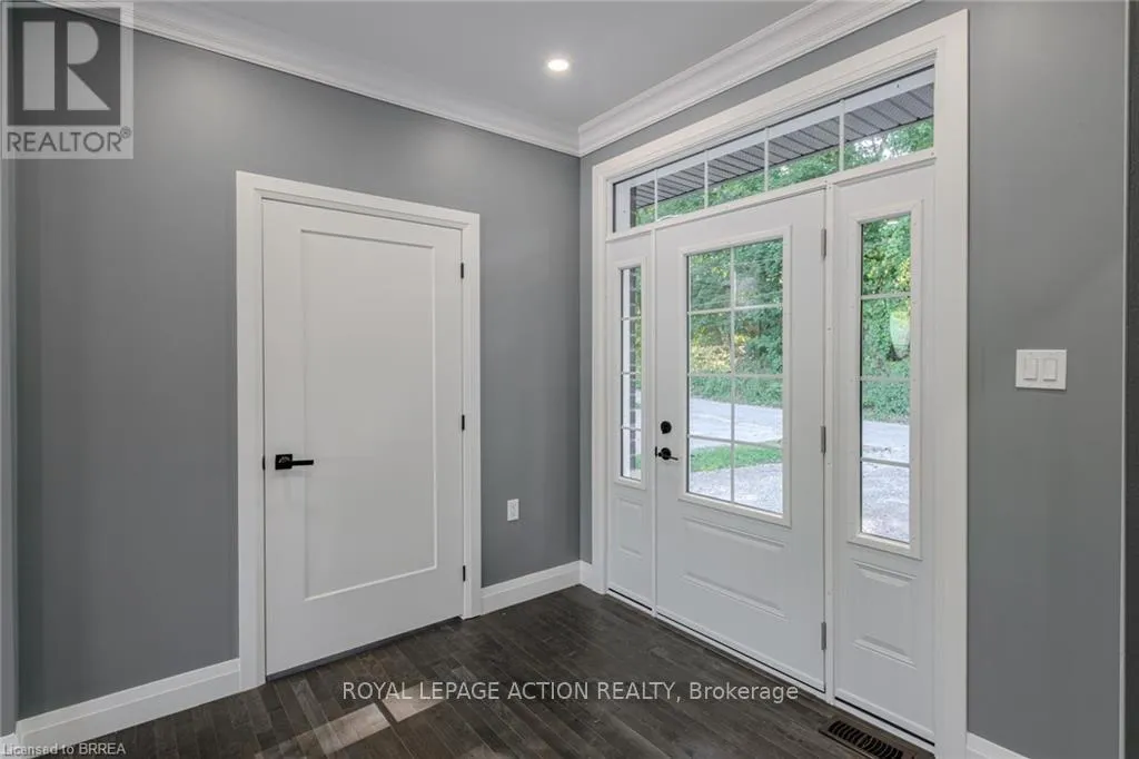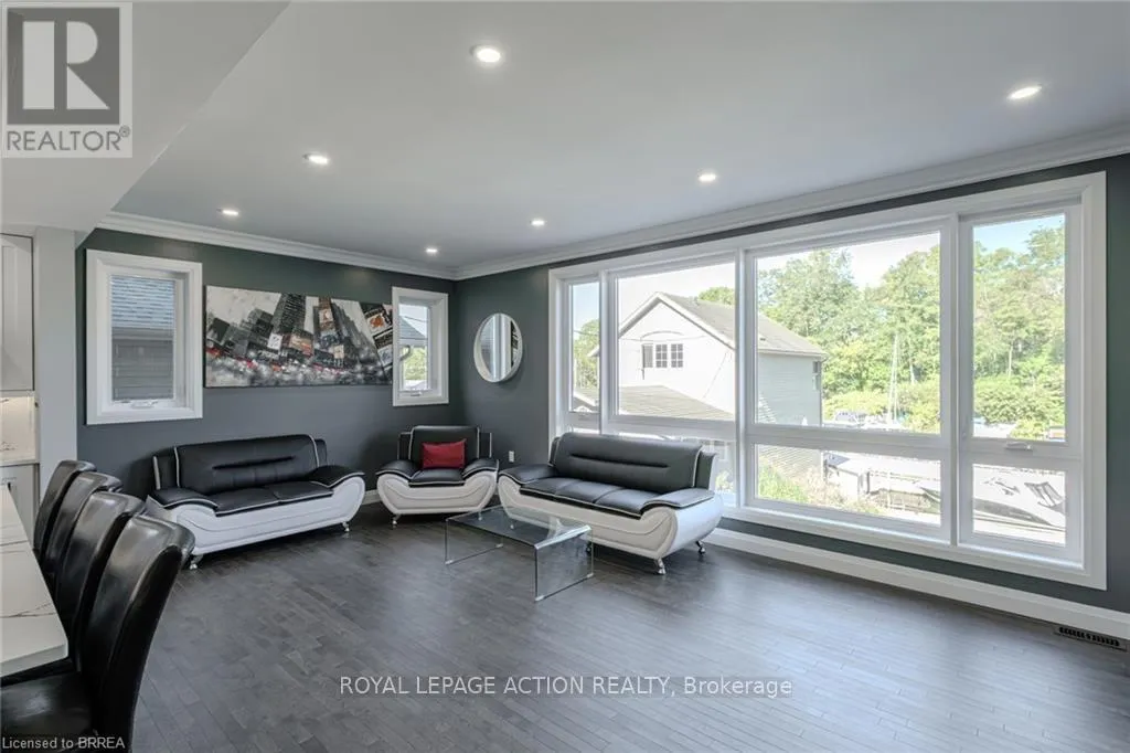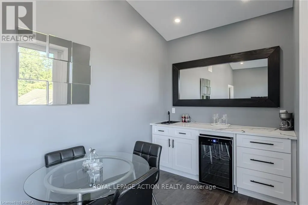 Cross Streets: Douglas Street. ** Directions: Take Hwy 6 over lift bridge, turn left on Grand Street. (the upper road)- property is less than 1 min up the road- on the left hand side. WOW! Stunning, new home in highly sought-after Port Dover, just steps from Black Creek! This home offers versatility for today's lifestyle. Appreciate the private double-wide driveway, accommodating up to 6 vehicles, & the stamped concrete front porch. A spacious foyer features double mirrored closets, 9-foot ceilings, & oak hardwood flooring that flows throughout the home. Located off the foyer is a laundry room with quartz countertops. On the opposite side, is a beautifully finished 4-piece bath with textured tile floors, quartz vanity & tile shower surround. The open-concept main floor is filled with natural light & offers beautiful canal views. The custom kitchen is a showstopper, boasting a 5-seat island, quartz counters & backsplash, under-mount lighting, dovetail soft-close cabinetry, stainless steel appliances & pantry. Additional features include pot lights & crown molding that continue into the living area, creating a seamless flow. Upstairs, enjoy a versatile space with 12-foot vaulted ceilings, recessed lighting, wet bar with quartz counters & bar fridge-perfect for entertaining, working from home, or relaxing. 7-foot sliding doors lead to a covered Dura-deck with glass railings, offering breathtaking views of the canal. There are 3 spacious bedrooms, including a primary suite, & a luxurious 5-piece bathroom with double quartz vanity & textured tile flooring. On the lower level, a landing leads to the back of the home & a flexible storage/utility room with a 3-piece bath rough-in, secondary laundry option & mechanical systems. This space offers great potential for a variety of future uses. A 1.5 car garage is just off this space featuring drain and water supply line rough-ins. Located just minutes from the heart of Port Dover, this home offers a peaceful retreat with easy access to local amenities. The owner may consider selling the land behind the home on the canal providing the possibility to add some green-space, a docking spot & access to Lake Erie! (id:27476)