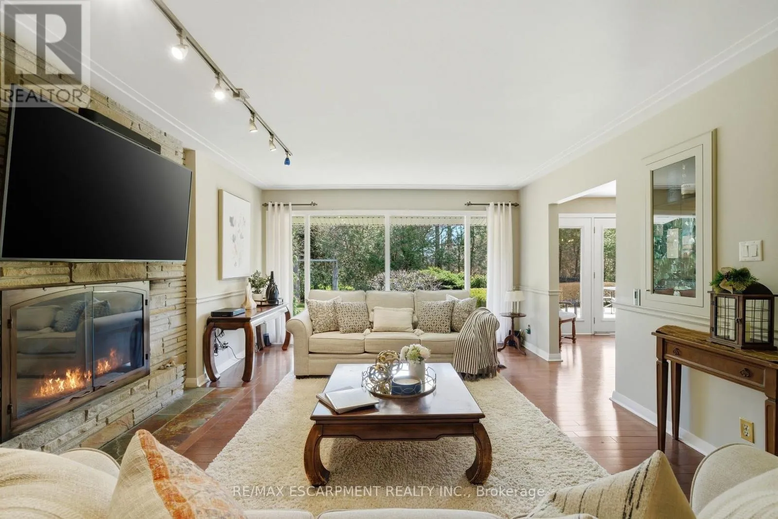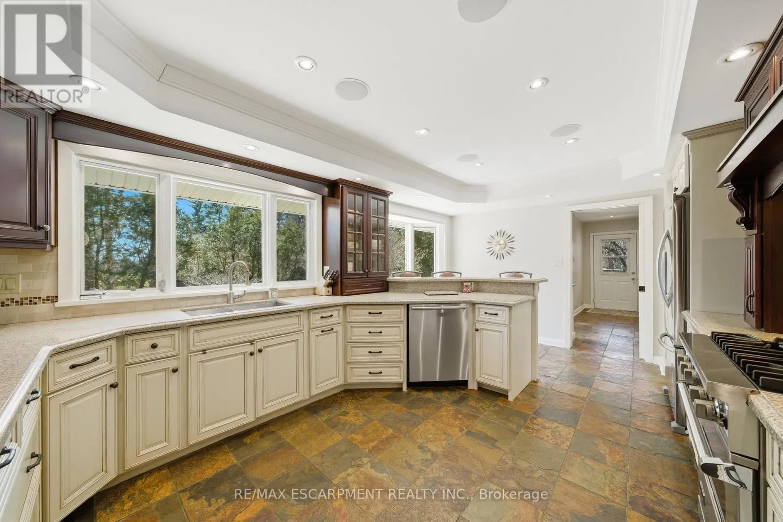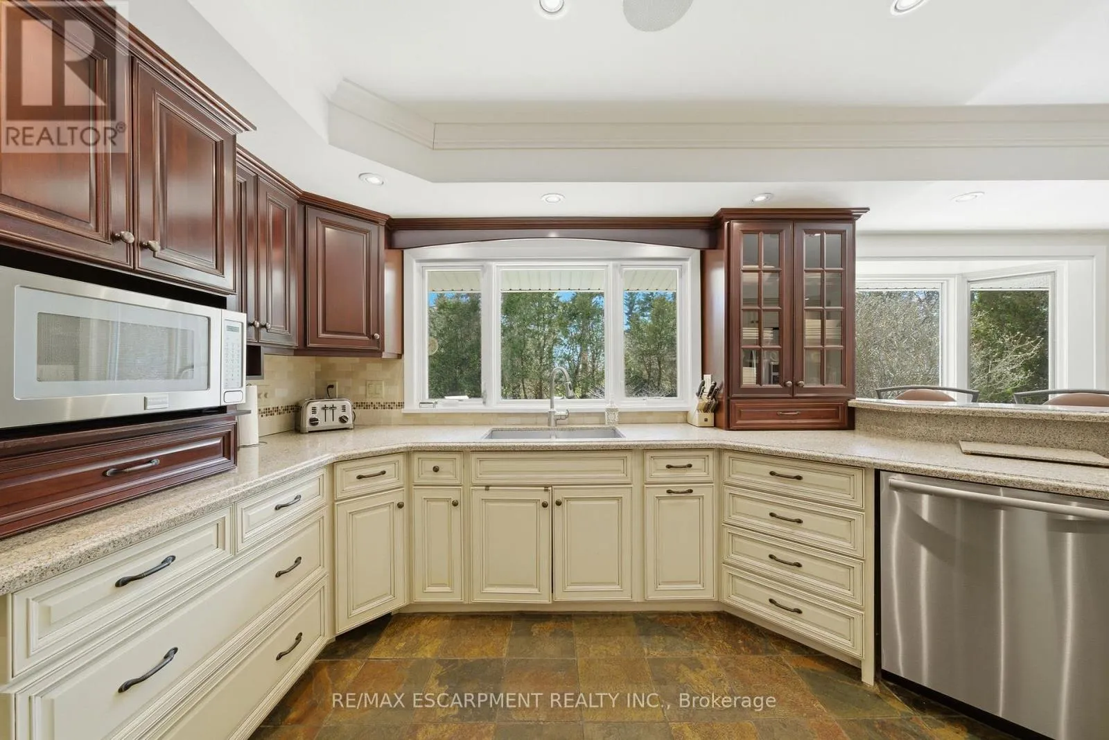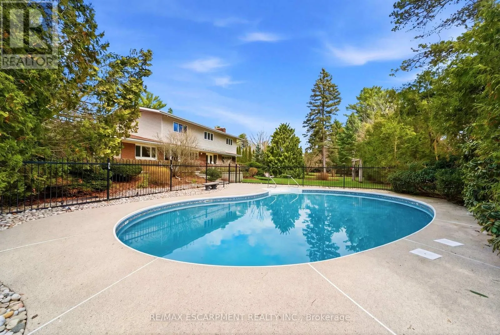 Cross Streets: Lynndale. ** Directions: Head South on Highway 24, turn left onto Robinson Street, then right onto Lynndale Road. Turn right onto Summit Circle and follow the circle to the right. An exceptional offering in one of Simcoe's most prestigious enclaves, this private 5-bedroom executive residence is set on a beautifully treed 0.5-acre lot backing onto a serene forested ravine with access to the Norfolk Golf and Country Club. Ideally located just minutes from the waterfront charm of Port Dover Lakefront, this home combines tranquility with convenience. Thoughtfully designed, the main level showcases elegant slate flooring, expansive principal rooms, and a striking floor-to-ceiling stone wood-burning fireplace. The custom-renovated kitchen is a true showpiece, featuring bespoke Winger cabinetry, granite countertops, premium appliances including a Viking gas range, and a stylish peninsula ideal for casual dining and entertaining. A well-appointed mudroom/laundry with garage access enhances everyday functionality. Upstairs, five generously sized bedrooms offer comfort for the whole family, including a spacious primary retreat with a beautifully updated ensuite. The fully finished lower level provides additional living space with a bright recreation room and ample storage. Outdoors, discover a resort-inspired backyard oasis. A stunning flagstone patio overlooks the heated, kidney-shaped inground pool (2022 liner), complemented by a charming pool house, lush professional landscaping, and a custom retractable awning with ambient lighting and integrated audio-perfect for summer entertaining. Complete with a double garage, extended driveway, and exceptional privacy on a quiet cul-de-sac with no rear or front neighbours, this rare offering is just a short stroll to downtown Simcoe and all amenities, and a quick drive to Port Dover. A truly remarkable property for those seeking refined living in a peaceful, natural setting. (id:27476)