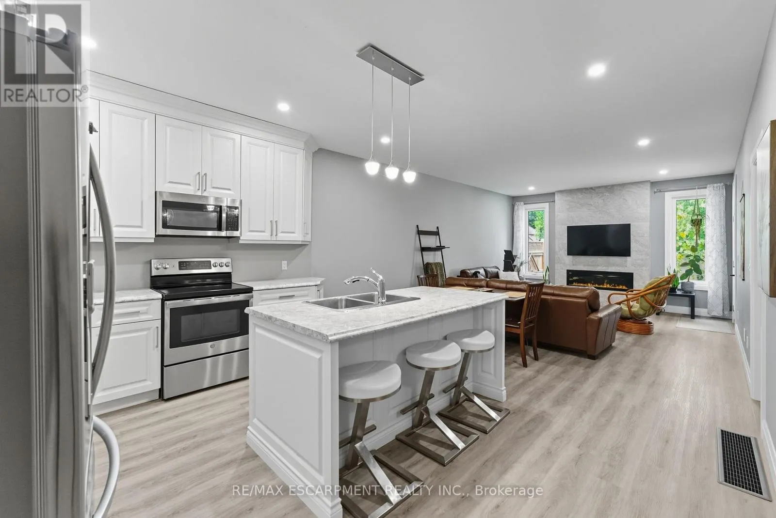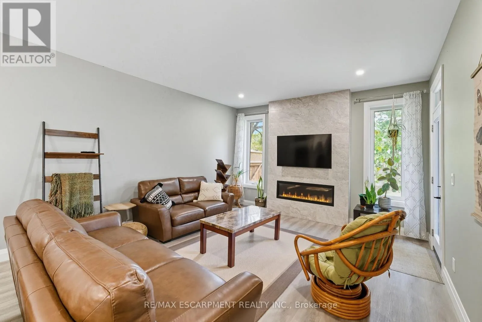 CENTER & BAY Welcome to 1053 Bay Street, a stylish lakeside retreat in the heart of Port Rowan. Nestled in this charming waterfront community, this beautifully crafted semi-detached bungalow offers over 2,300 sq. ft. of thoughtfully designed living space, perfectly blending comfort and modern appeal. Featuring 2+1 bedrooms and 3 full bathrooms, it's an ideal fit for families, downsizers, or those seeking in-law suite potential. The exterior impresses with a contemporary mix of stone and vinyl, an oversized driveway with parking for four, and a welcoming covered front porch-perfect for morning coffee. Inside, a bright open-concept layout is enhanced by 9-foot ceilings, neutral finishes, and a striking fireplace that anchors the living space. The modern kitchen is equipped with stainless steel appliances, crown molding, and ample prep space for everyday living and entertaining. The primary suite offers a relaxing escape with a walk-in closet, additional storage, and a well-appointed 4-piece ensuite featuring a double vanity. A versatile front bedroom or office, a second full bath, main floor laundry, and convenient interior garage access complete the main level. The fully finished basement extends the home's functionality with a spacious rec room, egress windows, rough-in for a wet bar or kitchenette, a generous third bedroom, and another full bath-perfect for guests or extended family. Step outside to a fully fenced backyard with a covered deck, ideal for relaxing or hosting all season long. Just steps to Lake Erie, Long Point, and the area's renowned natural beauty, this home offers the perfect balance of lifestyle and location. (id:27476)