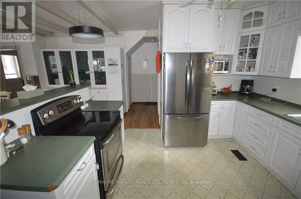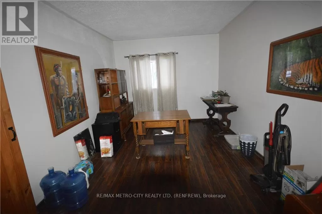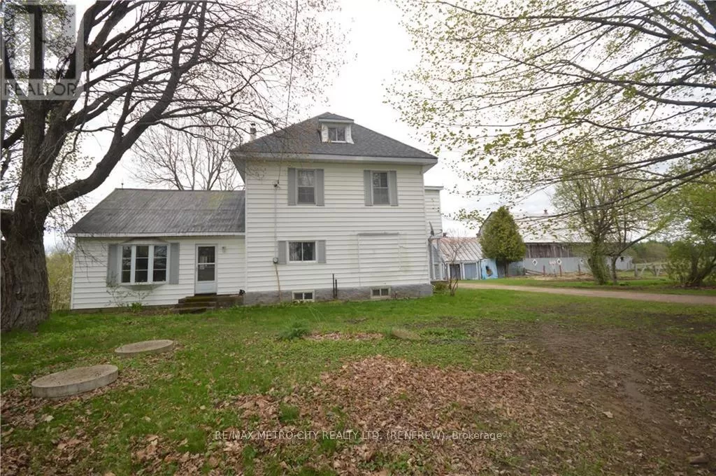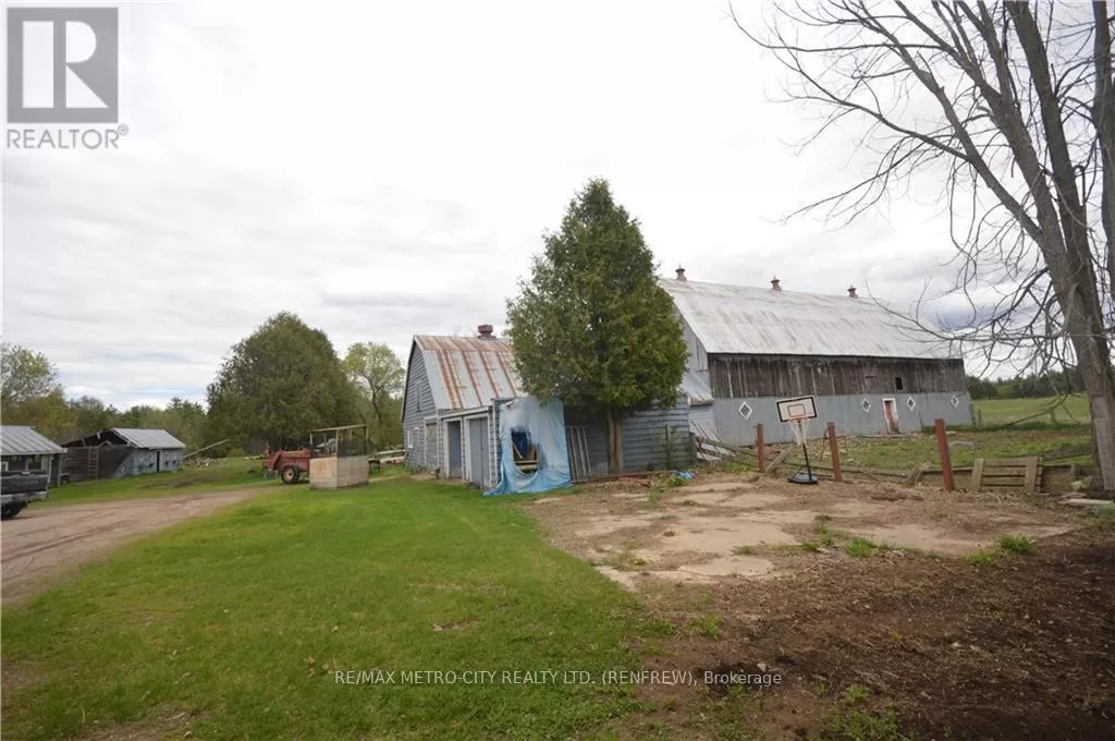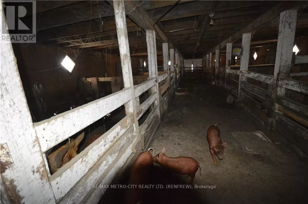 From Eganville proceed on Hwy 60 to Golden Lake, turn right onto Lake Dore Rd. Follow approximately 2 klms to property on the right.\r\n\r\nFrom Pembroke take Hwy 41 to Lake Dore Rd, turn right and follow to property on the left. Flooring: Hardwood, Flooring: Laminate, Quality farm approximately 134 acres of mixed bush, with approximately 60 acres of light clay to sandy loam soil, with a creek running behind the house. Non tile drained, flat to gently sloping. 34' X 78' frame barn with 15/ X 35' storage shop located at the front of the barn. A barn cleaner runs through the barn, and is equipped with water bowls. Barn is currently used to house pigs. 20' x 20' two car garage with cement floor. 3 storey vinyl sided home, main floor consists of modern kitchen, open concept dining room with hardwood floors. Family room has wood burning fireplace plus 1 2 piece bathroom. Second level has four bedrooms, 1 - 4 piece bathroom and 1 - 2 piece en suite. There is also an unfinished loft on the 3 floor. Full unfinished basement with forced air oil furnace. The home has 100 amp service, several porches attached to the main level of the home. HST will be in addition to the purchase price. Please allow 24 hours irrevocable on all offers. (id:27476)