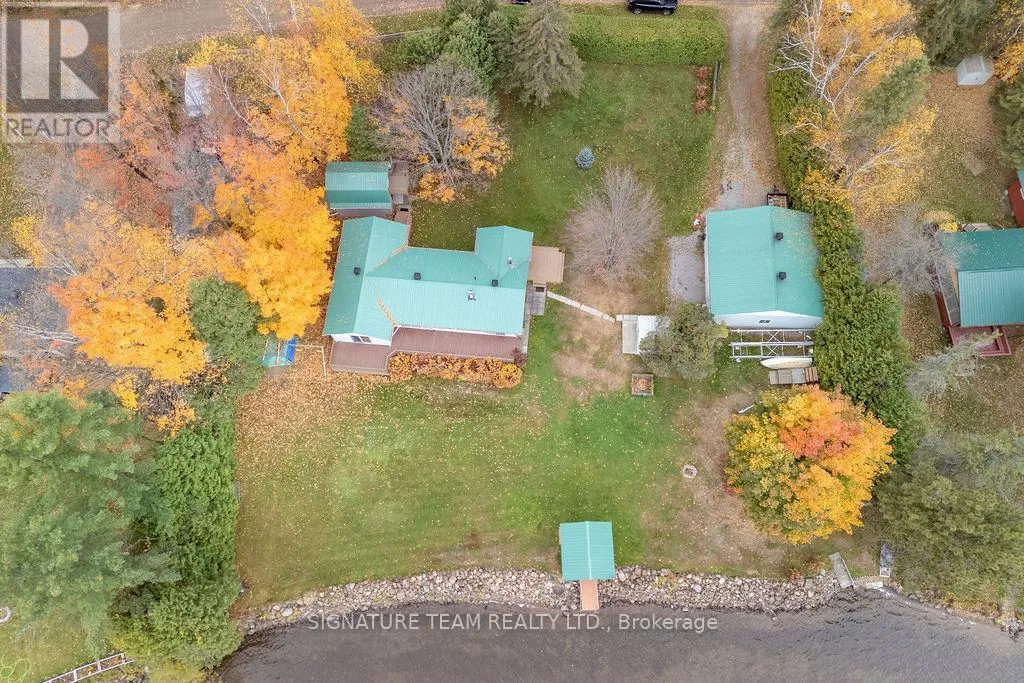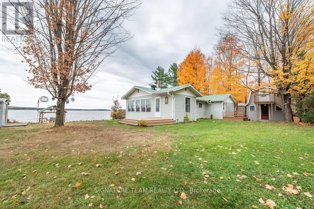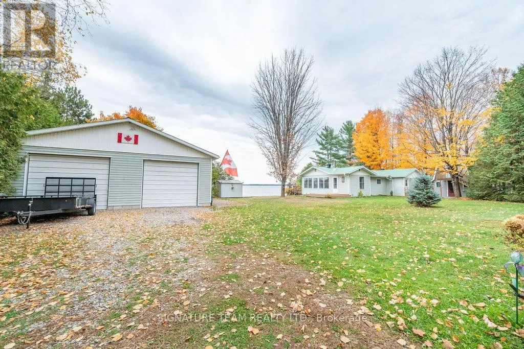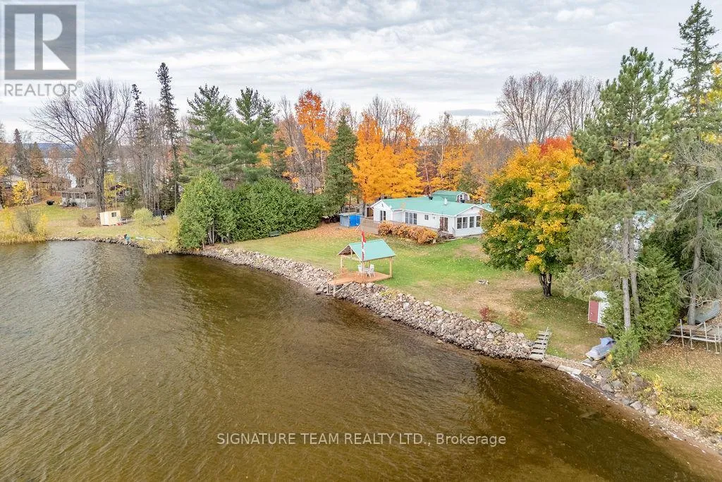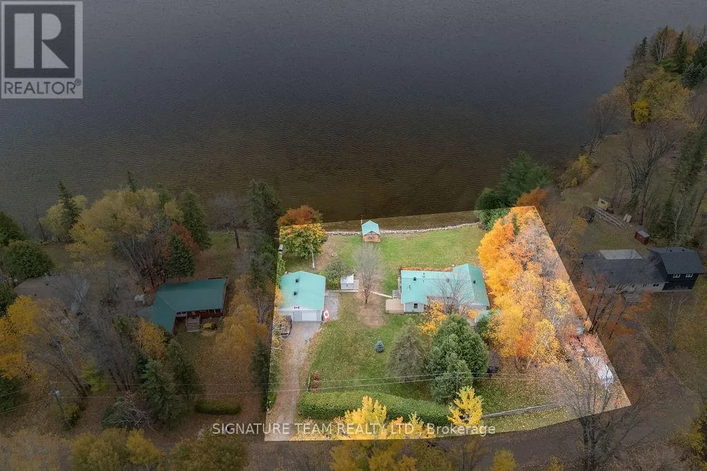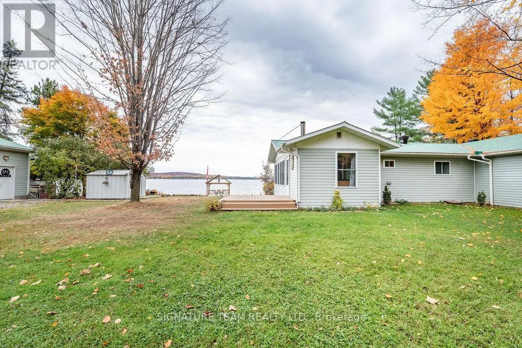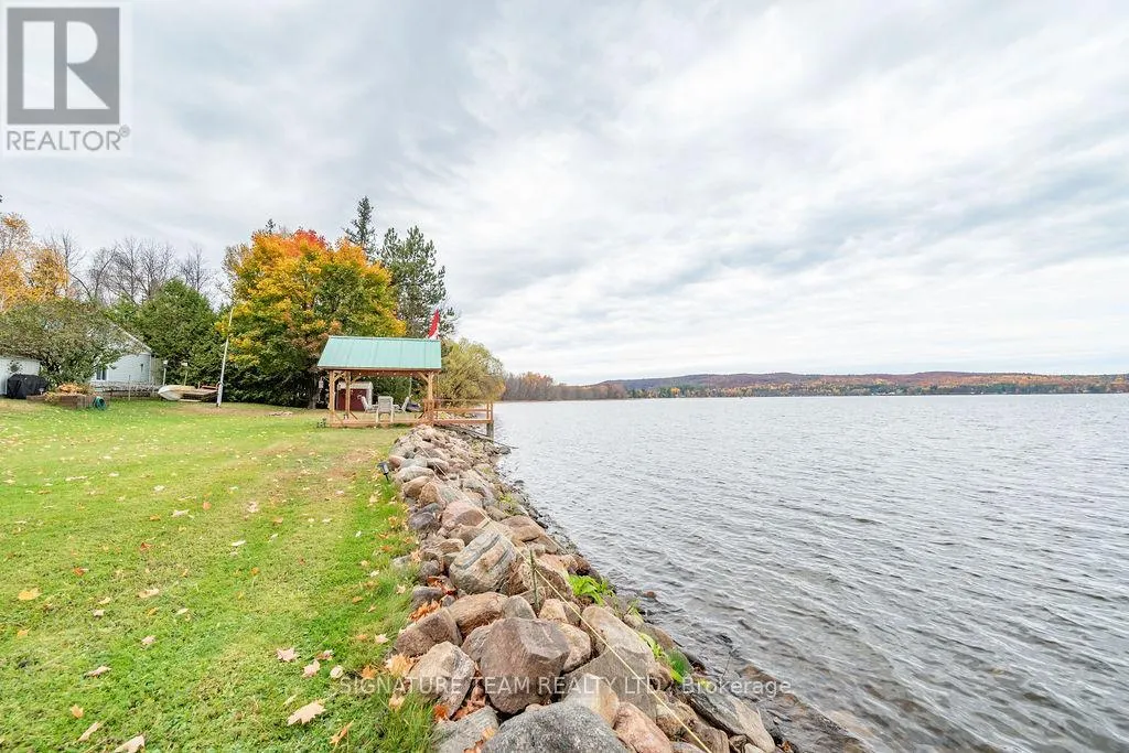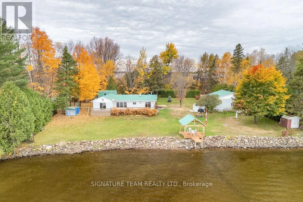Cross Streets: Highway 60 and Black Point Road. ** Directions: Highway 60 onto Black Point Road. Spectacular year around home on Golden Lake with incredible eastern views over the lake with a beautiful backdrop of the hills in the distance. The property is a gentle slope to the waterfront with 199 feet of frontage. A sandy, hard lake bottom with no weeds in front. Dock system included along with a lakeside deck/gazebo. Space to launch a boat from the property as well. This 3 bedroom home features a bright living room with an abundance of natural light, a view of the lake and a cozy wood fireplace. The open concept kitchen/dining area is another great room overlooking the lake. Features a functional island, an abundance of cupboards and updated appliances. The primary bedroom is currently being used as a living room and could easily be converted back to a fantastic bedroom with a large closet and private entrance onto the expansive deck overlooking the lake. 2 more bedrooms and a full bathroom are all on the main level. Home is serviced by a drilled well and septic system. You have a massive 900 square foot garage with plenty of room for the toys and vehicles. An additional 2 storey bunkie with hydro provides additional space for guests to stay. Another garage is located at the second entrance with more vehicle storage space. 2 more sheds wrap up the abundance of storage space offered here. All the buildings have a metal roof. The yard also has a children play area and horse shoe pits. All of this located on a municipal maintained road. Come live the good life on Golden Lake! (id:27476)