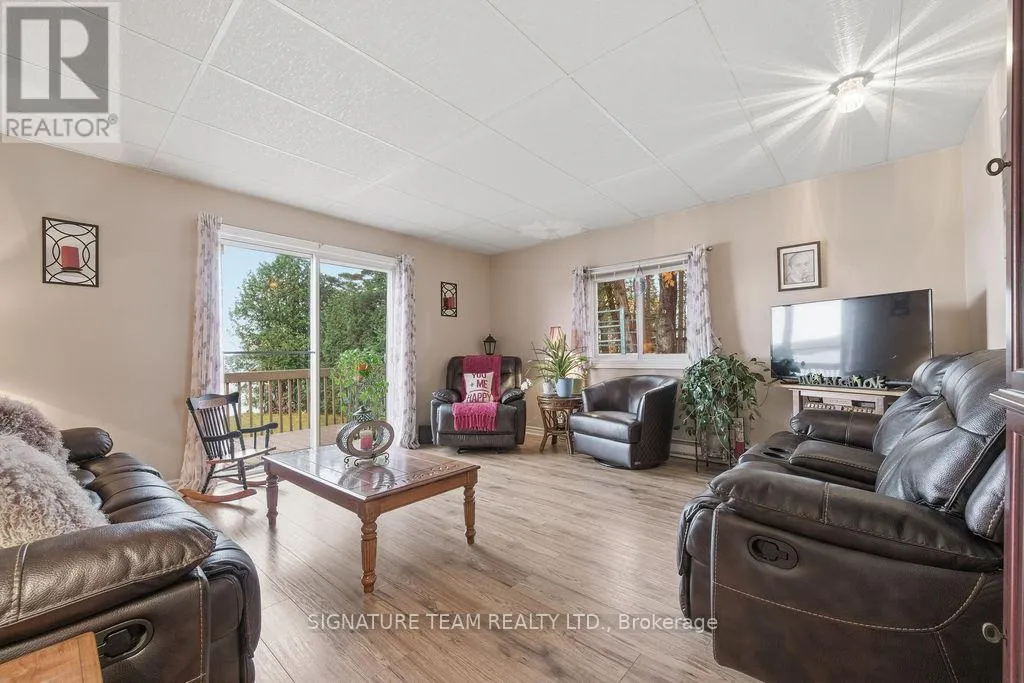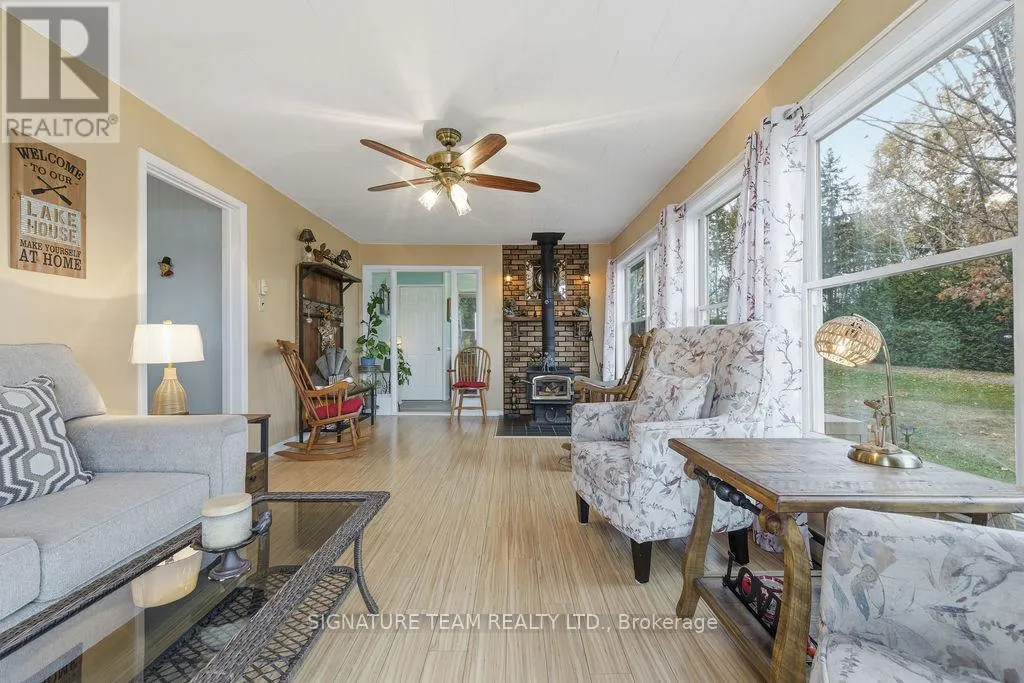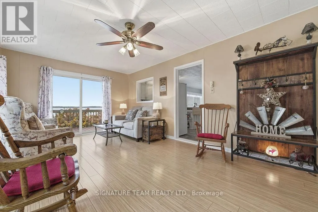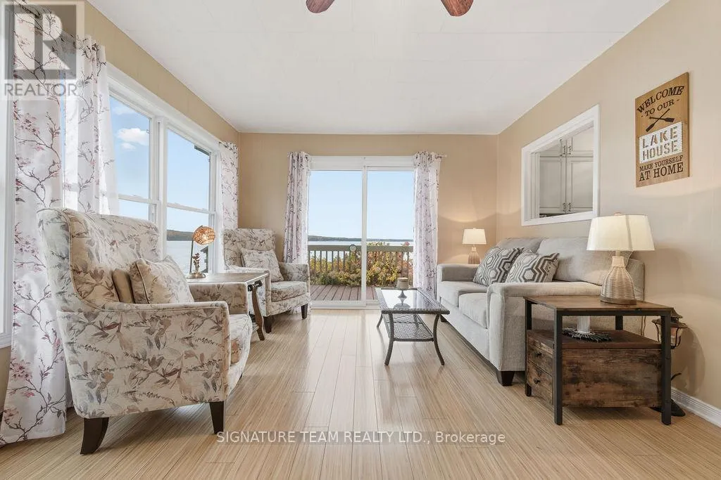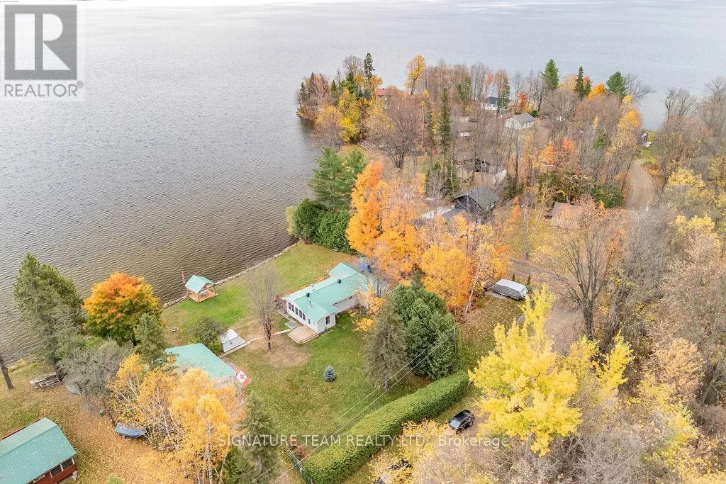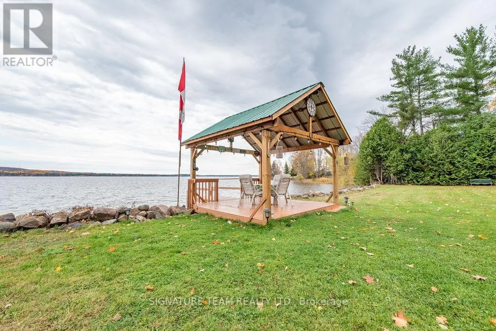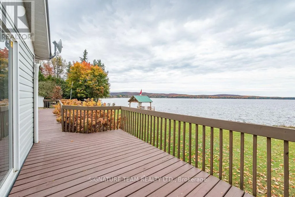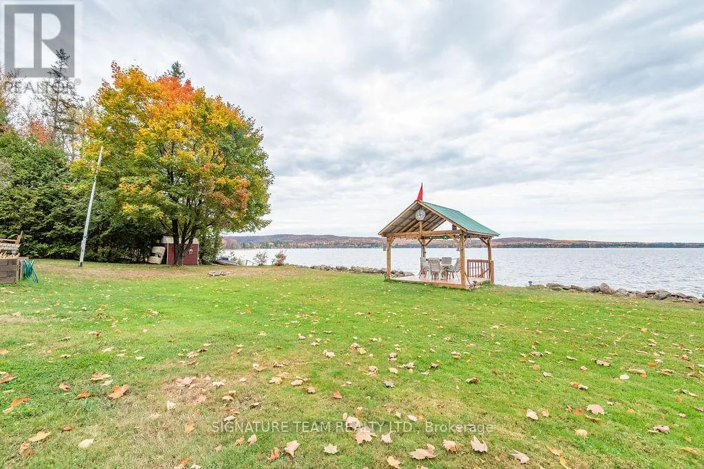 Cross Streets: Highway 60 and Black Point Road. ** Directions: Highway 60 onto Black Point Road. Spectacular year around home on Golden Lake with incredible eastern views over the lake with a beautiful backdrop of the hills in the distance. The property is a gentle slope to the waterfront with 199 feet of frontage. A sandy, hard lake bottom with no weeds in front. Dock system included along with a lakeside deck/gazebo. Space to launch a boat from the property as well. This 3 bedroom home features a bright living room with an abundance of natural light, a view of the lake and a cozy wood fireplace. The open concept kitchen/dining area is another great room overlooking the lake. Features a functional island, an abundance of cupboards and updated appliances. The primary bedroom is currently being used as a living room and could easily be converted back to a fantastic bedroom with a large closet and private entrance onto the expansive deck overlooking the lake. 2 more bedrooms and a full bathroom are all on the main level. Home is serviced by a drilled well and septic system. You have a massive 900 square foot garage with plenty of room for the toys and vehicles. An additional 2 storey bunkie with hydro provides additional space for guests to stay. Another garage is located at the second entrance with more vehicle storage space. 2 more sheds wrap up the abundance of storage space offered here. All the buildings have a metal roof. The yard also has a children play area and horse shoe pits. All of this located on a municipal maintained road. Come live the good life on Golden Lake! (id:27476)
