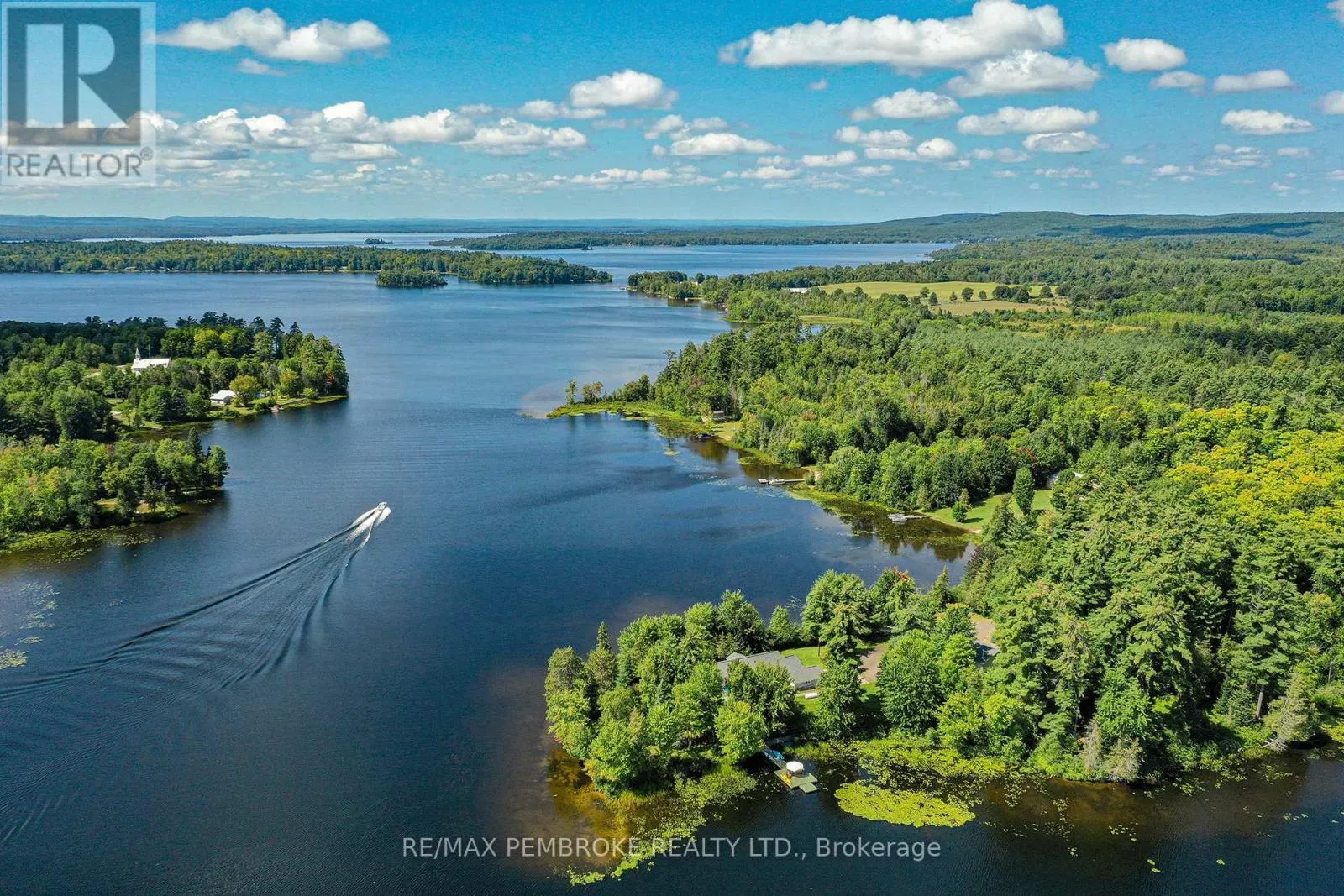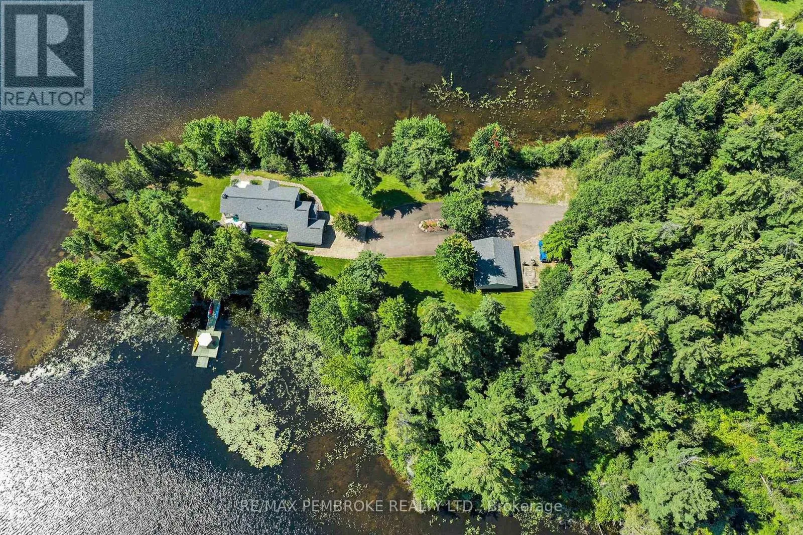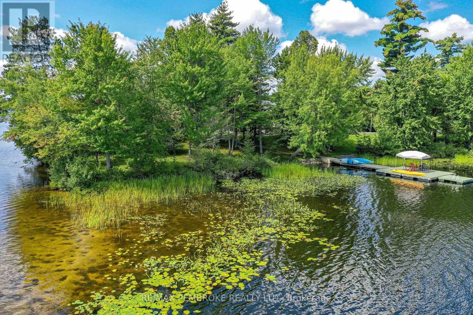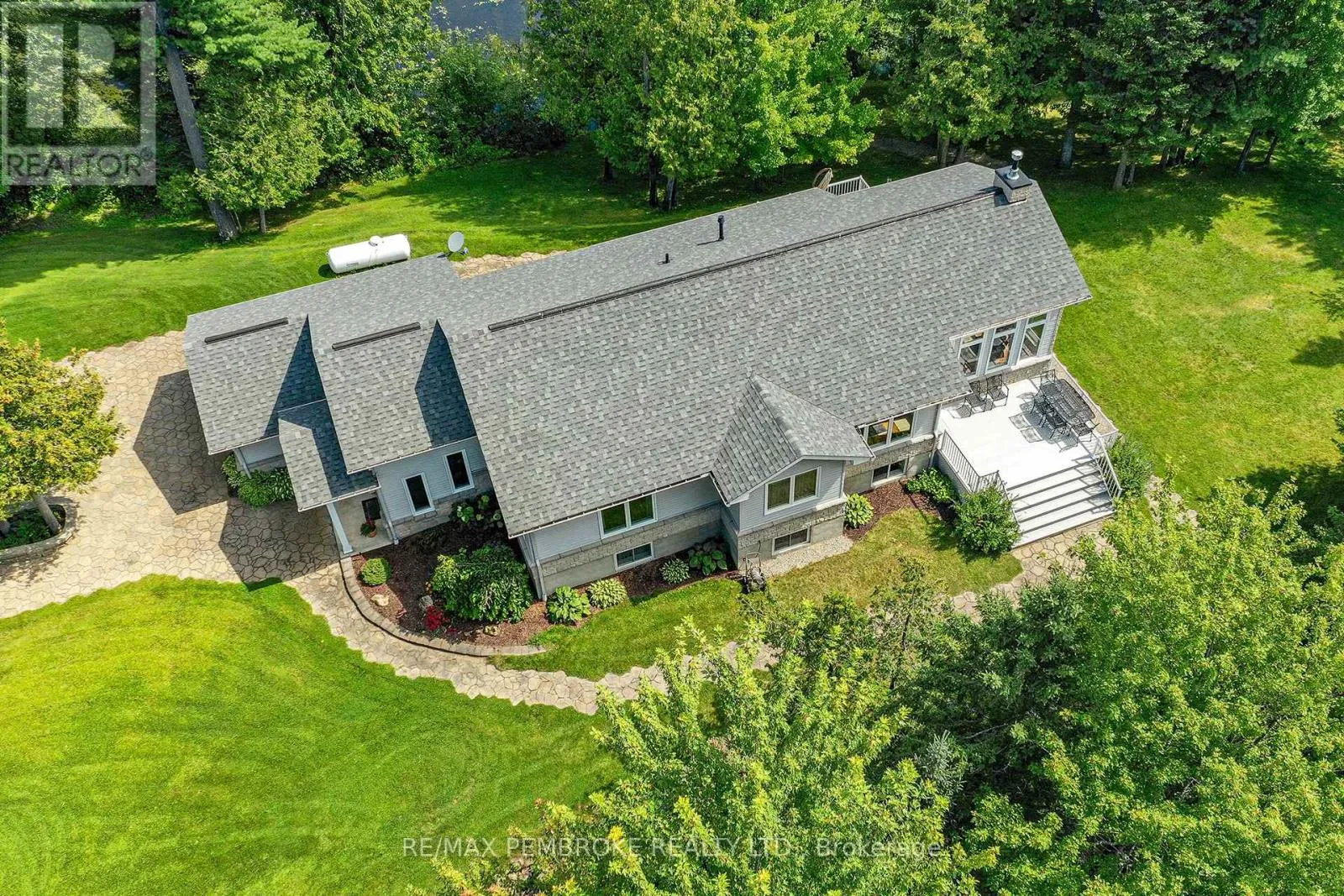 Cross Streets: Hwy 60 and Island View. ** Directions: Hwy 60 and Island View, :Hwy 60 W, Left on Island View Dr in Golden Lake. STUNNING LAKEFRONT home situated on private, estate like 5 acre lot with over 1100 feet of shoreline on desirable GOLDEN LAKE. Built on a breathtaking peninsula surrounded by WATERFRONT (east/west/south) with MATURE PINES & glorious all day sunshine. This high quality ZOMERS custom built 3 bed, 3 bath OPEN CONCEPT bungalow is bursting with high end features throughout. CAPITVATING PANORAMIC Lakes views surround you from all rooms on the main level thanks to the oversized windows, TALL 9ft ceilings, custom hardwood kitchen with granite counter tops & large Island, formal dining area with access to outdoor deck for outdoor summer dinners. LARGE living room area with vaulted ceiling and gas fireplace. Oversized primary bedroom with spa like ensuite bathroom & walk in closet, OVERSIZED mudroom with main floor laundry. TALL & bright finished lower level features; bar, LARGE rec room with gas fireplace, 3rd bedroom, gym area (could easily be space for 4th/5th bedroom), 3rd full bathroom and walk out direct access to the attached garage. this home has a ICF (insulated concrete form) foundation & radiant heated floors (lower level , kitchen, bathrooms). PRIVACY & TRANQUILITY awaits you outside with: extensive landscaping, two separate decks on opposite sides of the house, lush flat yard, 90ft of floating dock to moor your boats, plus your own private sandy beach and fire pit. Attached OVERSIZED 1 car garage and a second detached garage (28ft x36ft). The home is hardwired with a full sized Generator in case of power outages, Irrigation, Gated entry, FULL Paved Driveway, NEW shingles 2023 on house and detached garage. START making YOUR Lakefront memories a reality by, boating, fishing, swimming paddle boarding, kayaking, water skiing, tubing, ice fishing or snowmobiling! Just 600m off ON-60. 10mins to Eganville, 25mins to Pembroke, 85 mins to Ottawa. (id:27476)