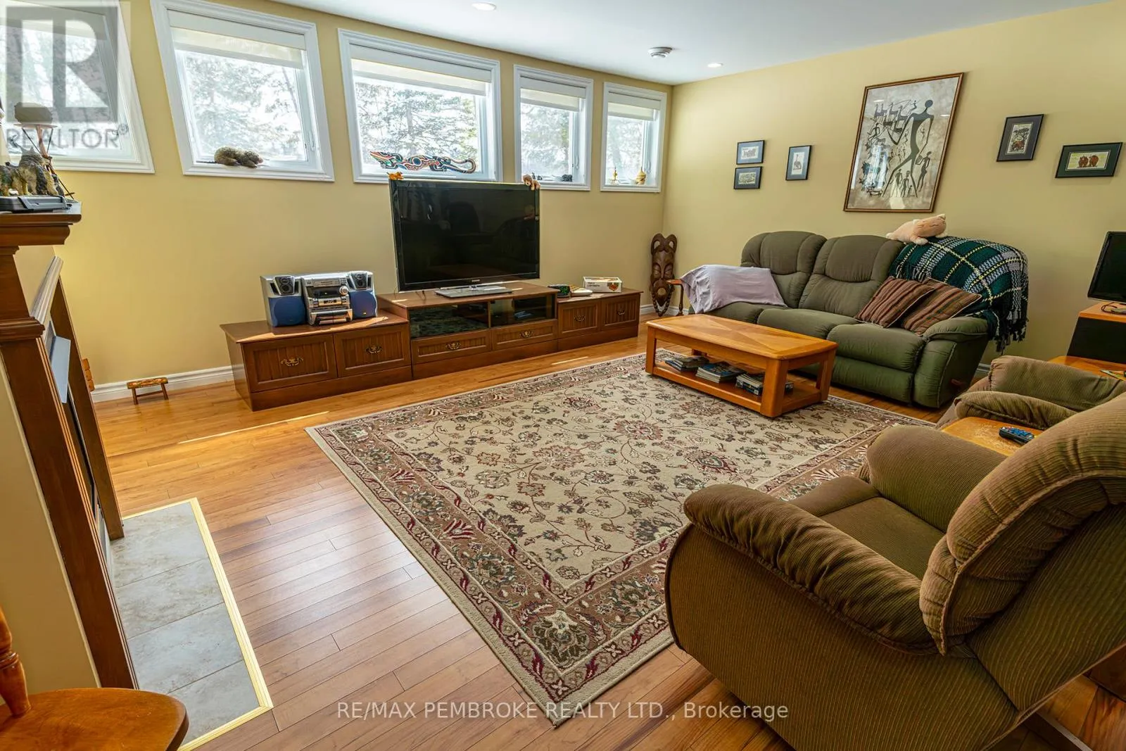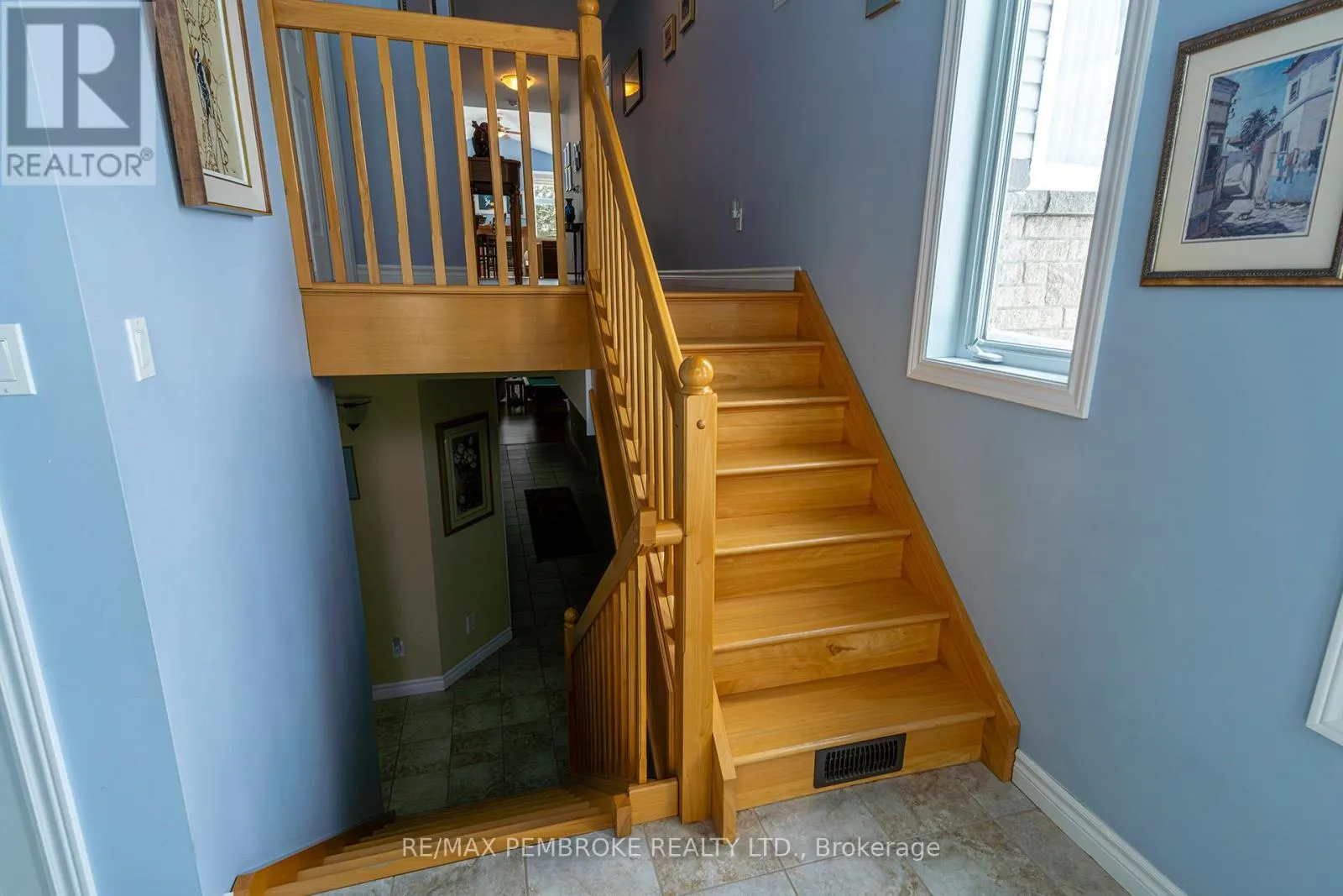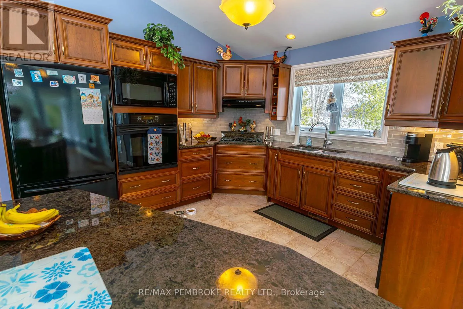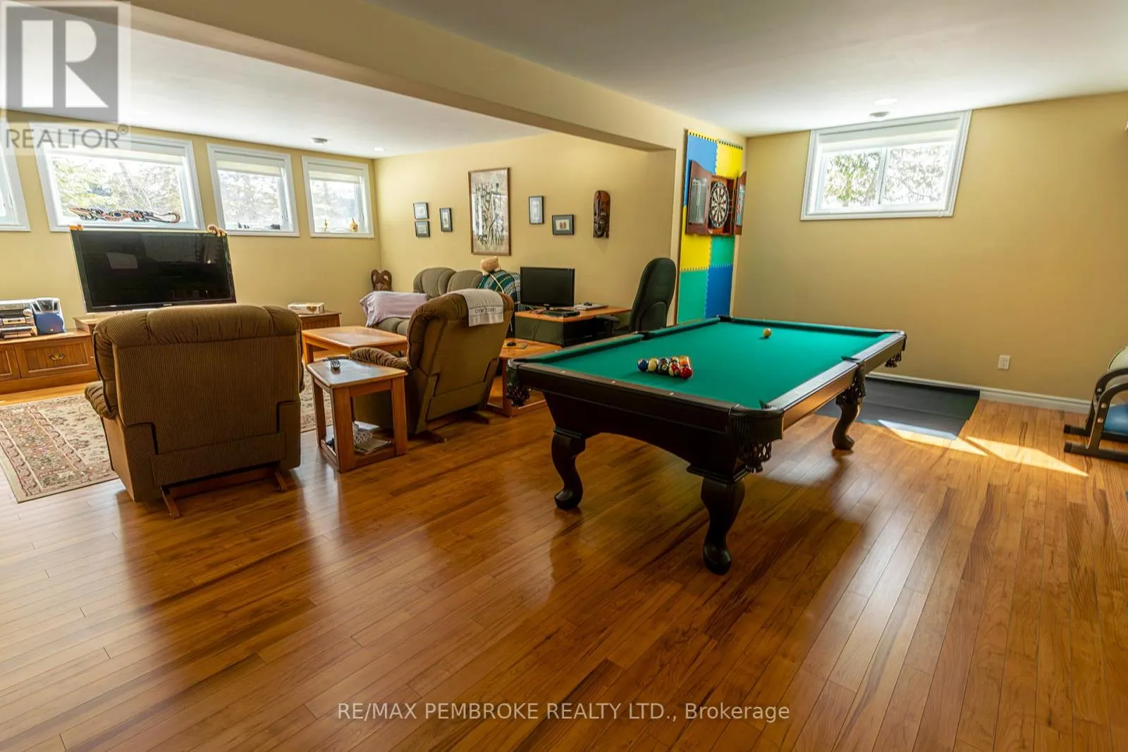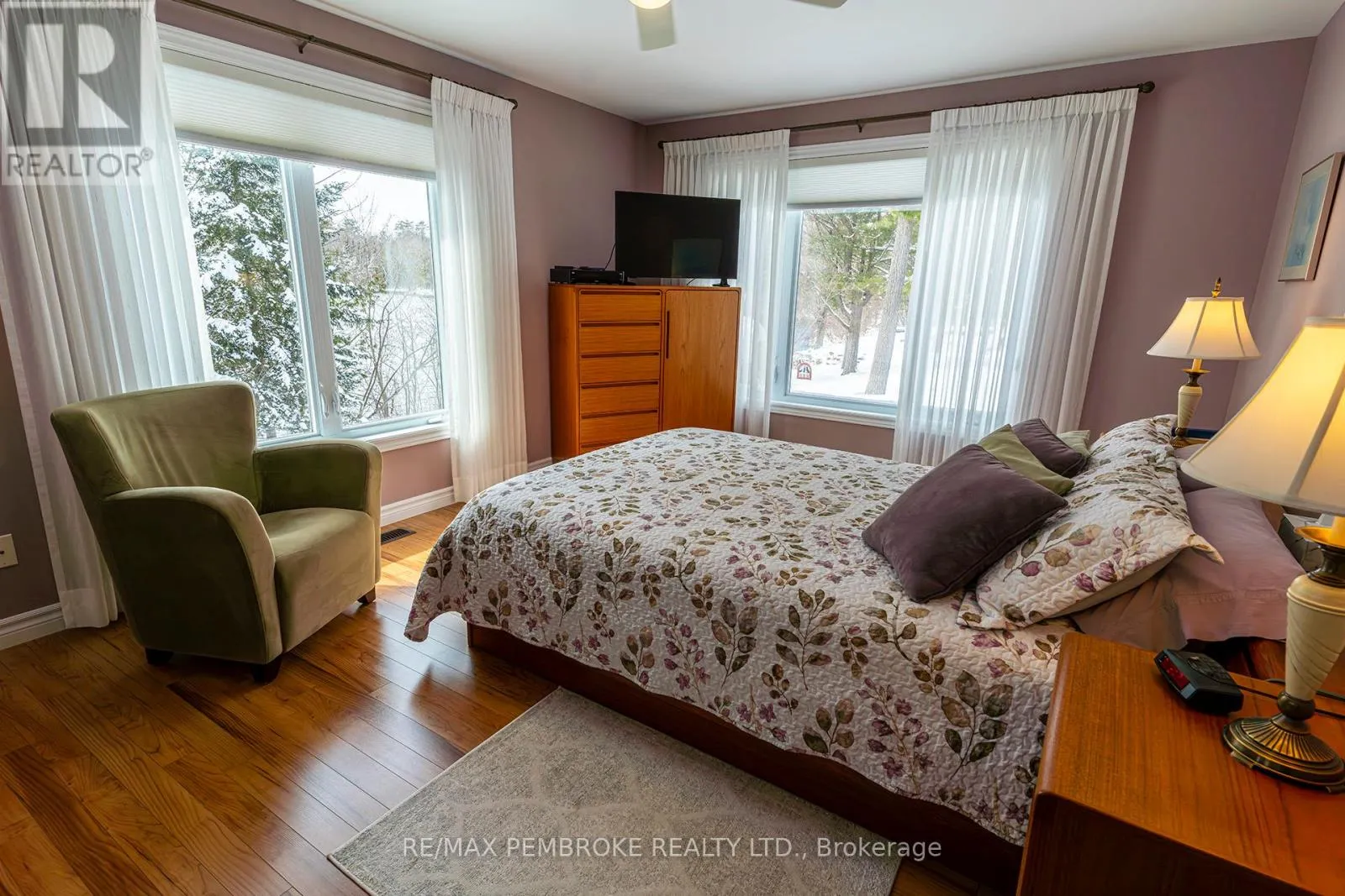 Cross Streets: Hwy 60 and Island View. ** Directions: Hwy 60 and Island View, :Hwy 60 W, Left on Island View Dr in Golden Lake. STUNNING LAKEFRONT home situated on private, estate like 5 acre lot with over 1100 feet of shoreline on desirable GOLDEN LAKE. Built on a breathtaking peninsula surrounded by WATERFRONT (east/west/south) with MATURE PINES & glorious all day sunshine. This high quality ZOMERS custom built 3 bed, 3 bath OPEN CONCEPT bungalow is bursting with high end features throughout. CAPITVATING PANORAMIC Lakes views surround you from all rooms on the main level thanks to the oversized windows, TALL 9ft ceilings, custom hardwood kitchen with granite counter tops & large Island, formal dining area with access to outdoor deck for outdoor summer dinners. LARGE living room area with vaulted ceiling and gas fireplace. Oversized primary bedroom with spa like ensuite bathroom & walk in closet, OVERSIZED mudroom with main floor laundry. TALL & bright finished lower level features; bar, LARGE rec room with gas fireplace, 3rd bedroom, gym area (could easily be space for 4th/5th bedroom), 3rd full bathroom and walk out direct access to the attached garage. this home has a ICF (insulated concrete form) foundation & radiant heated floors (lower level , kitchen, bathrooms). PRIVACY & TRANQUILITY awaits you outside with: extensive landscaping, two separate decks on opposite sides of the house, lush flat yard, 90ft of floating dock to moor your boats, plus your own private sandy beach and fire pit. Attached OVERSIZED 1 car garage and a second detached garage (28ft x36ft). The home is hardwired with a full sized Generator in case of power outages, Irrigation, Gated entry, FULL Paved Driveway, NEW shingles 2023 on house and detached garage. START making YOUR Lakefront memories a reality by, boating, fishing, swimming paddle boarding, kayaking, water skiing, tubing, ice fishing or snowmobiling! Just 600m off ON-60. 10mins to Eganville, 25mins to Pembroke, 85 mins to Ottawa. (id:27476)