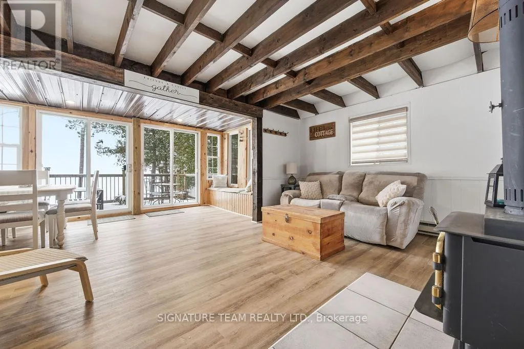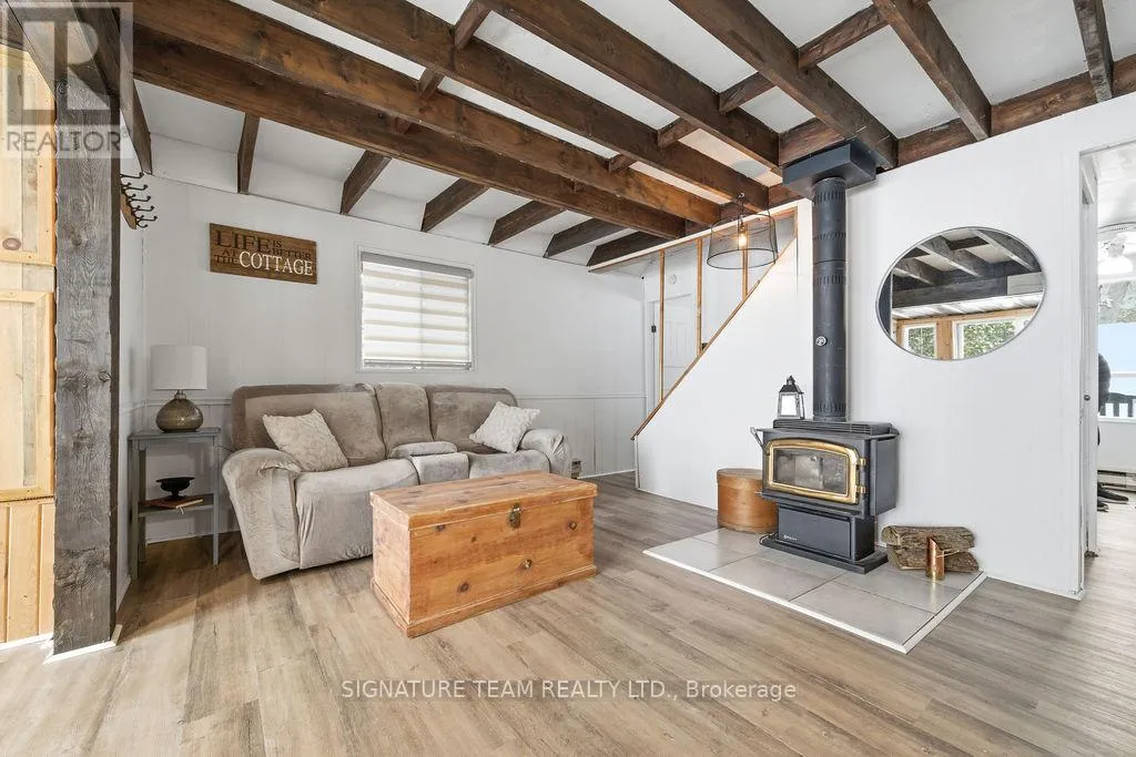 Cross Streets: Priest Camp and Maple Grove. ** Directions: Bulger Road to Jessup to Maple Grove Lane. Welcome to your dream waterfront cottage on beautiful Mink Lake, just outside of Eganville, Ontario. Known for its crystal clear water, excellent swimming, and fantastic boating and fishing, Mink Lake is one of the Ottawa Valley's most desirable cottage destinations. This property features 76 feet of owned shoreline with gradual entry and firm sandy bottom, making it perfect for kids, swimming and launching water toys. A dock is included, giving you an easy spot to tie up the boat or relax by the water. the cottage itself is full of charm, offering a traditional wood exterior with durable metal roof and large deck that looks directly over the lake. Inside you will find three bedrooms-one conveniently located on the main level, and two upstairs, including a master with a private balcony overlooking the water. A 3 piece bathroom, kitchen and open concept living/dining room with woodstove provide everything you need for lakeside living. Appliances are included for turnkey convenience. The lot is thoughtfully laid out to maximize enjoyment, with plenty of outdoor spaces including a fire pit for evening gatherings, a patio at the waters edge, dedicated canoe storage, and room to park 4 vehicles plus additional road side parking. For overflow guests there is a 8x12 bunkie, while a detached 3 piece washroom with lake fed water and septic hook up adds extra comfort. the main cottage is serviced by a dug well and septic system. the owned shore road allowance forms part of the lot, giving you full use and enjoyment of the waterfront. Located just 10 minutes from Eganville for shopping and amenities, 30 minutes to Renfrew or Pembroke and an hour to Kanata, this property is easily accessible while offering the peace and tranquility of lakeside living. Whether you are looking for a family cottage or vacation rental investment, this Mink Lake property has it all. (id:27476)