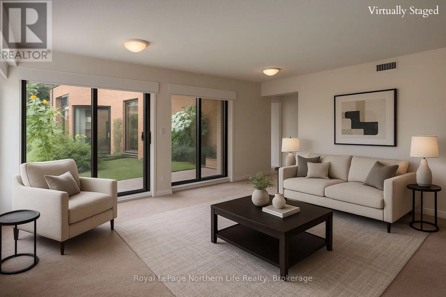 Cross Streets: Timmins Street & Main St W. ** Directions: Main Street W to Timmins St to 155 Timmins St \" Harbourside\". Harbourside condo - 114-155 Timmins Street. Beautiful 1740 sqft 2 bedroom main floor condo overlooking beautiful Lake Nipissing. This fine condo features large wide open living room, dining area with large new windows overlooking a Lake and access to a 3 season patio enclosed to view those beautiful sunsets. Galley style kitchen with eat-in area that overlooks enclosed patio area and appliance package. Primary bedroom has windows to lakeside, walk-in closet and second closet area. 1-5 bath with marble floor, double sinks, separate shower and soaker tub. On the other side of the suite you have a second bedroom and a 1-4 pc bath with tile floor. Good size laundry area with washer and dryer and room for freezer. Air conditioned throughout. 2 parking spaces, one covered close access outside and one by tennis court. Updated pool area . Party room and 2 guest suites in building. Secure access to condo. Don't miss out on this gem. Listed at $699,900. (id:27476)
