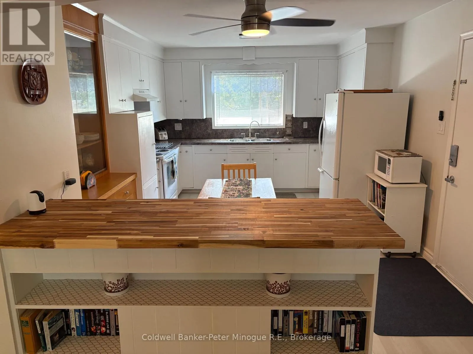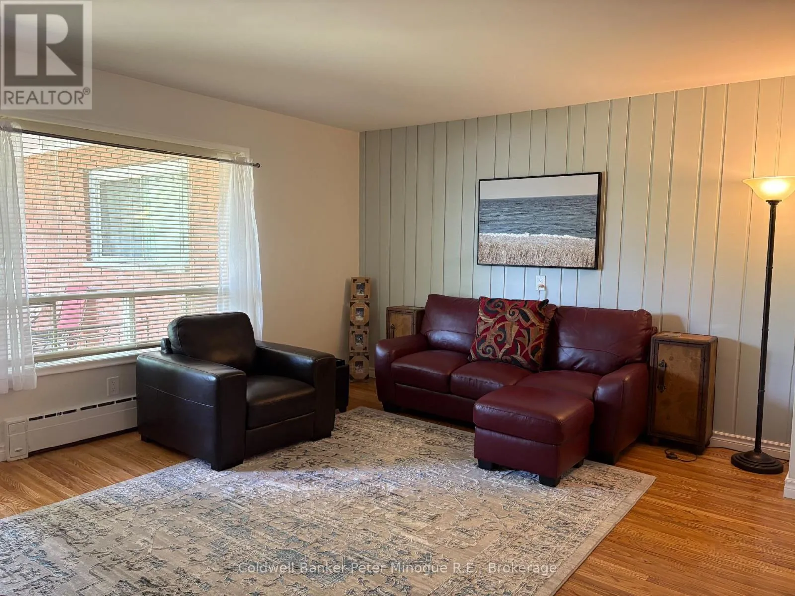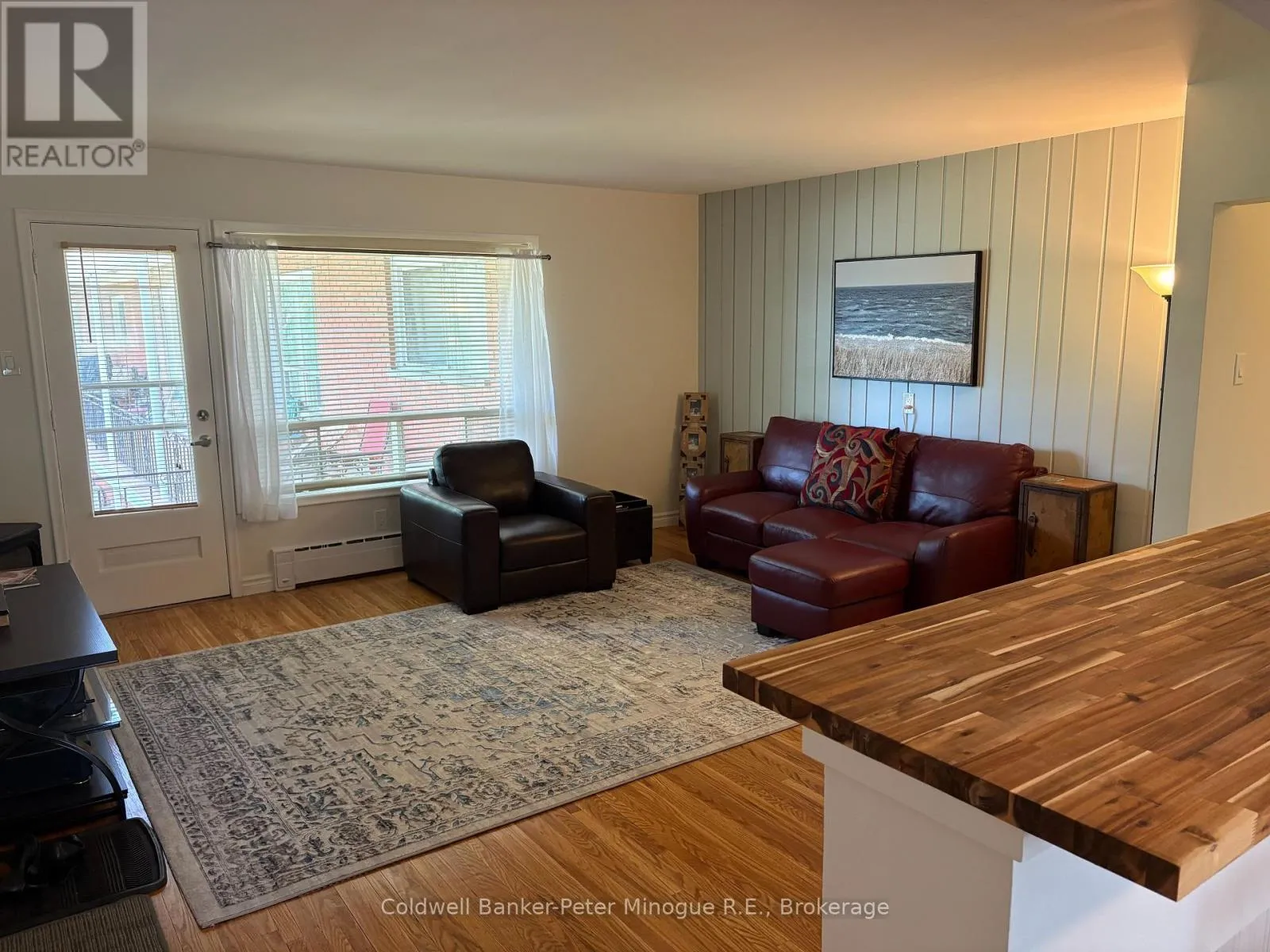 Cross Streets: LAKESHORE. ** Directions: LAKESHORE DRIVE TO JUDGE. One of the Best-Priced Waterfront Lifestyle on Lake Nipissing! $321,900 Welcome to Unit 22 at Shore Haven Condominiums, where comfort meets lakeside living at an unbeatable value. This bright and spacious 2-bedroom, second-floor corner unit offers peace and privacy with no neighbours above and sweeping views from a 5x30 ft. covered balcony. Inside, you'll find modern updates throughout, including refinished hardwood floors, fresh paint, new vinyl flooring, a spacious dine in kitchen with a built-in china cabinet and an updated bath, plus in-suite laundry for everyday convenience. Step outside and enjoy a private sandy beach right at your doorstep, or take advantage of the well-maintained grounds, recent balcony upgrades, security cameras, and pet-friendly living (with restrictions). With deeded rear parking next to entry, easy visitor access, and condo fees of only $533.26/month covering heat, water, sewer, building insurance, maintenance, snow removal, garbage, roof, and parking, this condo makes waterfront living truly worry-free. Whether you're looking for a year-round home, a relaxing retreat, or a smart investment, this property delivers exceptional value. Don't miss your chance to own one of the best-priced waterfront lifestyle on Lake Nipissing (id:27476)