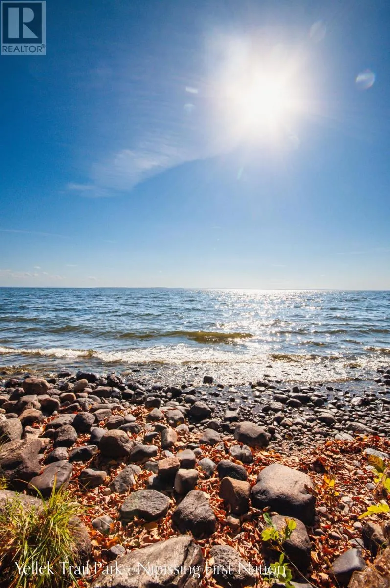Cross Streets: Nova Beaucage/Yellek. ** Directions: Highway 17 W, left on Nova Beaucage, left on Yellek. PURCHASER MUST BE A MEMBER OF NIPISSING FIRST NATION. Welcome to this beautifully built (2022) custom home offering modern finishes and space for the whole family. Located less than 10 minutes from North Bay and just across the road from Lake Nipissing, this 3+2 bedroom, 1.5-storey home features an open-concept main living area with soaring 18' vaulted ceilings and walkout access to a covered front porch. The main floor offers two generous bedrooms, a stylish 3-piece bath with a tiled walk-in shower for easy access, and convenient main-floor laundry. The upper level includes an additional spacious bedroom. The lower level is partially finished (insulated, framed, and wired), offering plenty of space for a large recreation room, games area, gym, or additional family living. It also includes two large potential bedrooms or flex spaces, a roughed-in 4-piece bath, and a utility room. A detached 1.5-car garage provides easy access to the home via an accessible ramp to the main foyer. Comfort features include forced-air natural gas heating and roughed-in for in-floor radiant heat throughout the lower level. As well as current kitchen, and main-floor bathroom in-floor heating. Built with a poured concrete foundation and durable wood siding, this home is solid and efficient. Enjoy being within walking distance to a local park and the community boat launch on Lake Nipissing, perfect for boating, paddling, snowmobiling, and fishing year-round. (id:27476)