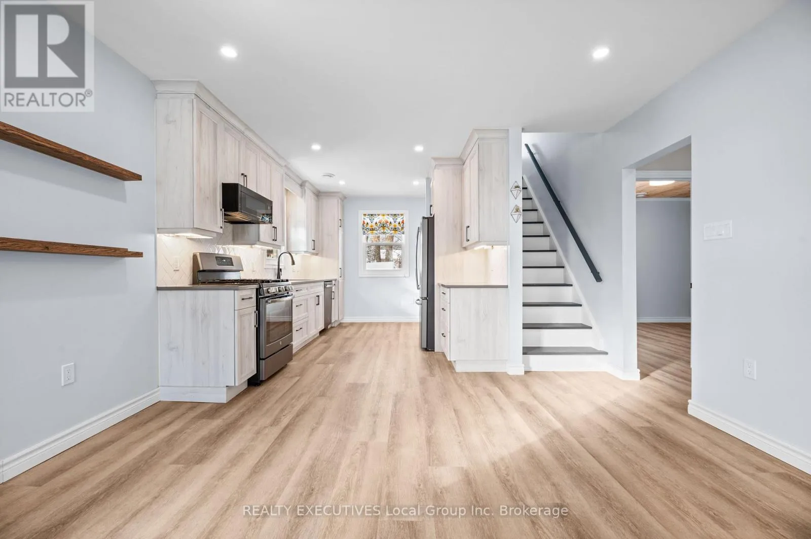 Cross Streets: Jane St & Nipissing St. ** Directions: Follow Algonquin St to Jane St. Turn left onto Nipissing St. See sign on property, 2nd house on the right. Some houses feel right from the moment you step inside. 570 Nipissing Street is one of those homes: bright, thoughtfully updated, and filled with a comfortable warmth that makes it easy to imagine your life here. The open-concept main floor welcomes you with natural light streaming across the living and dining area, flowing seamlessly into the kitchen with its clean quartz countertops. Practical vinyl plank flooring runs throughout, and two main-floor bedrooms and a three-piece bathroom create an easy, functional layout for daily living. Upstairs, the versatile loft waits to become your third bedroom, quiet home office, or cozy retreat. The finished basement expands your living space with a relaxed rec room, an extra room for hobbies or guests, laundry, and plenty of storage. A true highlight is the basement bathroom, with a deep soaker tub and a separate walk-in shower. Outside, the back deck off the kitchen is perfect for sunny mornings or evening barbecues, complemented by a handy storage shed and ample parking. Located in North Bay's West End, you're just a short walk from the sand and sun at Kinsman Beach on Lake Nipissing, neighbourhood parks, and great schools like Algonquin Secondary. With gas forced-air heating and central air conditioning for year-round comfort, this home has been cared for with attention. It's ready not just to be lived in, but to be loved. 570 Nipissing Street is waiting to become your new chapter. Some photos virtually staged. (id:27476)