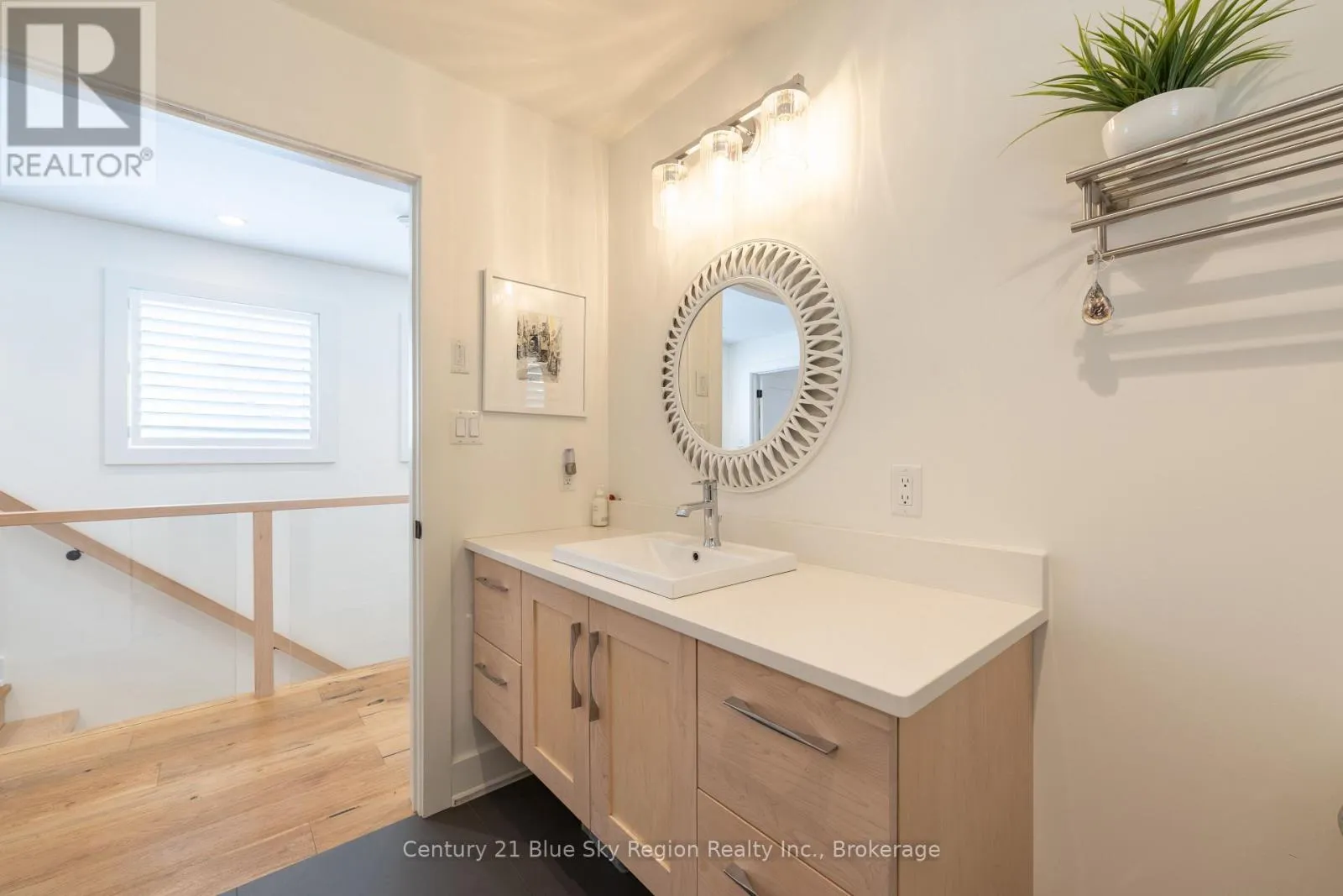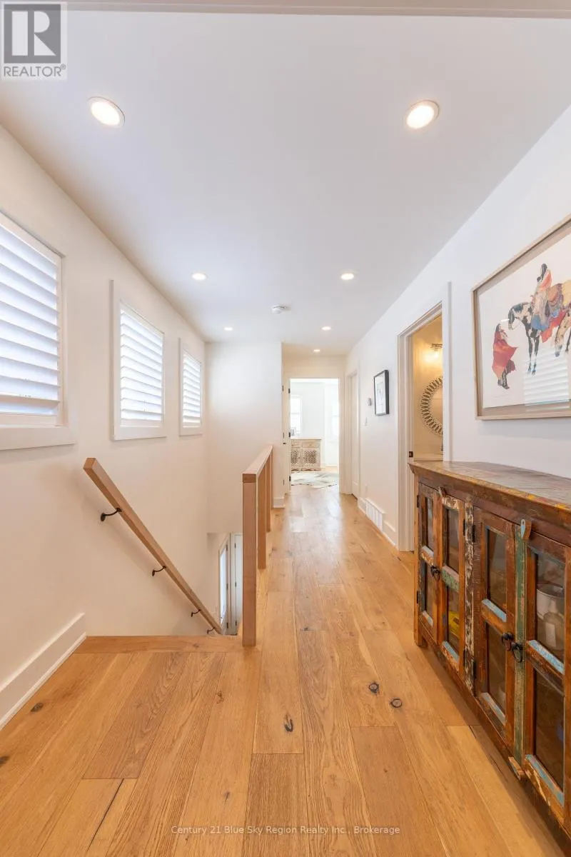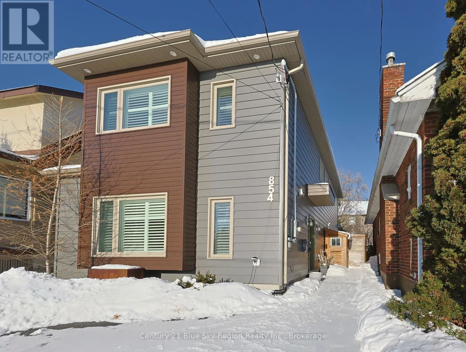 Cross Streets: BOURKE/DURRIL. ** Directions: JANE TO DURRIL, LEFT ON BOURKE. Welcome to this stunning west end gem, built in 2020 by Bay Builders, this elegant 2 storey home features modern and cozy vibes inside and out. The main floor features a beautiful open concept living space with a custom Dowdal kitchen complete with appliance package, quartz counters and bar seating. The bright living/dining area offers plenty of natural light, heated radiant floors throughout the living room and large centre opening patio door accent wall, seamlessly blending indoor & outdoor living with a large patio with BBQ gas line, custom landscaping and fully fenced, making for the ultimate summer oasis. Main floor primary bedroom with walk-in closet and additional 2nd closet. 4pc bathroom with custom walk-in tile shower and dbl vanity as well as main floor laundry and a spacious foyer complete the level. The upper floor features a beautiful custom staircase with glass rail leading to a large family room or bedroom complete with double doors and large closet. The 3rd bedroom offers afternoon sunsets and cozy seasonal lake views along with plenty of closet space. Custom 4 piece bath and storage room with optional laundry hookups. The property is low maintenance inside and out, with durable engineered hardwood flooring and porcelain tile throughout. Forced air gas heating, AC and radiant in-floor heating throughout the living room, combined with modern construction and insulation make for a very efficient home. EV plug and custom California shutters throughout. The exterior is metal siding with a paved double driveway and is beautifully landscaped front and back. Close proximity to area schools, downtown shops and Lake Nipissing waterfront. Enjoy peace of mind in this carefree home. Must be seen in person to be fully appreciated. (id:27476)