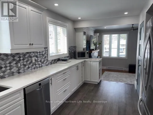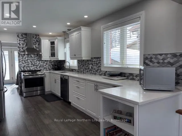 Cross Streets: Merlin Avenue. ** Directions: Lakeside Drive to Sage Road to left on Sable Crescent. 98 Sable Cres - Beautiful Birchaven! Home built by Ferreria Homes in 1984 with many upgrades over the years. Located on well landscaped lot with updated paved double drive and front entrance walkway 2024. Sunken living room with cozy gas fireplace and carpeted flooring 2021. Total remodel in kitchen with quartz counter, stainless steel appliance package 2022. 1-2pc off family room with glass sliding doors to rear yard with inground pool and updated stone work wall at pool area. Total fenced rear yard with view of trees. 3 bedroom on upper level. Primary bedroom with 1-4pc ensuite. Hardwood floors on bedroom level. Another 4pc bath services other 2 bedrooms on same level. Lower level features rec room on double office area with beautiful built-in bookcase. 4th bedroom, finished laundry room & large workshop. Single attached garage with rear entrance over to pool area. New pool heater & shed 2019. Don't miss this beauty with summer pool oasis for great family times. Listed 599,900 (id:27476)