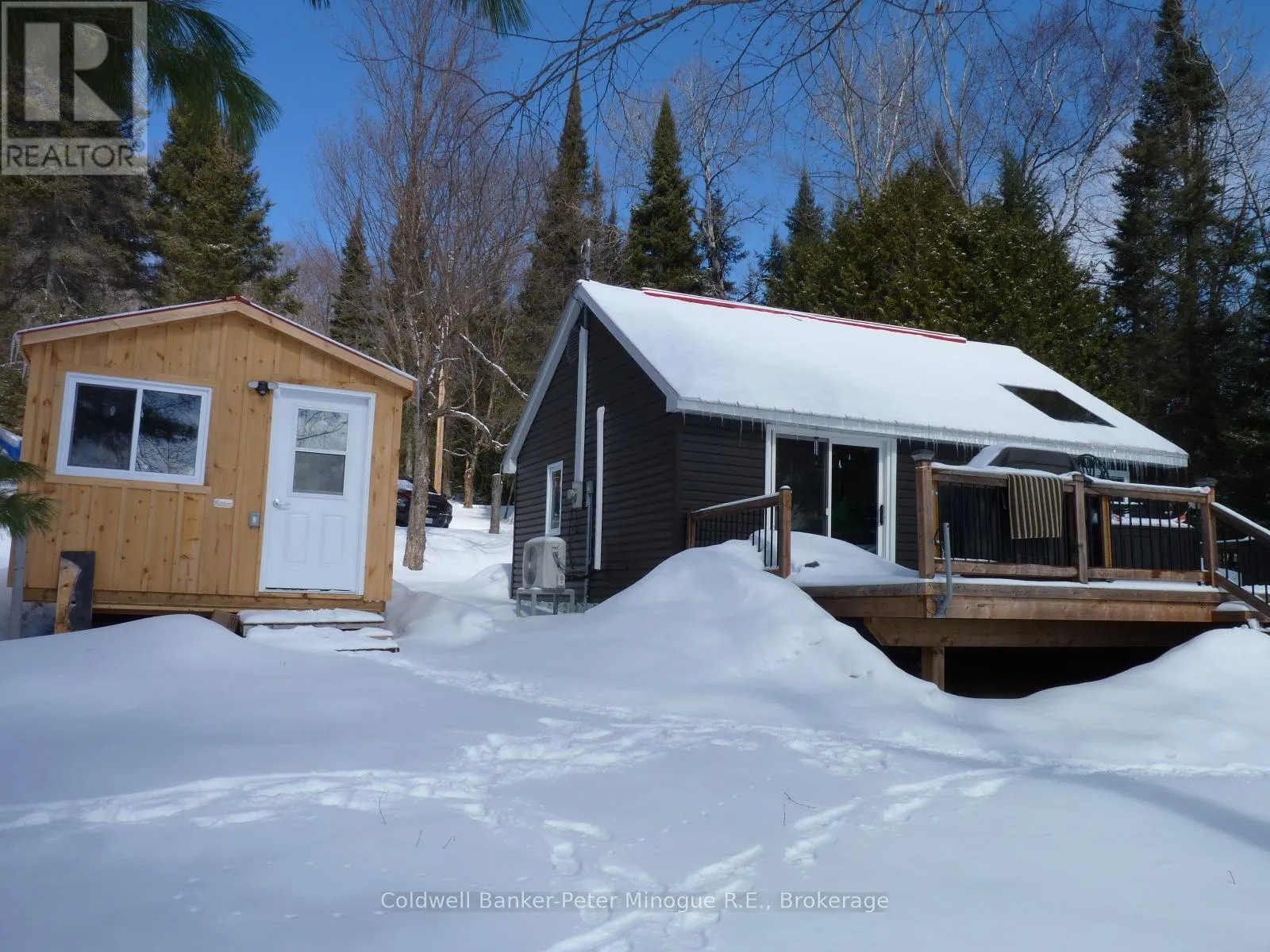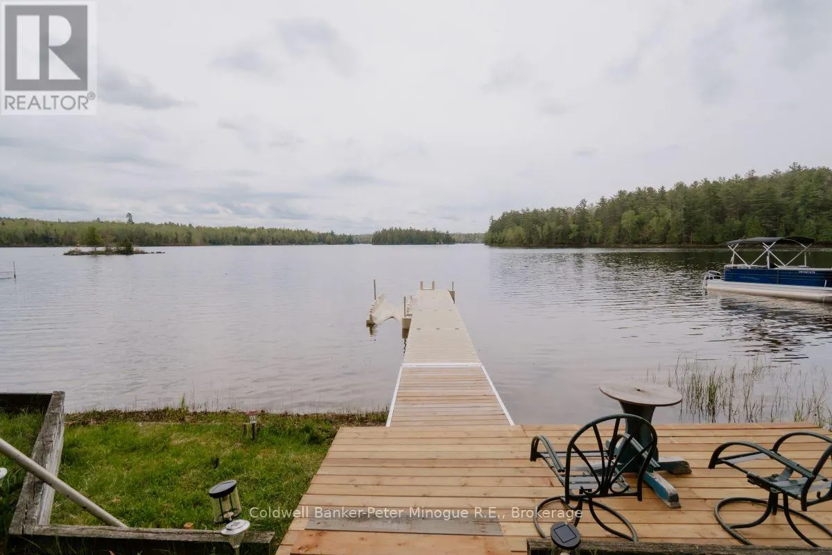 Cross Streets: HWY 63 AND PENINSULA. ** Directions: FOLLOW PENINSULA ROAD TO THE END. Plan ahead of the Spring market, head down the paved Peninsula Road to this recently renovated bungalow on Trout Lake. Owner over the last year, invested in a steel roof, vinyl siding with 2 inch insulation, To bring the natural lighting, newer windows and a Skylight. The interior is finished in natural wood finishes has Patio doors from the spacious open concept living and dining room, to the deck overlooking Trout Lake. Vaulted ceilings accent the natural wood finishes. There is a 3 piece bathroom and one bedroom. A gentle slope down to the lake. For your fun on the lake, a newer composite dock to launch from with a kayak launch for convenience. On the landscaped yards there are 2 sheds for storage. There is a bunkie by the home which is used as a Art studio on the spacious .7 acre property. There is property as well on the other side of Peninsula Road, which is marked off for locating on your viewing. Is this your time to Invest in a cottage or year round waterfront home? (id:27476)