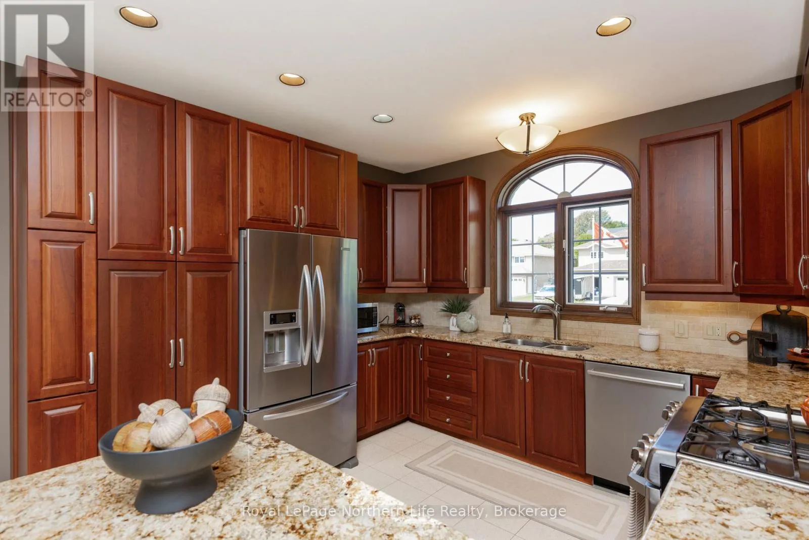 Cross Streets: Janey and Vermont. ** Directions: Airport to Surrey, left on Willingdon, right on Greenhill, left on Janey to SOP. Welcome to this stunning, one-owner executive home located on a desirable street on Airport Hill. Pride of ownership shines throughout this beautifully maintained all-brick residence, offering over 5,000 sq ft of finished living space and backing onto serene greenspace for the ultimate in privacy and tranquility. Situated on a double lot, the property features a fenced backyard with a spacious deck, perfect for entertaining or relaxing while enjoying nature. A private sauna adds a luxurious touch to the outdoor space. Inside, the home boasts a bright, upgraded kitchen complete with stainless steel appliance package, overlooking a cozy living room with a gas fireplace and an abundance of windows and glass doors leading to the deck. The main floor also includes formal dining and spacious den, as well as convenient main floor laundry with direct access to the garage. Upstairs, you ll find four generous bedrooms, including a luxurious primary suite with a walk-in closet and a 5-piece ensuite bathroom.The walk-out lower level offers fantastic potential for an in-law suite or income-generating unit, making this a truly versatile home for any stage of life. Additional features include, double car garage with additional space for storage or a workshop, interlocking brick circular driveway, security system, quiet and established neighborhood and minutes to all amenities! This exceptional property offers space, comfort, and opportunity in one of North Bays most sought-after locations. Dont miss your chance to call this executive retreat home. (id:27476)