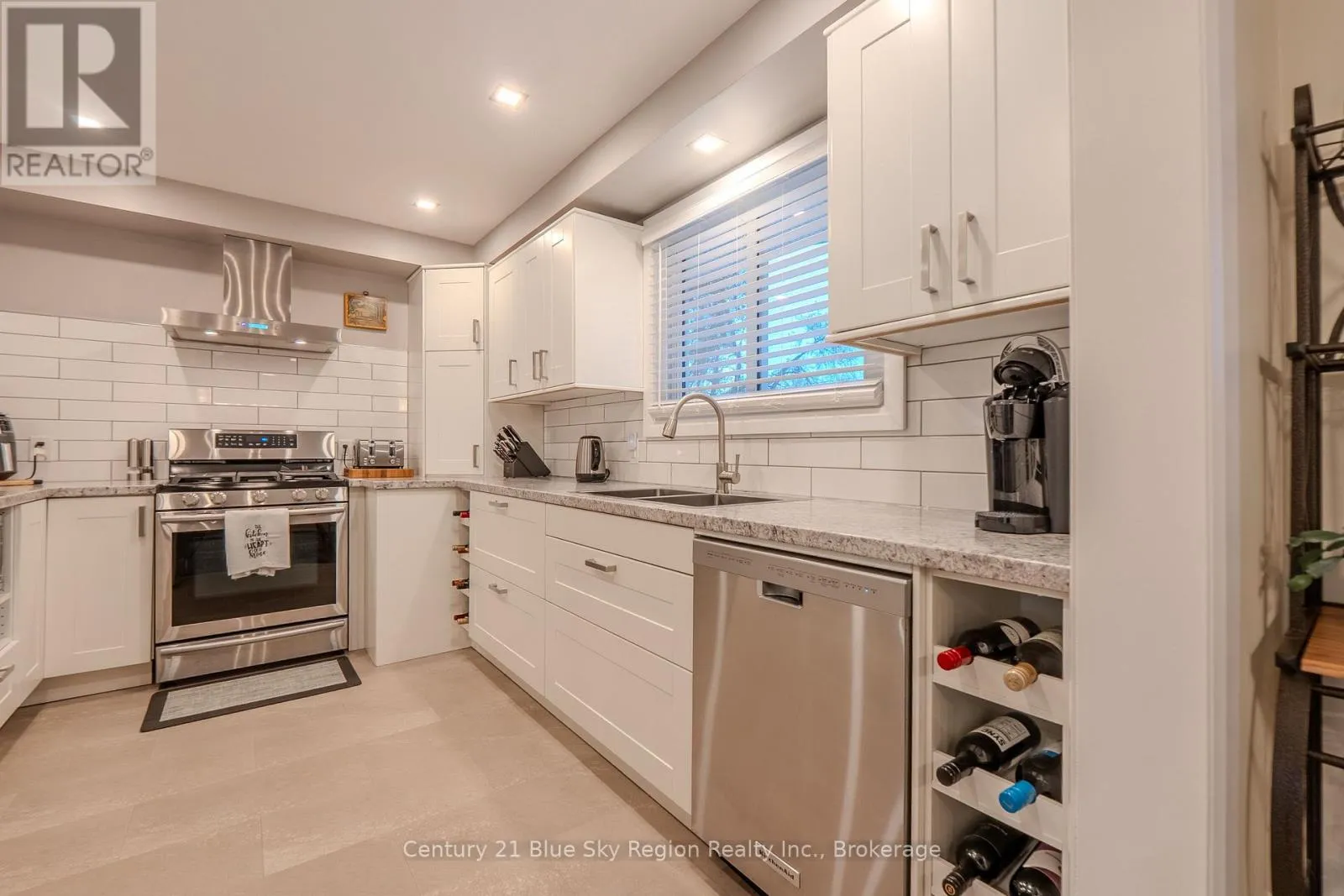 Cross Streets: McKay Ave and Sandra Ave. ** Directions: Trout Lake Rd to McKay Ave to Sandra Ave. Welcome to 2518 Sandra Avenue, a solid brick bungalow tucked into a desirable North Bay neighbourhood, offering space, flexibility, and thoughtful updates throughout. Step inside to a beautifully renovated kitchen, complete with a convenient bar top and a separate dining area-ideal for family meals and entertaining alike. The main floor features three well-sized bedrooms, an updated 4-piece bathroom, and the convenience of main floor laundry, making everyday living effortless. Downstairs, the fully finished lower level opens up even more possibilities. A large rec room provides plenty of space to relax or host, while the kitchenette, two additional bedrooms, and a 3-piece bathroom create an excellent setup for extended family, guests, or potential in-law capability. With laundry also available on the lower level, this home is designed with flexibility in mind. Outside, enjoy a fully fenced backyard built for both relaxation and entertaining, complete with a spacious patio area and charming gazebo, perfect for summer evenings. Additional highlights include an attached single-car garage and key updates such as windows, garage door, furnace, and central air conditioning, offering peace of mind for years to come. A move-in-ready home with room to grow. This is one you won't want to miss. (id:27476)
