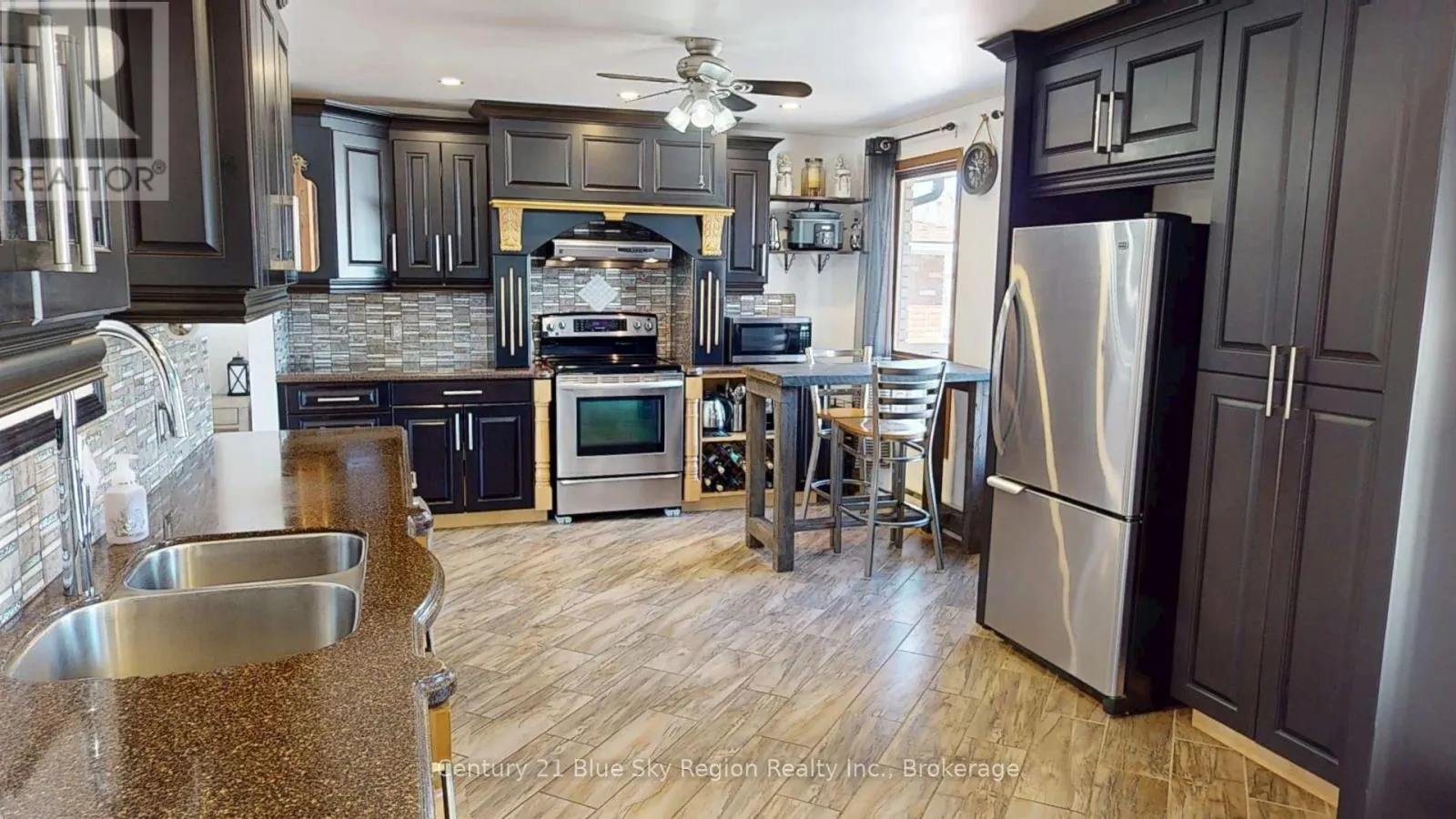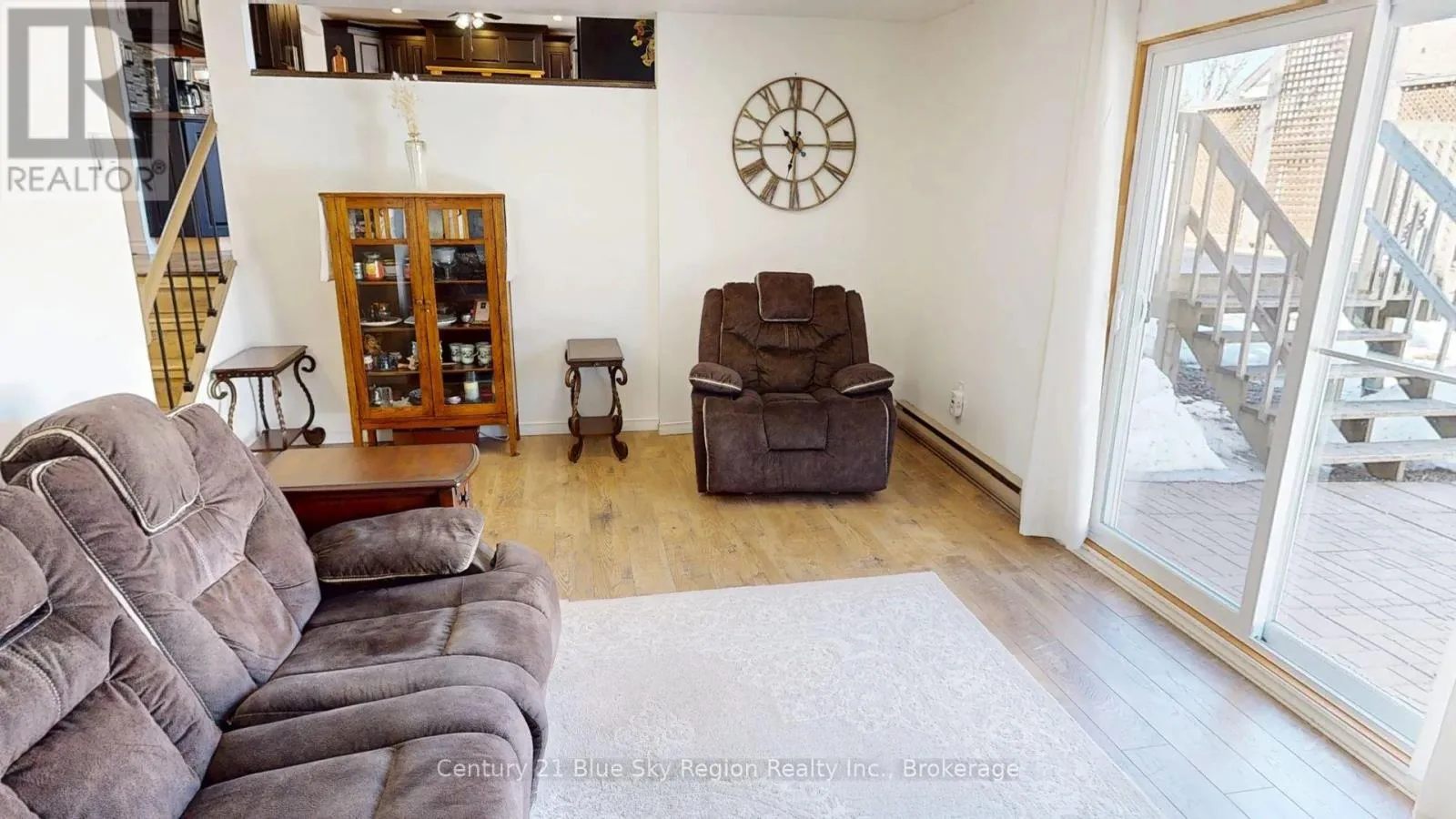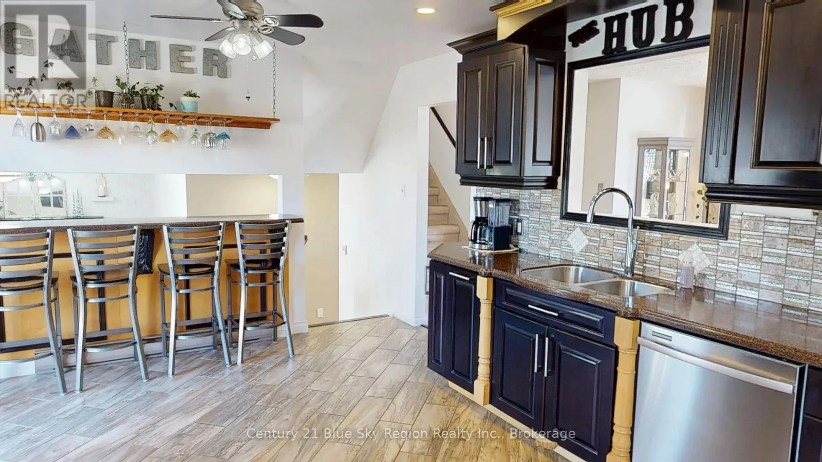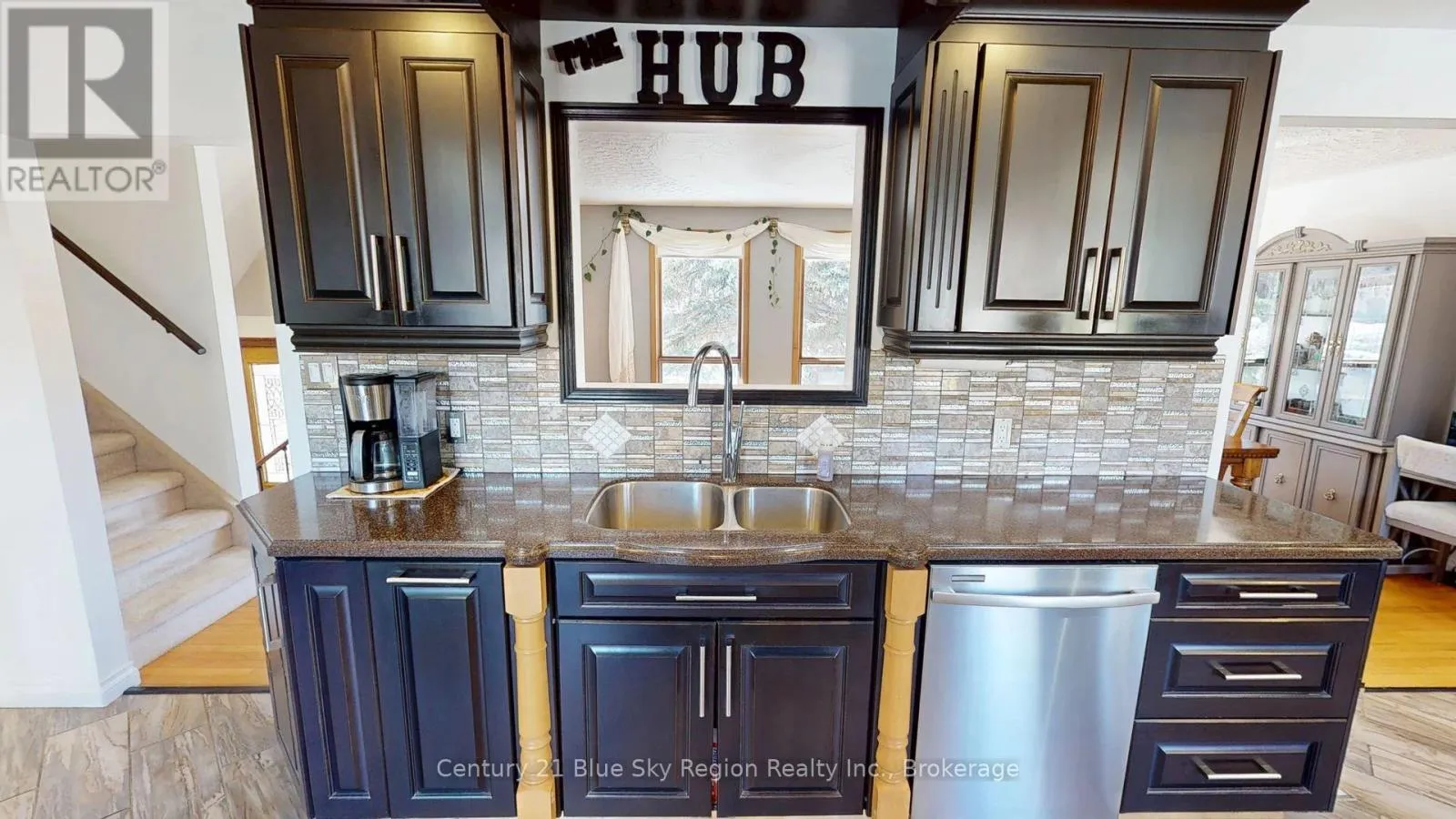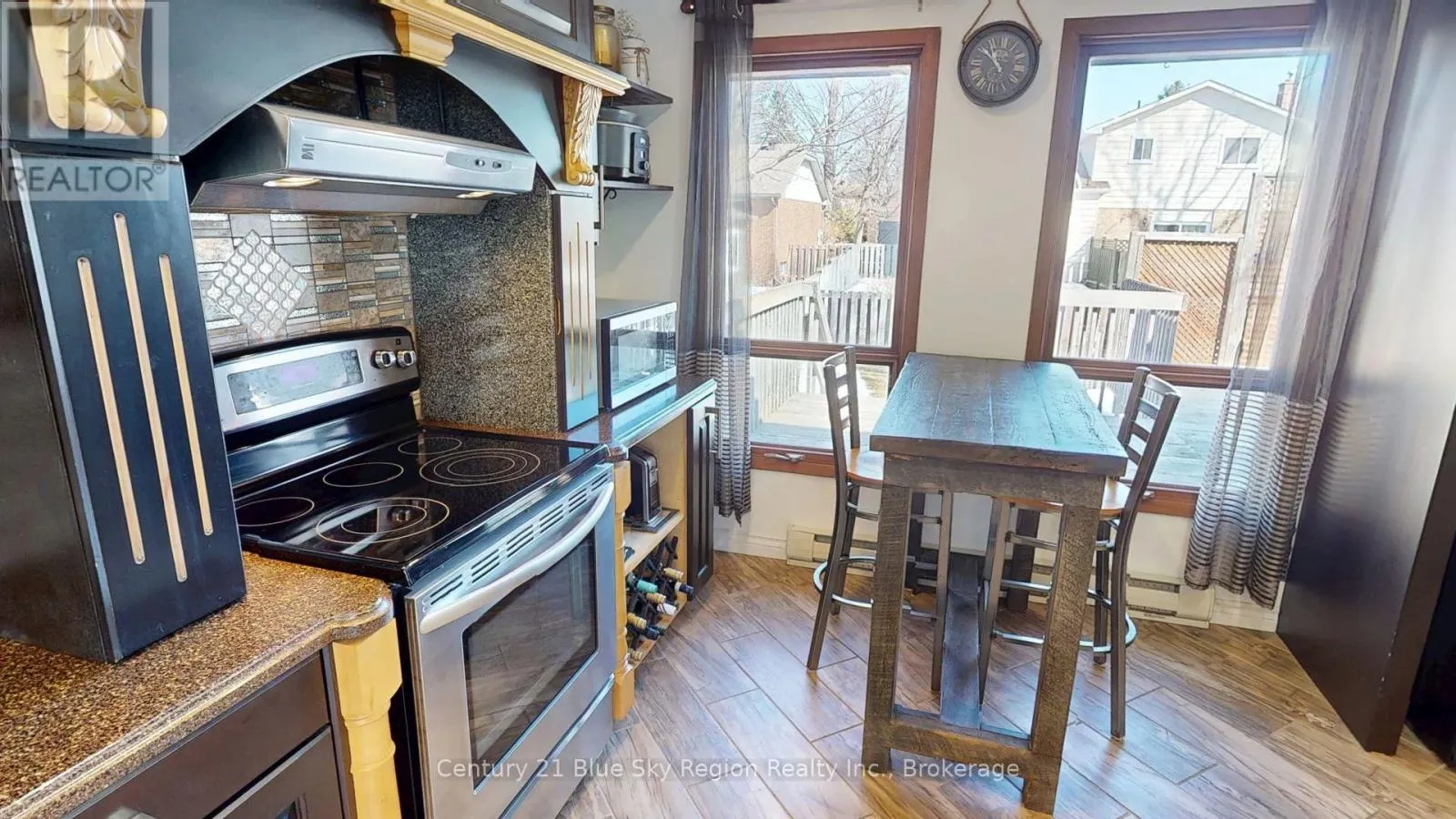 Cross Streets: Whippletree. ** Directions: Surrey to Whippletree to Carriage. Welcome to a home that effortlessly blends style and functionality, offering the lifestyle you've always envisioned. The heart of the main floor is a stunning open-concept kitchen, dining, and living space where bold espresso cabinetry, mosaic tile backsplash, stainless steel appliances, and warm wood-look flooring create an atmosphere that's equal parts sophisticated and inviting - perfect for entertaining or quiet family evenings. Sun-drenched windows in the adjacent living room frame lush evergreen views, bathing the space in natural light and bringing the beauty of North Bay indoors. Upstairs, the generously sized primary bedroom offers a serene retreat with warm flooring and a ceiling fan for year-round comfort, accompanied by three additional bedrooms ideal for family, guests, or a home office. The bathrooms are thoughtfully designed - one featuring cool blue tones with a walk-in shower, another with clean white finishes and tile flooring. The versatile lower-level living room provides bonus space for recreation or relaxation. With two living areas, a dedicated laundry, and 1927 sq. ft. of well-planned space, this home is ready to grow with you. (id:27476)