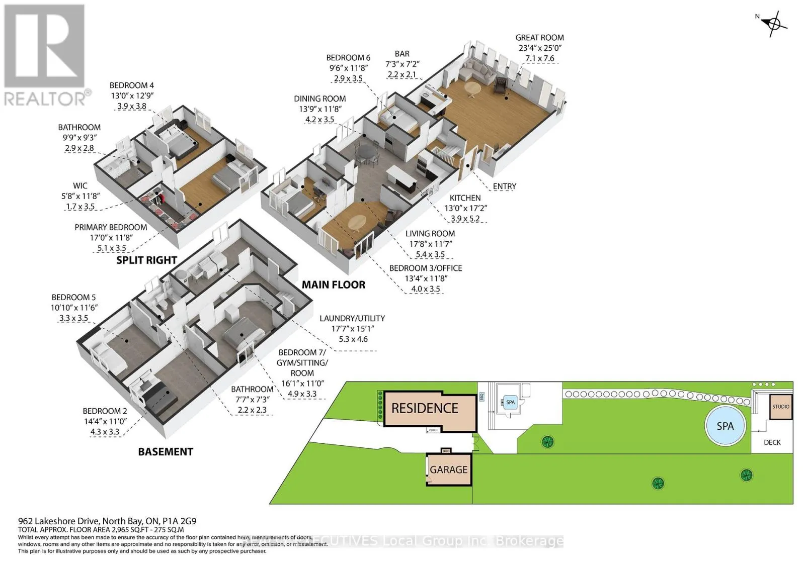 Cross Streets: Hwy 11. ** Directions: Follow Hwy 11 to Lakeshore Dr. See sign on property. 962 Lakeshore Drive - North Bay, 7 bedrooms, 2.5 bathrooms, backsplit , above-ground pool, no rear, neighbours, parking for 7, West Ferris. Room to spread out, gather, and enjoy both inside and out. Located in North Bay's West Ferris neighbourhood, you're close to the Steve Omischl Sports Complex, schools, parks, and just minutes to Lake Nipissing. The backyard is set up for everyday living and summer get-togethers. Fully fenced with no rear neighbours, it features an above-ground pool, surrounding deck areas, a gazebo with gas fireplace, and a bunkie with hydro that works well as a hangout, hobby space, or quiet retreat. Add in the portable sauna and you've got a space that's easy to enjoy year-round. Inside, the layout gives everyone their own space while still feeling connected. The lower level rec room with gas fireplace and wet bar is a natural spot for movie nights or watching the game, with patio doors leading straight out to the yard. The kitchen is designed for gathering, with a built-in side-by-side fridge and freezer, room at the island, and easy flow into the dining and living areas. The multi-level layout creates natural separation between spaces. On the upper level, the primary bedroom sits alongside a second bedroom and the main five-piece bathroom. Additional bedrooms are spread across other levels, along with multiple bathrooms and flexible living spaces - well-suited for extended family, shared living, or supplementary income. The finished basement adds more usable space with additional bedrooms, a full bathroom, and laundry. Out front, the interlock driveway provides parking for up to seven vehicles, with room for trailers or recreational equipment. Gas forced air heating and air conditioning keep things comfortable year-round. Groceries, restaurants, the LCBO, and Galaxy Cinemas are all about five minutes away, with public transit nearby. A flexible home with space, function, and a backyard built to be enjoyed. (id:27476)