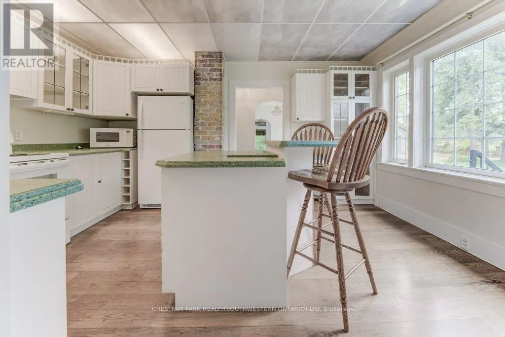 Cross Streets: Trussler Road. ** Directions: Trussler Road, to Gladstone Rd to Piper St. Once in a while, a property comes along that is truly one-of-a-kind and 177 Piper Street is just that. Nestled on a private 0.95-acre lot, this charming century home (built in 1878) is perched along the banks of the Nith River, where you can canoe right from your own backyard thanks to brand-new stairs leading down to the waters edge.This 3-bedroom, 3-bath residence blends historic character with modern comfort and has been lovingly maintained throughout. Inside, spacious principal rooms include a formal dining room with garden doors that open onto a deck with sleek glass railings an ideal spot for entertaining or taking in the serene river views. The bright kitchen features abundant cabinetry, a centre island, Corian countertops, and hardwood flooring that flows seamlessly into the dining area.The main floor offers two bedrooms and two bathrooms, including one with a corner soaker tub and skylight, as well as a warm and inviting family room highlighted by a vaulted ceiling and striking gas fireplace. Upstairs, the private primary bedroom retreat includes its own 2-piece ensuite.Outside, the detached 22 x 24 two-car garage provides excellent utility, while the property itself is surrounded by lush gardens, mature trees, and an abundance of wildlife. Whether its birdwatching, riverside relaxation, or paddling down the Nith, this home is a rare opportunity to enjoy nature and history in one of Ayrs most desirable locations. (id:27476)