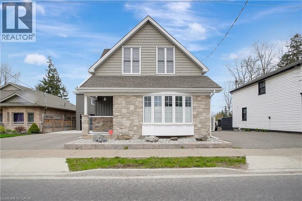 115 Northumberland between Inglis & Hall Here it is, a beautifully crafted, custom-built home on an oversized 64' x 130' lot in the heart of old Ayr with MASSIVE detached garage with loads of power for all your TOYS! Modern comfort, small-town charm, and professional-grade finishes sums this one up. Bright open-concept sun drenched layout featuring a chef-inspired kitchen with a walk-through pantry-perfect for family life and seamless entertaining. Three bedrooms (easily converted to four), two bathrooms, and thoughtful upgrades throughout, every detail has been finished with quality and care.Now, the standout is the 29' x 16' DETACHED HEATED GARAGE -fully powered, professionally finished, ideal for hobbyists, tradespeople, or anyone needing serious workspace. With ample electricity, heat, and room to create, it's the perfect setup for tools, projects, or a home-based business.The fully fenced yard, beautiful gardens, a fire pit, and oversized deck for relaxing or hosting guests.Premium features include: Wi-Fi smart lighting and dimmers, integrated surround sound in every room, on-demand hot water, whole-home filtration and softening, no rented equipment, plus multiple heating systems-radiant in-floor heat, a dual-zone heat pump, and a cozy gas fireplace. This home is tricked out with technology!Steps from Ayr's historic downtown, trails, and a bustling community centre offering all that it does. A neighbourhood where you wave hello, kids play outside, and life moves at the Family pace.A custom-built home with professional finishes, modern comforts, and a powerhouse detached garage-designed for living, working, and thriving. (id:27476)