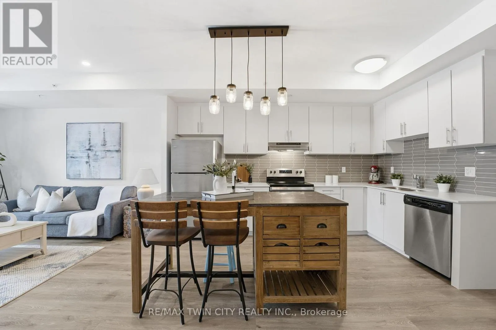 Cross Streets: Northumberland. ** Directions: Northumberland to Gibson. Welcome to condo living in Ayr at Piper's Grove! This modern mid-rise community offers an ideal opportunity for first-time buyers, downsizers, or savvy investors looking for a low-maintenance lifestyle in a growing, well-connected town. This bright and spacious suite features 1 bedroom plus a versatile den, 1 bathroom, and 885 sq ft of thoughtfully designed living space, along with a private 84 sq ft balcony - perfect for enjoying your morning coffee or unwinding at the end of the day. The open-concept kitchen, dining, and living area is flooded with natural light and showcases contemporary finishes throughout. The kitchen is both stylish and functional, featuring sleek white cabinetry extending to the ceiling, a neutral backsplash, quartz countertops and a striking designer lighting over the dining area. The primary bedroom offers convenient access to the 4-piece bathroom, creating a comfortable and efficient layout. Additional highlights include luxury vinyl plank flooring throughout and in-suite laundry for everyday convenience. Residents enjoy a secure building entrance with intercom system, as well as a welcoming main-level amenity room complete with a kitchenette and washroom - ideal for gatherings or entertaining. One parking space is included. Located at the end of Gibson Street in downtown Ayr, Piper's Grove is just steps from parks and walking trails and offers easy access to Cambridge, Kitchener, Paris, Brantford, and Woodstock. Combining modern finishes, smart design, and a friendly community atmosphere, this is condo living at its best. (id:27476)