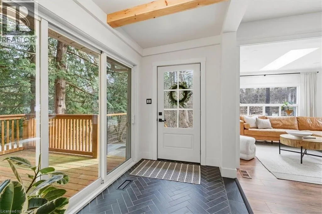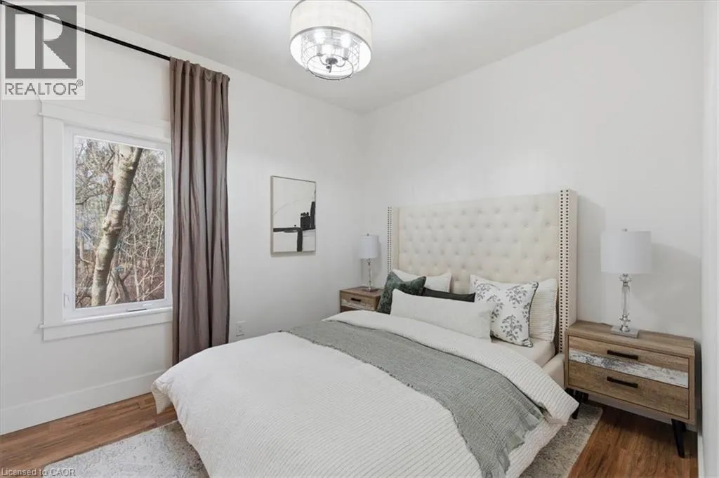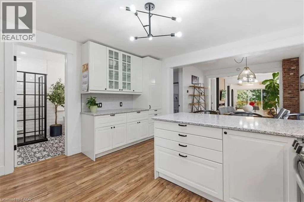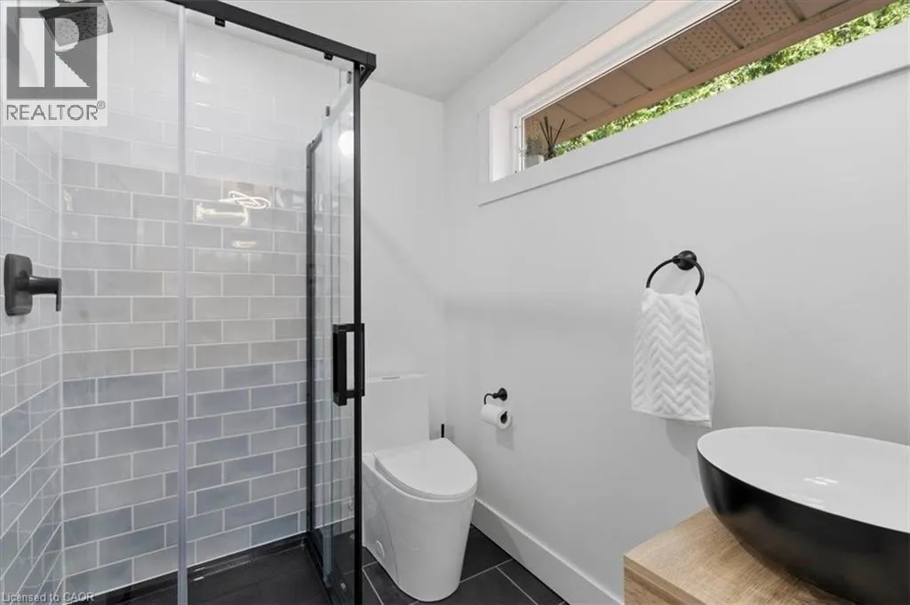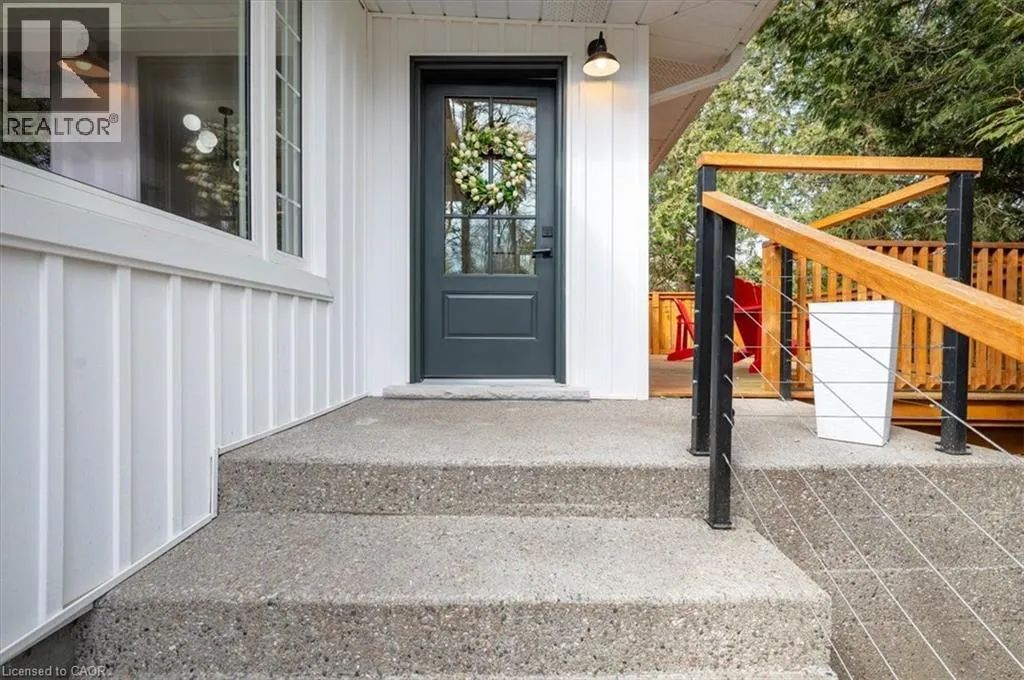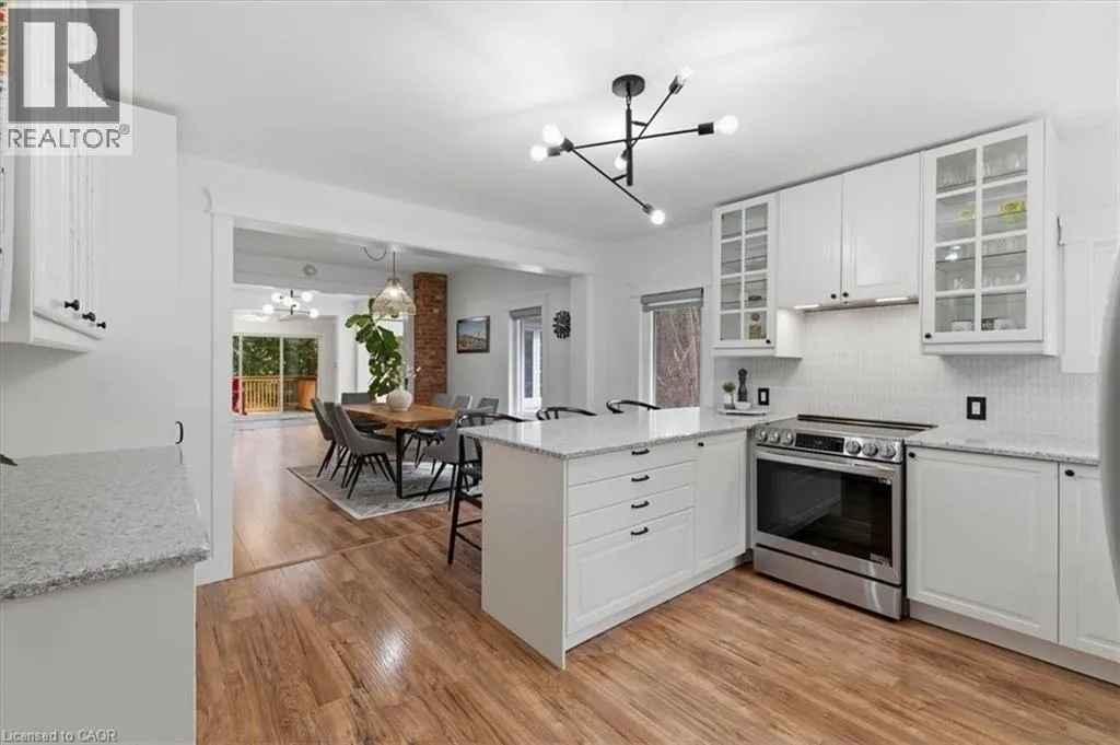 Hwy 24 South to Footbridge Road to West River. Sitting on one acre of land, nestled along the wooded banks of the grand river, this recently updated home is ready to be yours, in the quaint neighborhood of Sheps Subdivision, North Dumfries. At a quick glance, you get the feeling that youâve left the city hours behind, but itâs actually a scenic 8 minute drive to downtown Galt. The home and detached garage take advantage of the deep lot as they sit back from the road, the mature trees create a natural buffer making the property more private. The bungalow is approximately 1466 square feet of pure charm. A three-panel floor to ceiling window and sliding door separate the foyer from the front facing deck which overlooks the pond and creates the spot for you to enjoy your morning coffee. The living room is the perfect example of how immersed the home is into its natural surroundings, windows on all three sides and a skylight; you wonât suffer from the lack of natural light here. The formal dining room separates the living room from the eat in kitchen, rightfully occupying a major part of the main floor space. Wrap around quartz countertops form a peninsula that can seat three. Storage and display cabinetry fully utilize the wall space adding function and elegance with stainless steel appliances. The home hosts two bedrooms and two bathrooms, one is a 3 piece and one is a luxury 5 piece, complete with free standing soaker tub and the shiplap wall finishing of the mudroom laundry continues to bring the cottage feel. The second structure on the property is dual purposed. Itâs a detached garage or shop space, and right beside it with a separate entrance and its own heating and cooling system, an additional bachelor dwelling unit complete with kitchen, bathroom, and laundry. Furnace (2023), Septic system rebuild (2023) You will be hard pressed to find a property so close to the city that offers the privacy and versatility like this one! (id:27476)