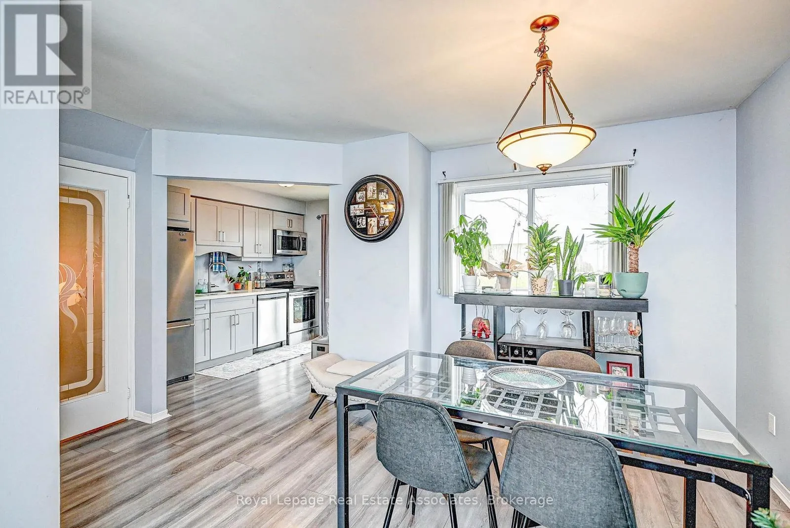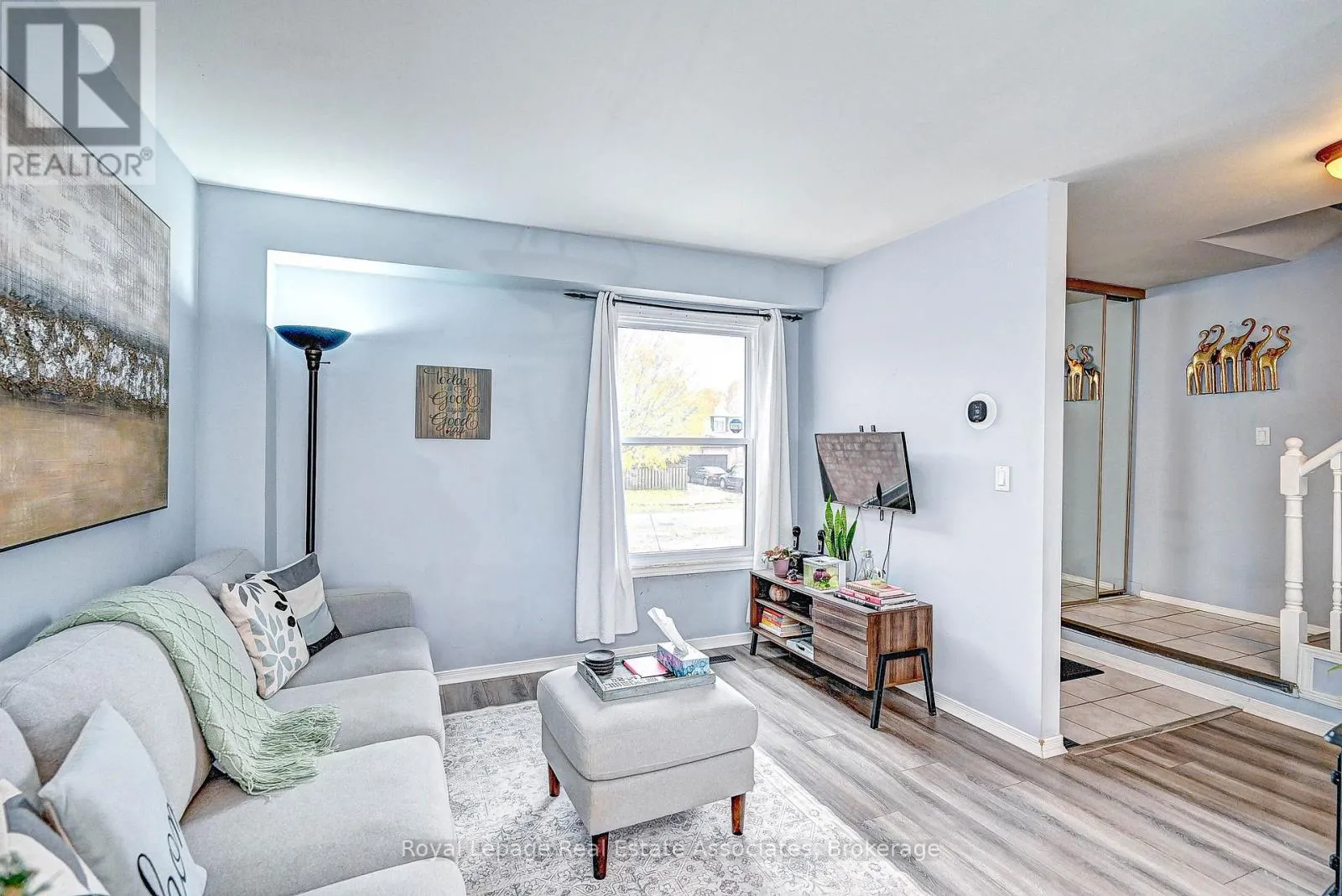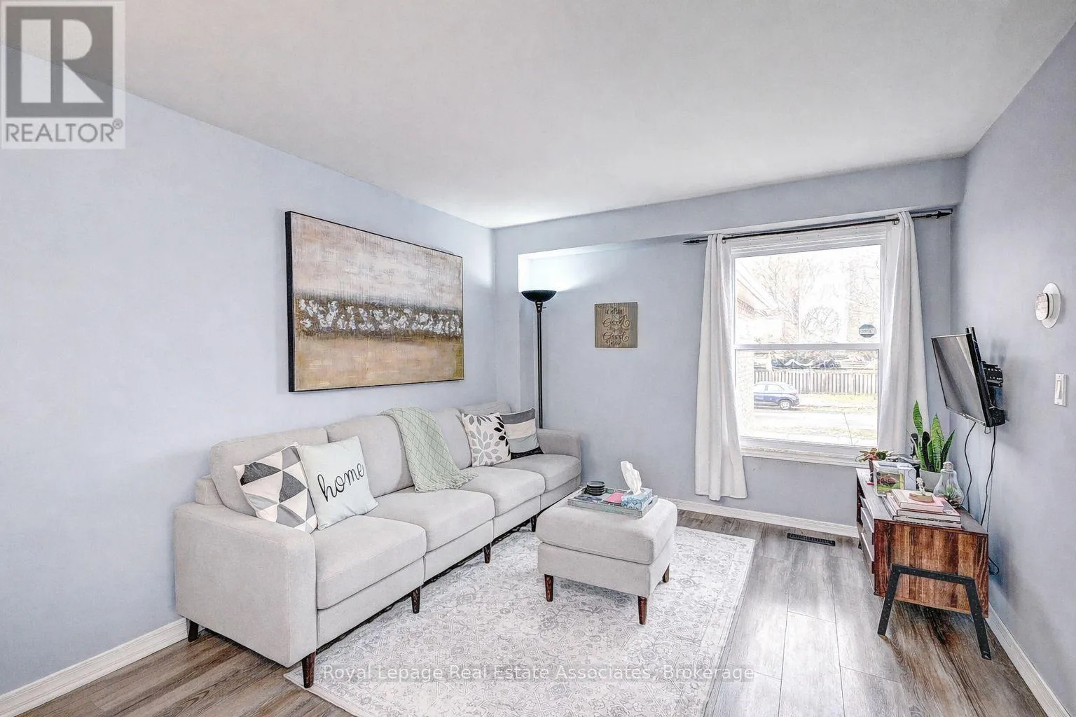 Broom St / Nith River Wy This semi-detached home is located in a quiet, established neighbourhood and offers a large, fully fenced yard. The property is steps from St. Brigid School, Owl Day Care, and within walking distance to Piper's Glen trails and Douglas Park. The home features a newly installed double-wide asphalt driveway and an attached garage. The main level includes a combined living and dining area with large windows, and a galley-style kitchen with patio doors providing access to the rear yard. The backyard offers an interlock patio and mature trees. The upper level includes a primary bedroom with walk-in closet, an additional bedroom, and a 4-piece bathroom. The basement is partially finished with a recreation room, laundry/utility area, and a storage room. Additional features include central air conditioning, water softener, updated vinyl windows, and a rented hot water heater. Conveniently located near Ayr Foodland, local restaurants, parks, and walking trails. (id:27476)