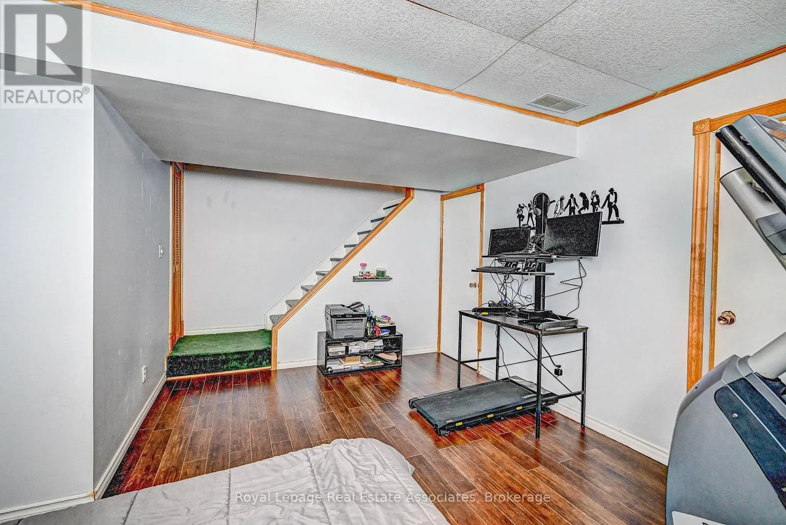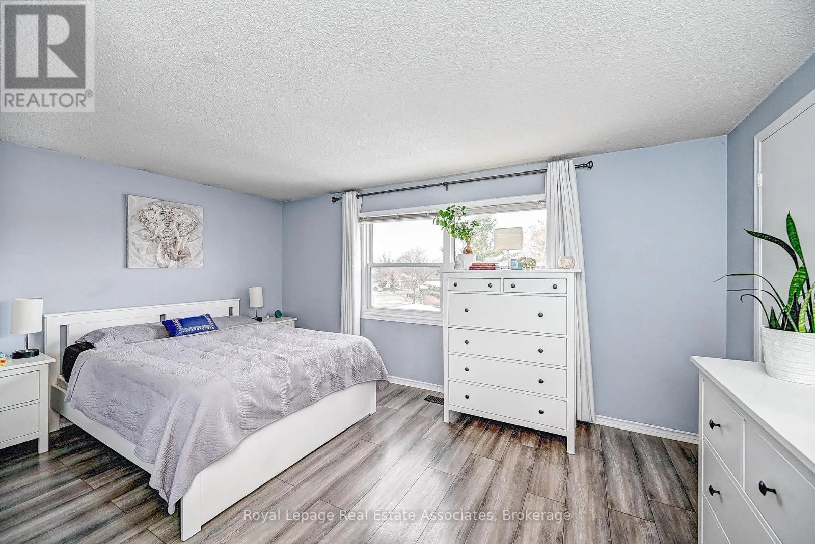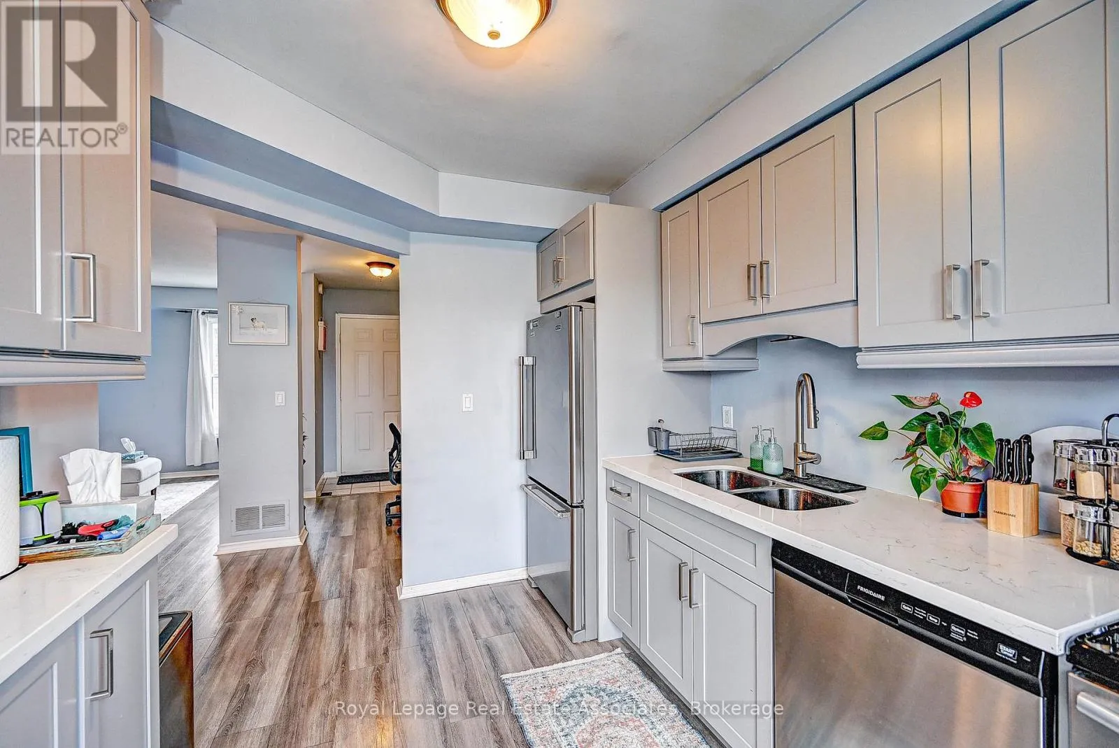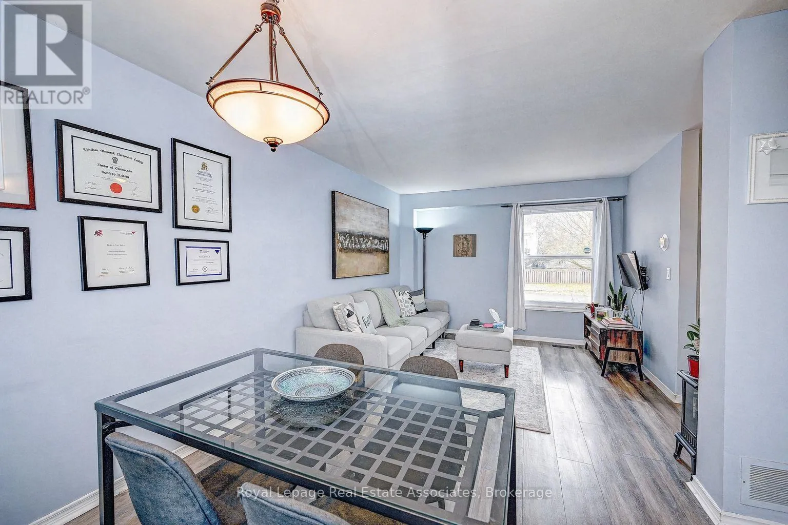 Broom St / Nith River Wy This semi-detached home is located in a quiet, established neighbourhood and offers a large, fully fenced yard. The property is steps from St. Brigid School, Owl Day Care, and within walking distance to Piper's Glen trails and Douglas Park. The home features a newly installed double-wide asphalt driveway and an attached garage. The main level includes a combined living and dining area with large windows, and a galley-style kitchen with patio doors providing access to the rear yard. The backyard offers an interlock patio and mature trees. The upper level includes a primary bedroom with walk-in closet, an additional bedroom, and a 4-piece bathroom. The basement is partially finished with a recreation room, laundry/utility area, and a storage room. Additional features include central air conditioning, water softener, updated vinyl windows, and a rented hot water heater. Conveniently located near Ayr Foodland, local restaurants, parks, and walking trails. (id:27476)