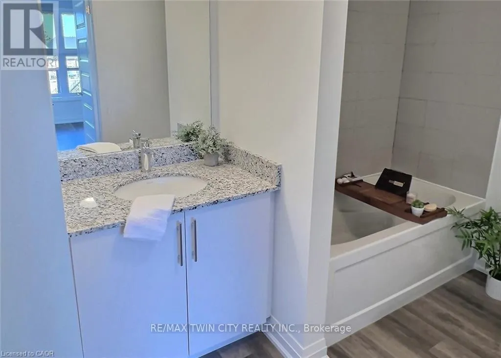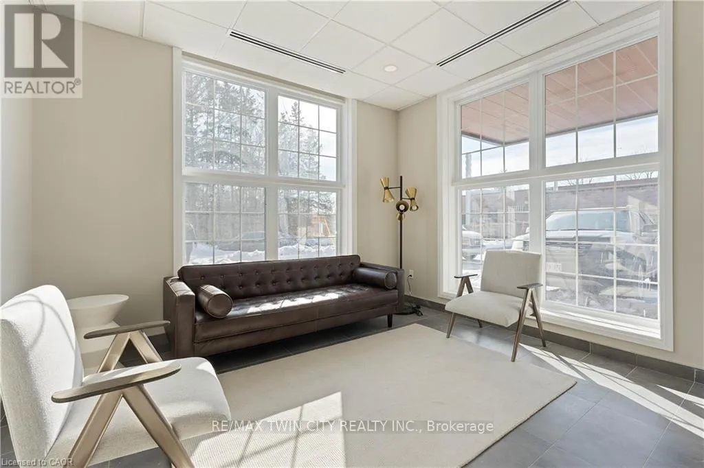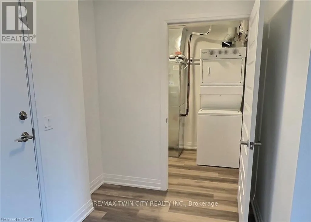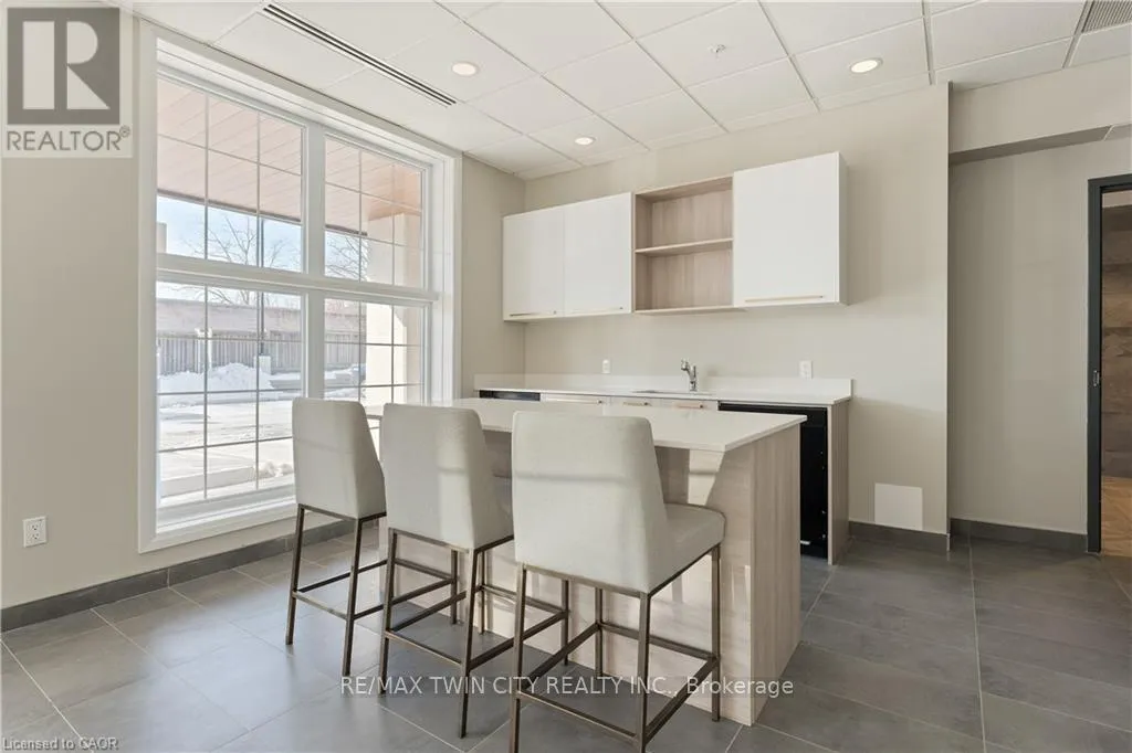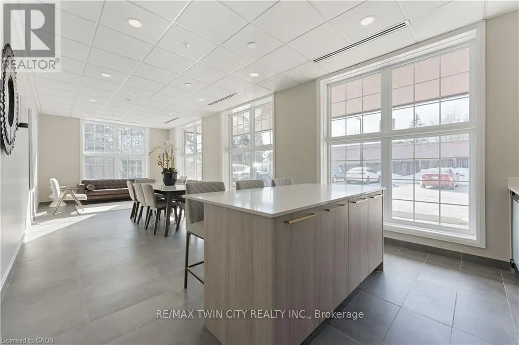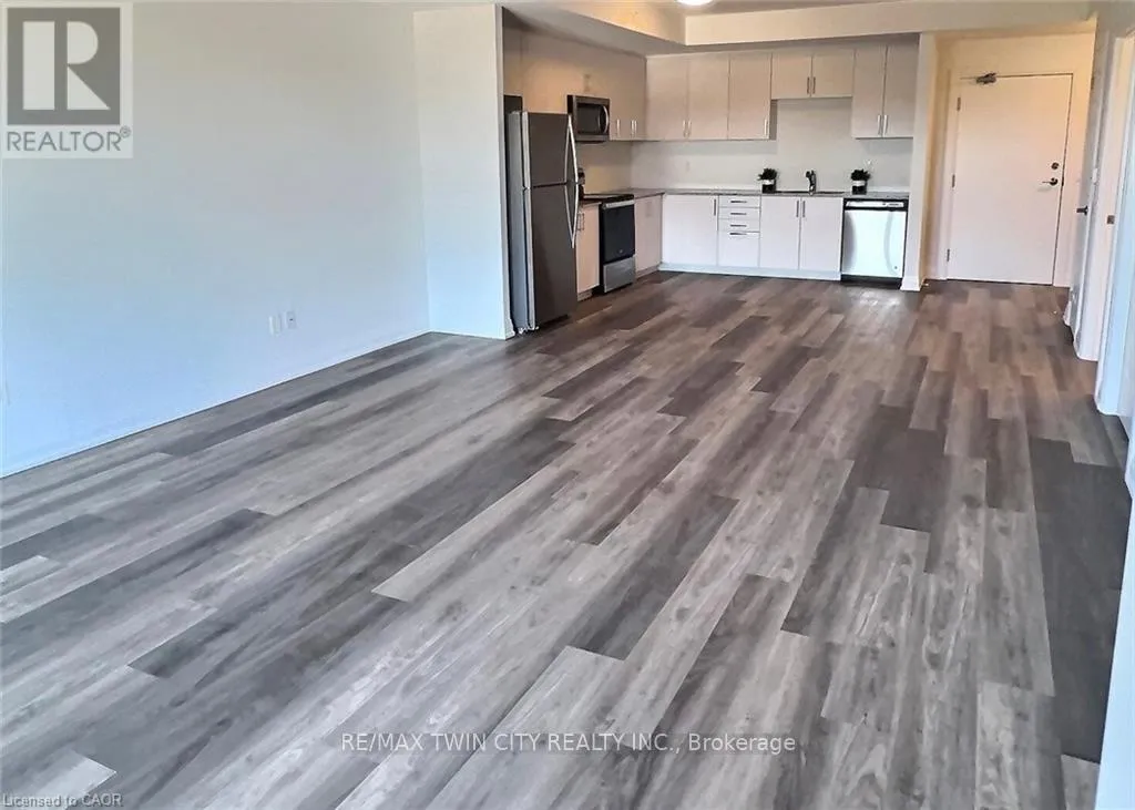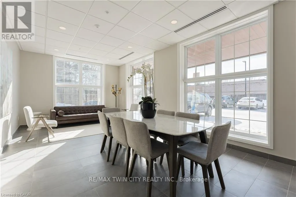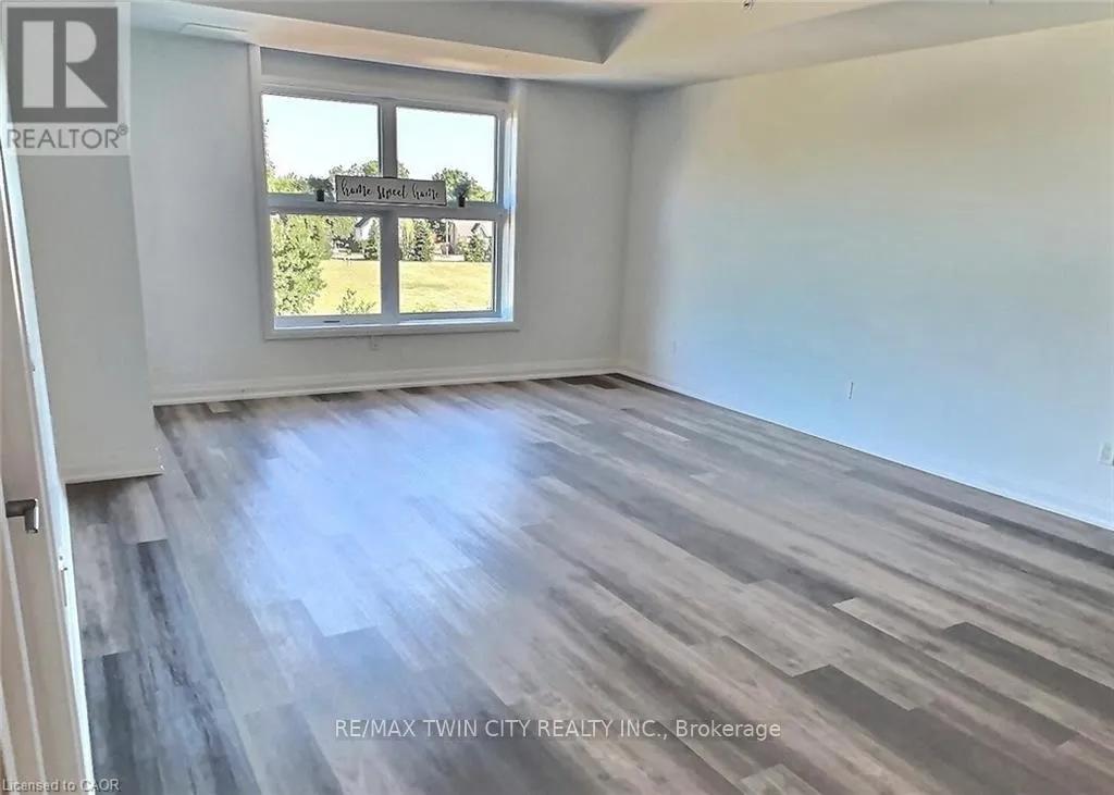 Cross Streets: Northumberland. ** Directions: Northumberland to Gibson. Explore comfortable, modern condo living in the inviting village of Ayr at Piper's Grove, located at 88 Gibson Street. This well-designed MacLean layout is situated on the top (5th) floor and offers 1 bedroom, 1 bathroom, and a bright, open-concept living space with approximately 885 sq ft. The kitchen, dining, and living area is flooded with natural light from large windows and opens onto a spacious private balcony-perfect for enjoying your morning coffee or unwinding at the end of the day. The stylish kitchen features sleek white cabinetry extended to the ceiling, quartz countertops, a neutral backsplash, and ample prep space. Contemporary lighting over the dining area enhances the modern aesthetic. The primary bedroom offers convenient access to a 4-piece bathroom, creating a comfortable and efficient layout. Additional highlights include luxury vinyl plank flooring throughout, in-suite laundry, wide doorways for wheelchair accessibility, and one covered parking space. Residents enjoy a secure building entrance with intercom system, as well as a welcoming main-level amenity room complete with a kitchenette and washroom-ideal for gatherings or entertaining. Located at the end of Gibson Street, this condo is steps from Centennial Park, the Campbell Trail, the Nith River, Watson Pond, and Jedburgh Dam. Enjoy the charm of Ayr's downtown core while benefiting from quick access to Highway 401 and a short drive to Cambridge, Kitchener, Brantford, and Woodstock. (id:27476)