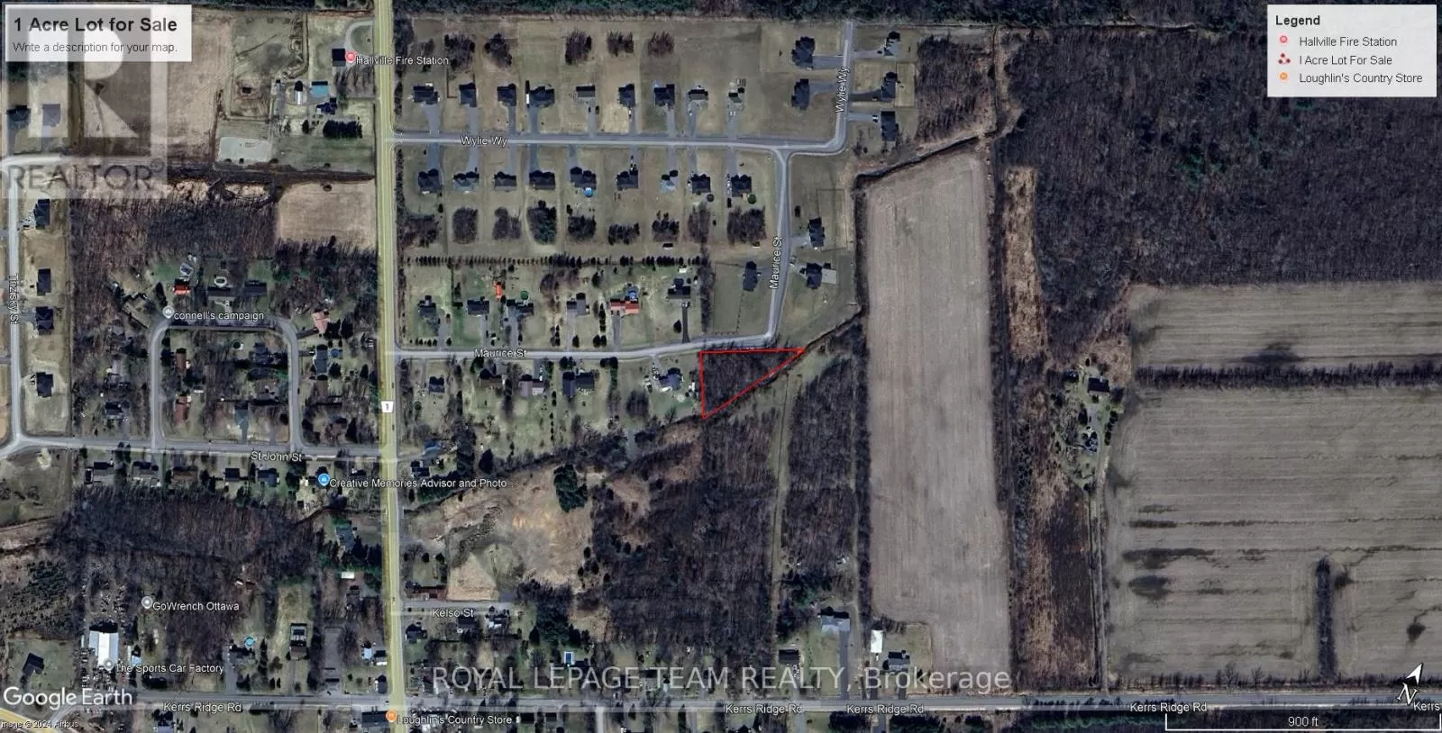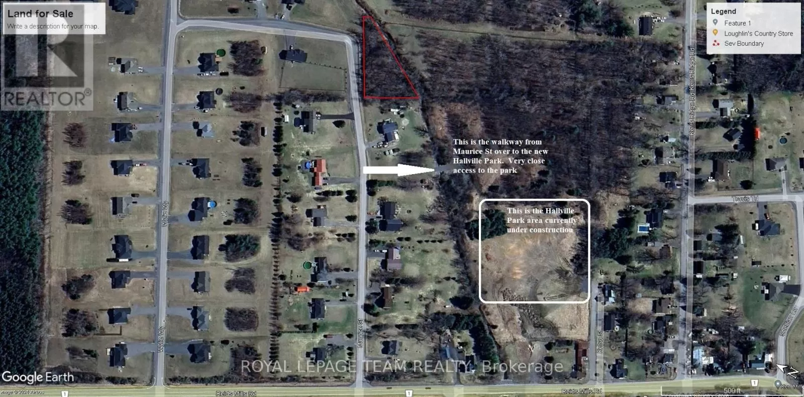 Cross Streets: Reids Mills Rd. ** Directions: Highway 43 to County Rd 1,(Reids Mills Rd.) North to Maurice St. on your right, lot down at the end and on the south side. Private Vacant Wooded Residential LOT For Sale by owner. This approx 1 acre triangular shaped lot is located on Maurice Street in the hamlet of Hallville Ontario[Mountain] in North Dundas Township. North frontage - 355.8 ft; West boundary - 258 ft; South boundary - 435.5 ft; A running Creek is part of the back southern boundary. North Dundas Township has approved a residential zoning for this land parcel for the building of a 4 bedroom home 150m2 = 1,614 sq.ft on this footprint. All documentation will be made available to the purchaser. A Civic address has already been assigned to this lot by township. Included in the purchase price is a new Survey [Oct 2024] along with a North Dundas Township Hydrological Assessment which identifies suggested locations for a well, a septic bed and house placement. The front of the lot is situated on an established paved road. Enjoy the sound of running water from the creek which runs through the back southern part of the property along its entire length. The community Hallville Firehall is close - located only .5 km away. It's a 1 min travel time to Hwy #43, and only 10 min travel time to hwy #416 access. This Lot parcel location does provide a quick 12 min driving time to either Winchester or Kemptville. It's also only a 2 min walk from Maurice St to the newly developed family-friendly Hallville Community Park via the newly installed walking path [laneway] constructed over the Creek. Current annual municipal land tax on this 1 acre property is approx $1200.00. Mere Posting. Serious inquiries: 613 989-2215 (id:27476)