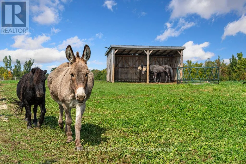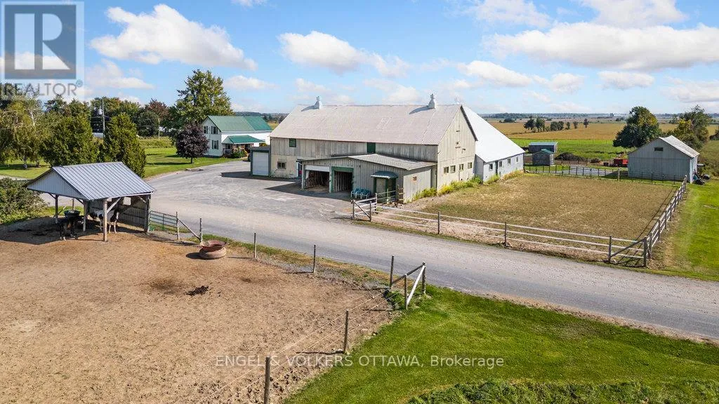 Cross Streets: HWY 31 TO ORMOND. ** Directions: HWY 31 TO ORMOND- PROPERTY ON RIGHT. Discover the perfect blend of rustic charm and modern convenience with this 2-bedroom, 2-bath farmhouse set on 34+ acres. Currently generating over $8,000 in gross revenue each month with options for much more, this property offers both a warm family home and an outstanding agricultural opportunity. The open-concept layout features a cozy family room with a wood stove for chilly evenings, a bright dining room, and a stylish, well-equipped kitchen with brand-new appliances throughout. A dedicated home office provides a quiet, productive space in a serene rural setting.A true horse lovers dream, the property includes a 26-stall barn, tack room, and wash stall, along with multiple paddocks with electric fencing, a riding ring, and a -mile training track. Additional highlights include two decks with breathtaking views, a detached shop with lift for storage or projects, and acres of hay fields with room for cash crops, ensuring agricultural versatility and income potential. Conveniently located just 20 minutes from Rideau Carleton Raceway, this rare offering balances rural tranquility with easy access to city amenities. More than just a home, this is a lifestyle. New Heat pump installed November 2023. (id:27476)