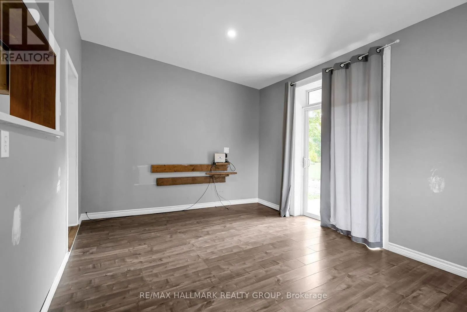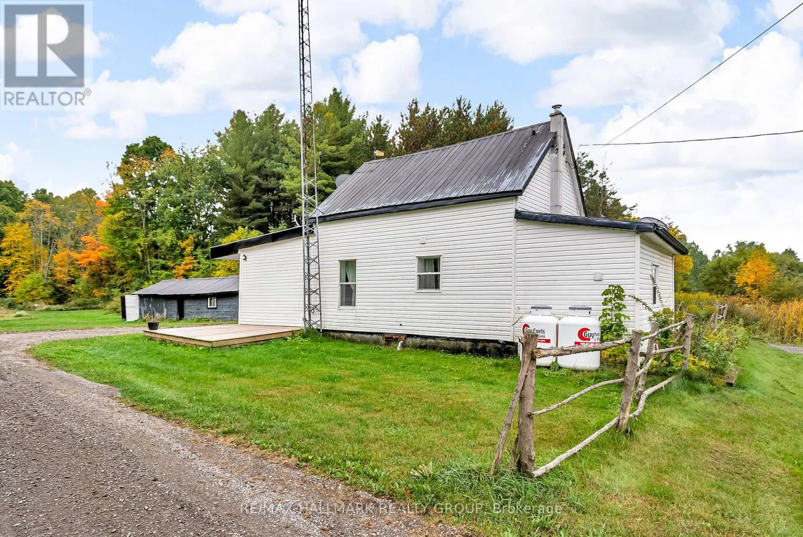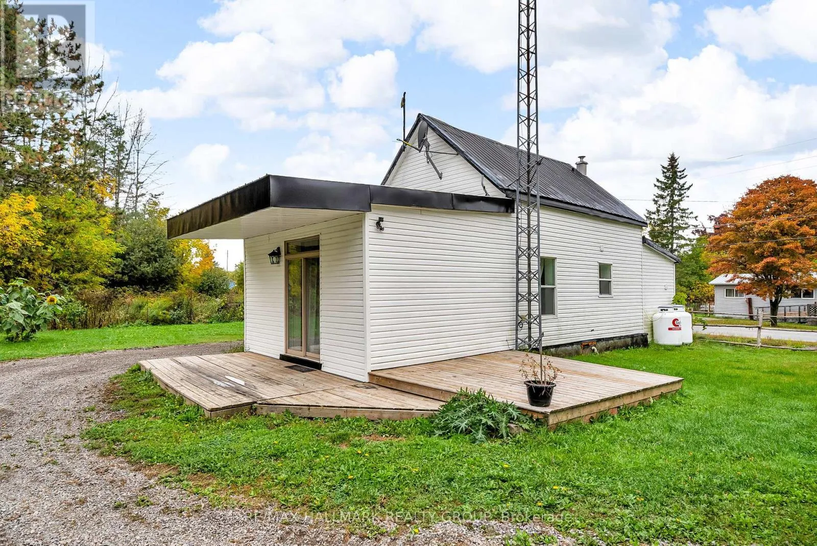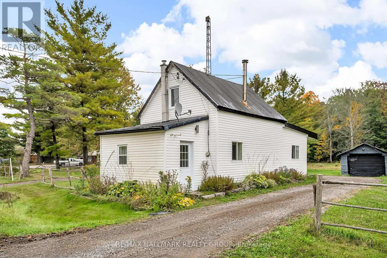 Cross Streets: County Road 1 / Clark Road. ** Directions: County Road 1, turn left on Clark Road. Charming farm style residence boasting a crisp white exterior with contrasting black roof in the quiet village of Mountain, North Dundas. Set on a sprawling 0.98-acre south-facing lot surrounded by nature, the grounds offer plenty of cleared space for gardening or recreation and the soaring trees provide a picturesque backdrop. Bonus detached garage is perfect for the hobbyist! Step inside and be greeted by your foyer and main floor laundry, followed by the dining area with wide plank laminate floors! The L- shaped kitchen features granite counters, ceramic backsplash, and plenty of cabinetry for storage. At the back of the home a spacious family room is a great space for entertainment and leads directly to your wood patio overlooking the backyard. Modern 4pc main bathroom with decorative panelled wall, tile floor, vanity with matte black hardware, and tub/shower with white tile surround. Upstairs is the primary bedroom and 2nd bedroom. More than a home, a quiet lifestyle - book your viewing today! 24 hours irrevocable. (id:27476)