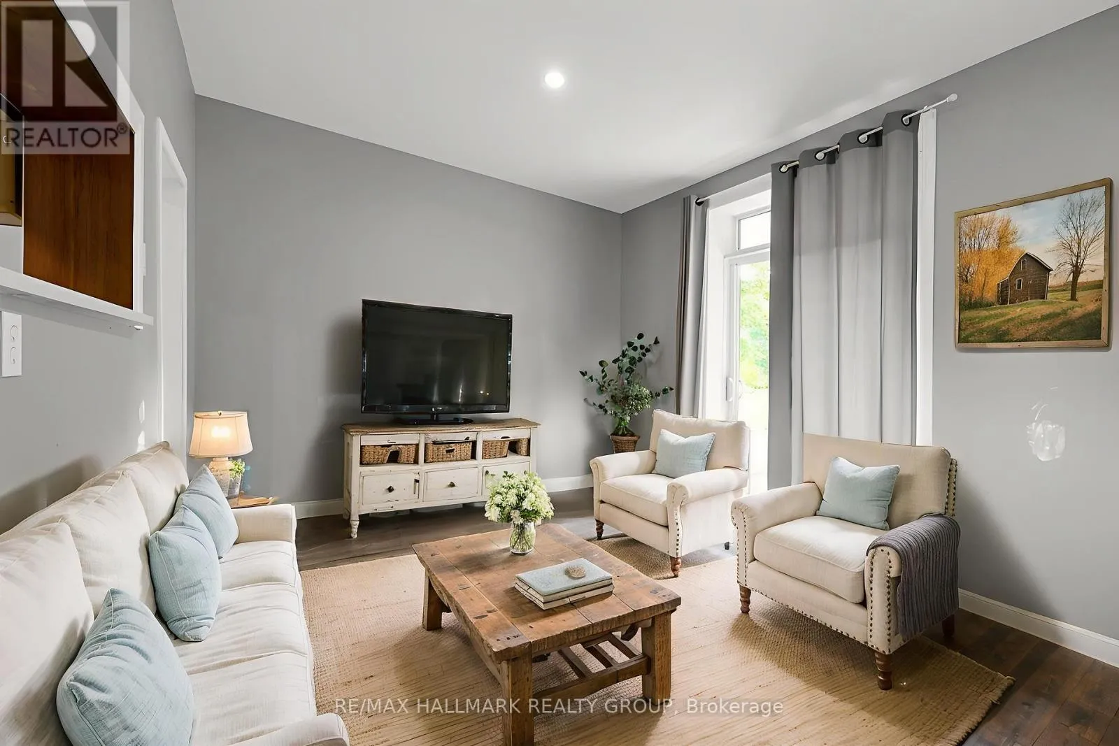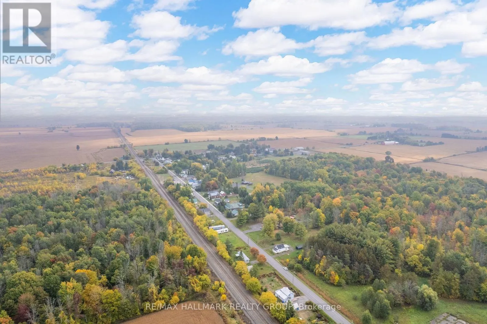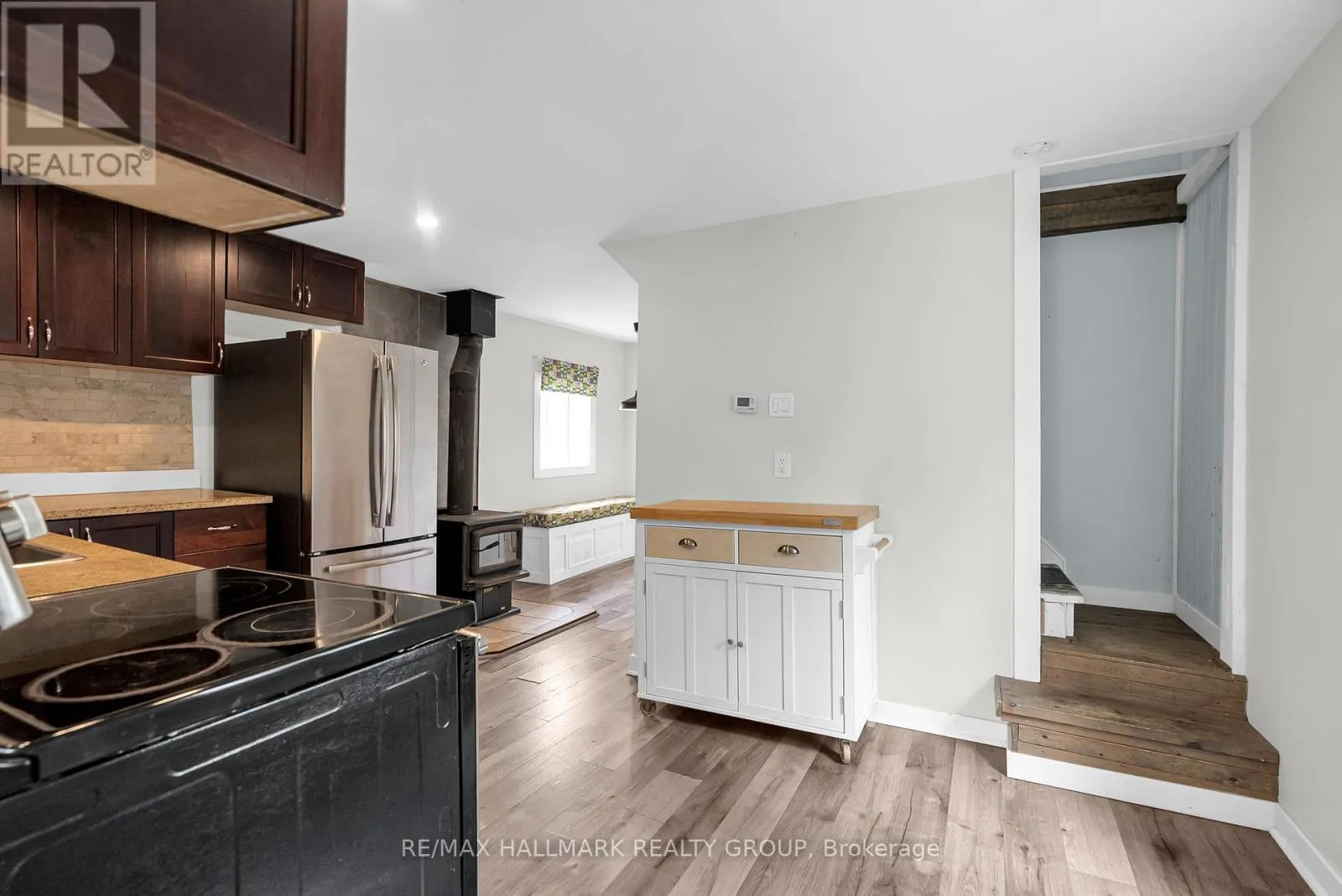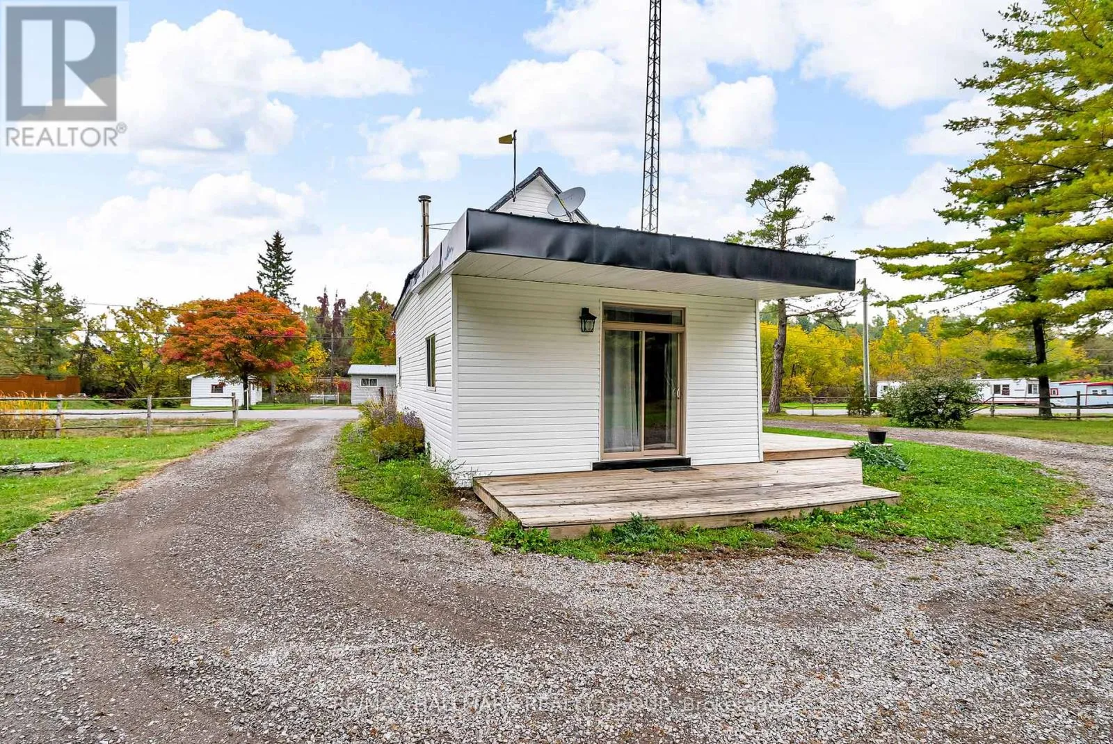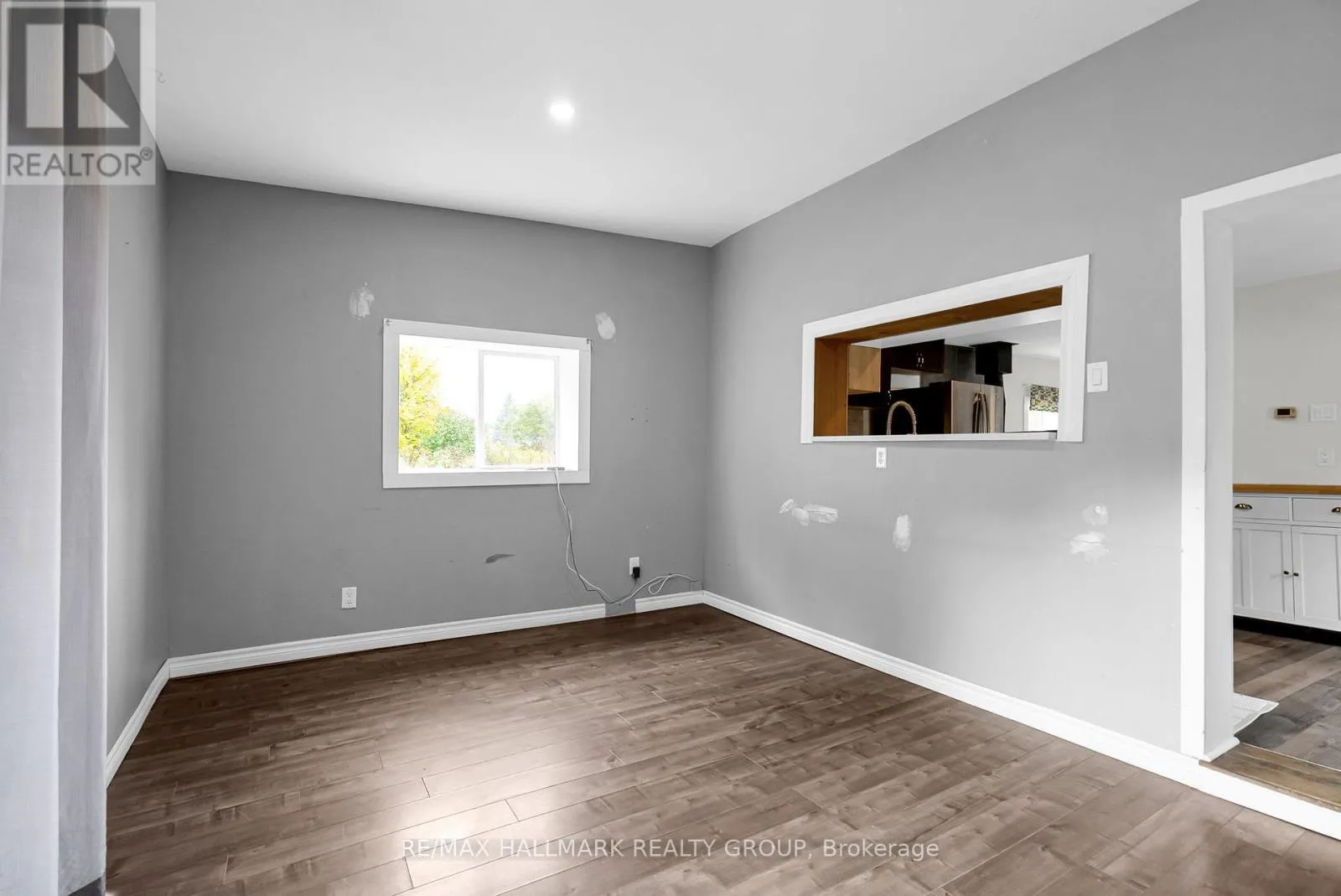 Cross Streets: County Road 1 / Clark Road. ** Directions: County Road 1, turn left on Clark Road. Charming farm style residence boasting a crisp white exterior with contrasting black roof in the quiet village of Mountain, North Dundas. Set on a sprawling 0.98-acre south-facing lot surrounded by nature, the grounds offer plenty of cleared space for gardening or recreation and the soaring trees provide a picturesque backdrop. Bonus detached garage is perfect for the hobbyist! Step inside and be greeted by your foyer and main floor laundry, followed by the dining area with wide plank laminate floors! The L- shaped kitchen features granite counters, ceramic backsplash, and plenty of cabinetry for storage. At the back of the home a spacious family room is a great space for entertainment and leads directly to your wood patio overlooking the backyard. Modern 4pc main bathroom with decorative panelled wall, tile floor, vanity with matte black hardware, and tub/shower with white tile surround. Upstairs is the primary bedroom and 2nd bedroom. More than a home, a quiet lifestyle - book your viewing today! 24 hours irrevocable. (id:27476)