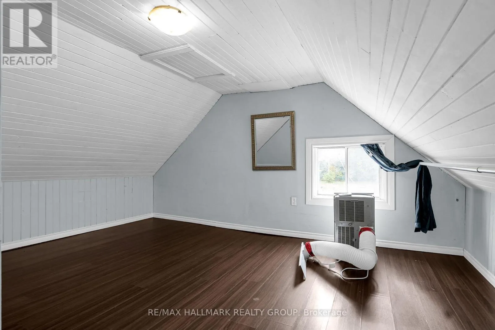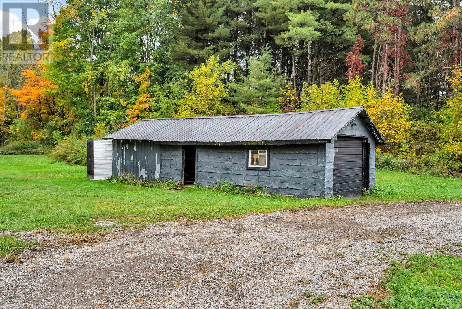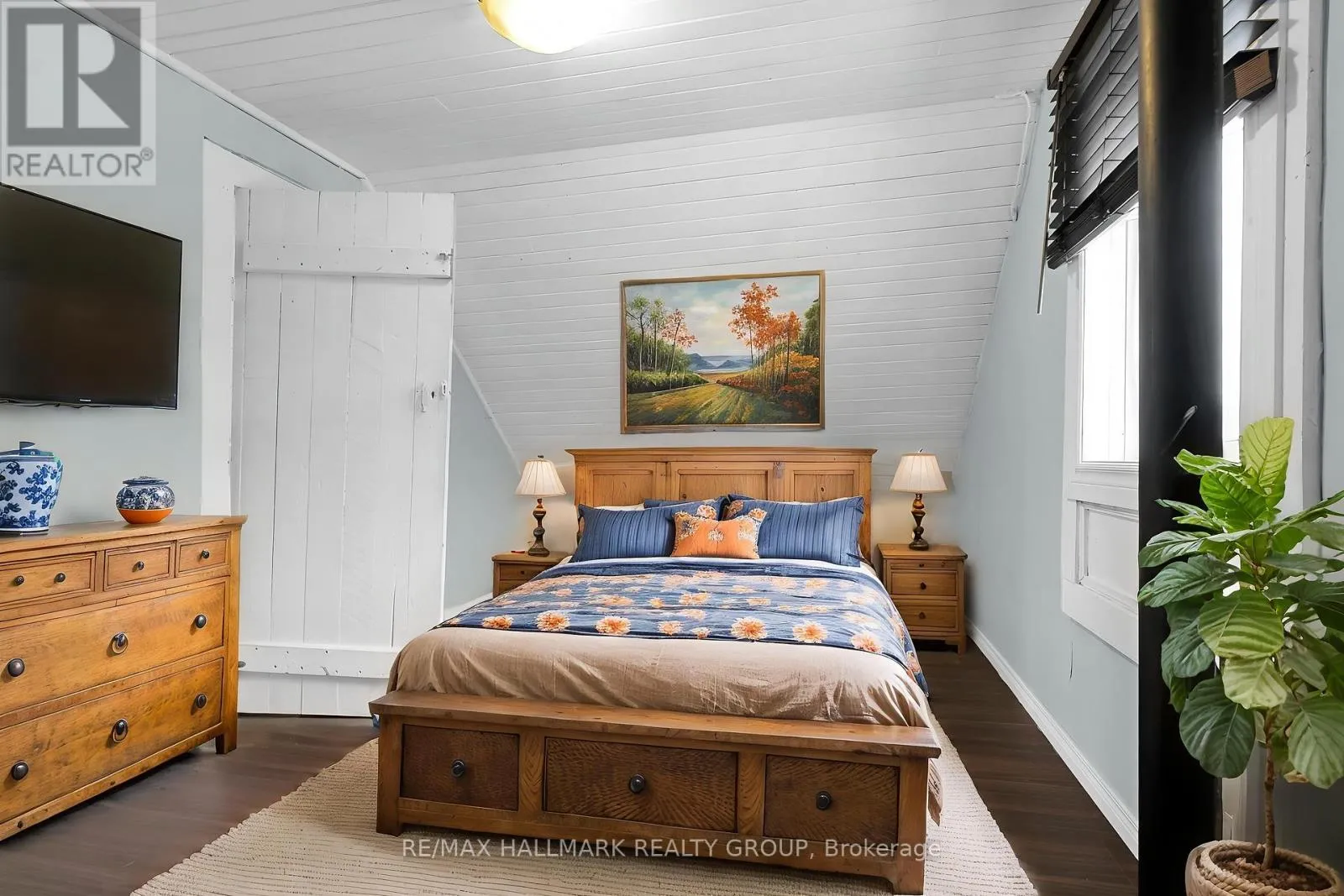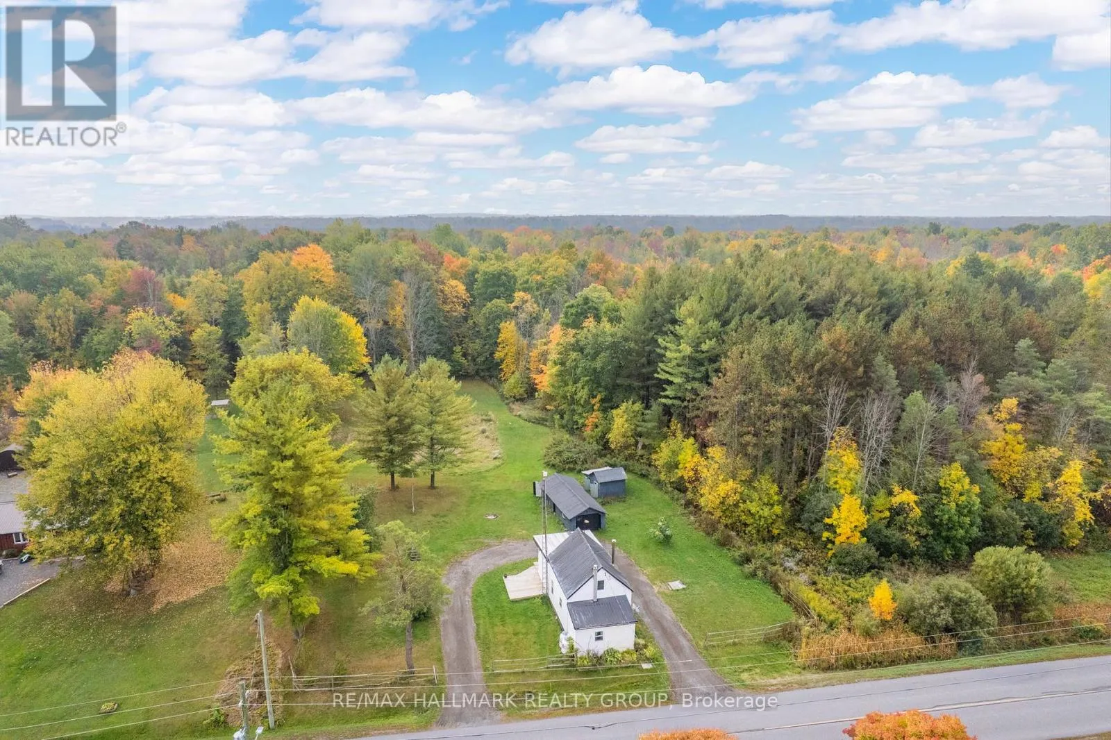 Cross Streets: County Road 1 / Clark Road. ** Directions: County Road 1, turn left on Clark Road. Charming farm style residence boasting a crisp white exterior with contrasting black roof in the quiet village of Mountain, North Dundas. Set on a sprawling 0.98-acre south-facing lot surrounded by nature, the grounds offer plenty of cleared space for gardening or recreation and the soaring trees provide a picturesque backdrop. Bonus detached garage is perfect for the hobbyist! Step inside and be greeted by your foyer and main floor laundry, followed by the dining area with wide plank laminate floors! The L- shaped kitchen features granite counters, ceramic backsplash, and plenty of cabinetry for storage. At the back of the home a spacious family room is a great space for entertainment and leads directly to your wood patio overlooking the backyard. Modern 4pc main bathroom with decorative panelled wall, tile floor, vanity with matte black hardware, and tub/shower with white tile surround. Upstairs is the primary bedroom and 2nd bedroom. More than a home, a quiet lifestyle - book your viewing today! 24 hours irrevocable. (id:27476)