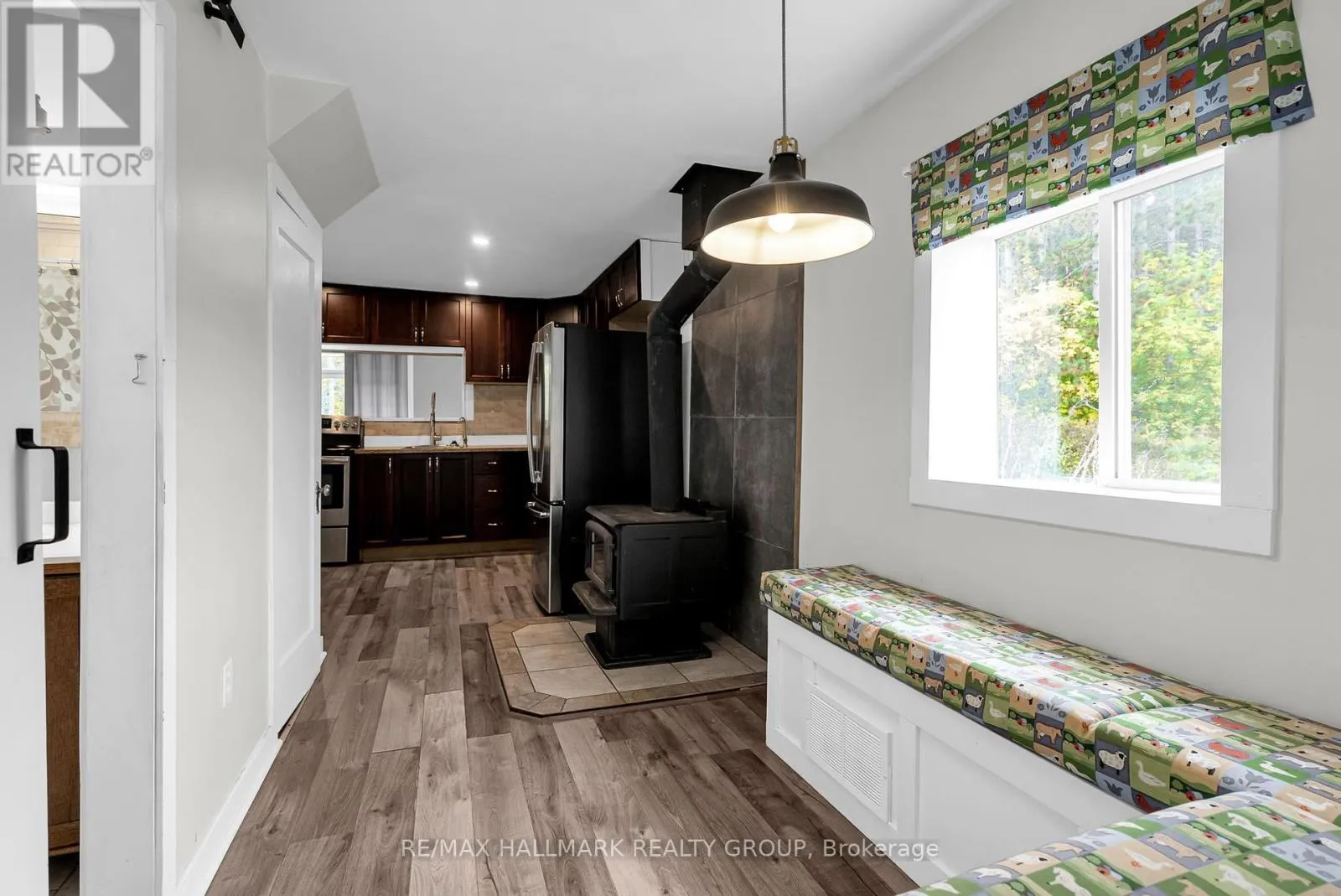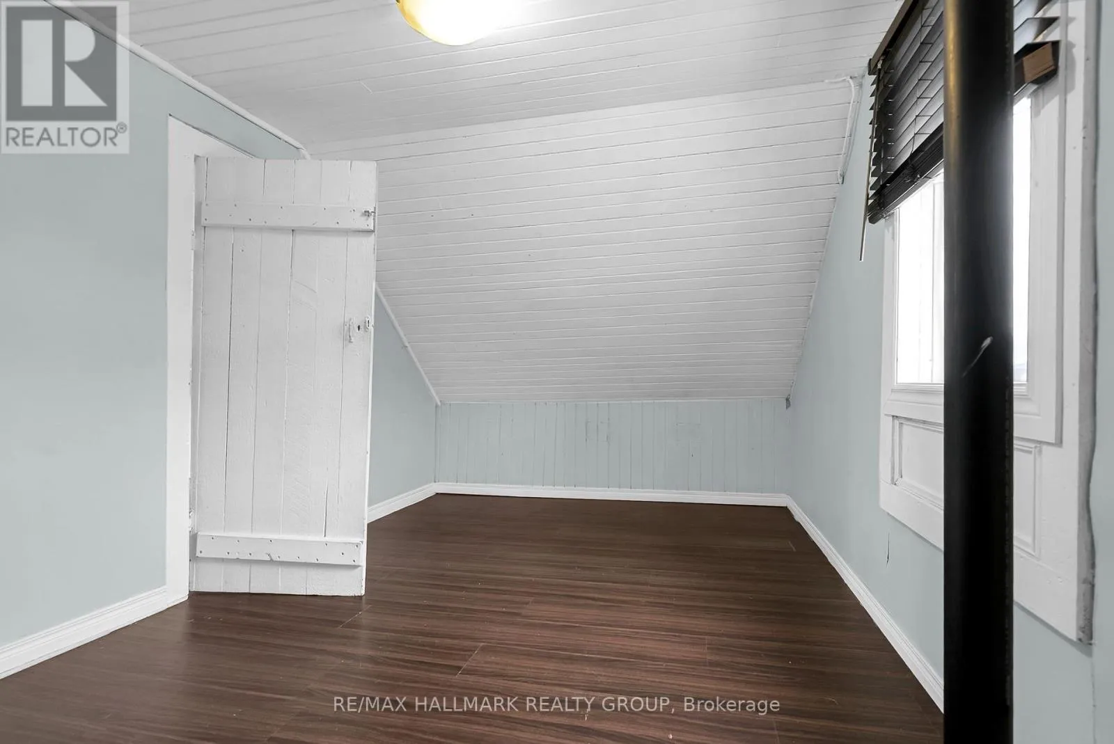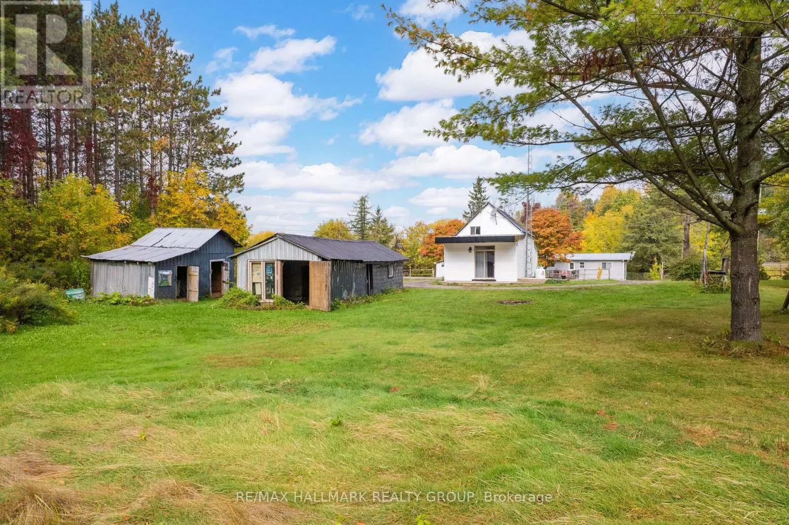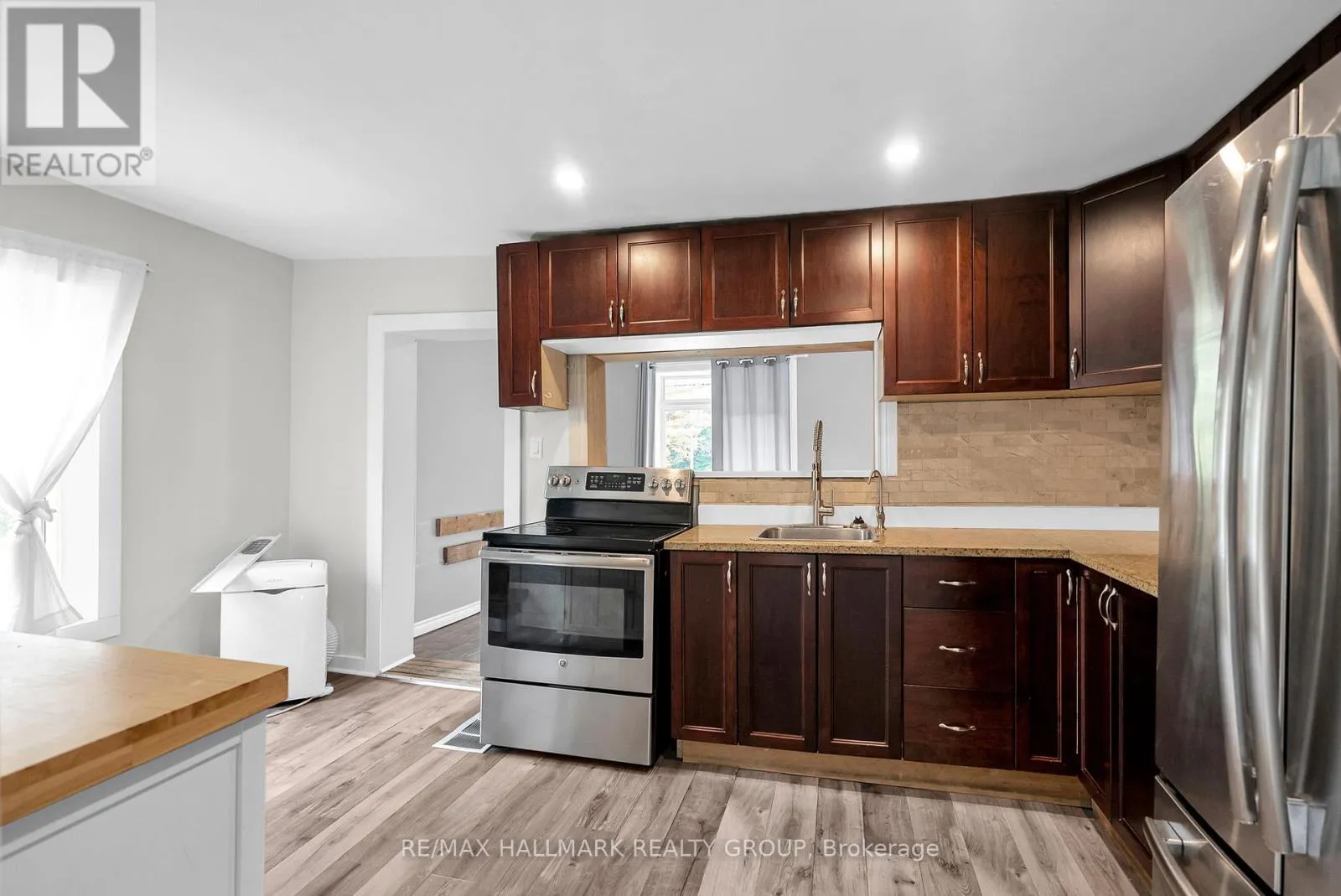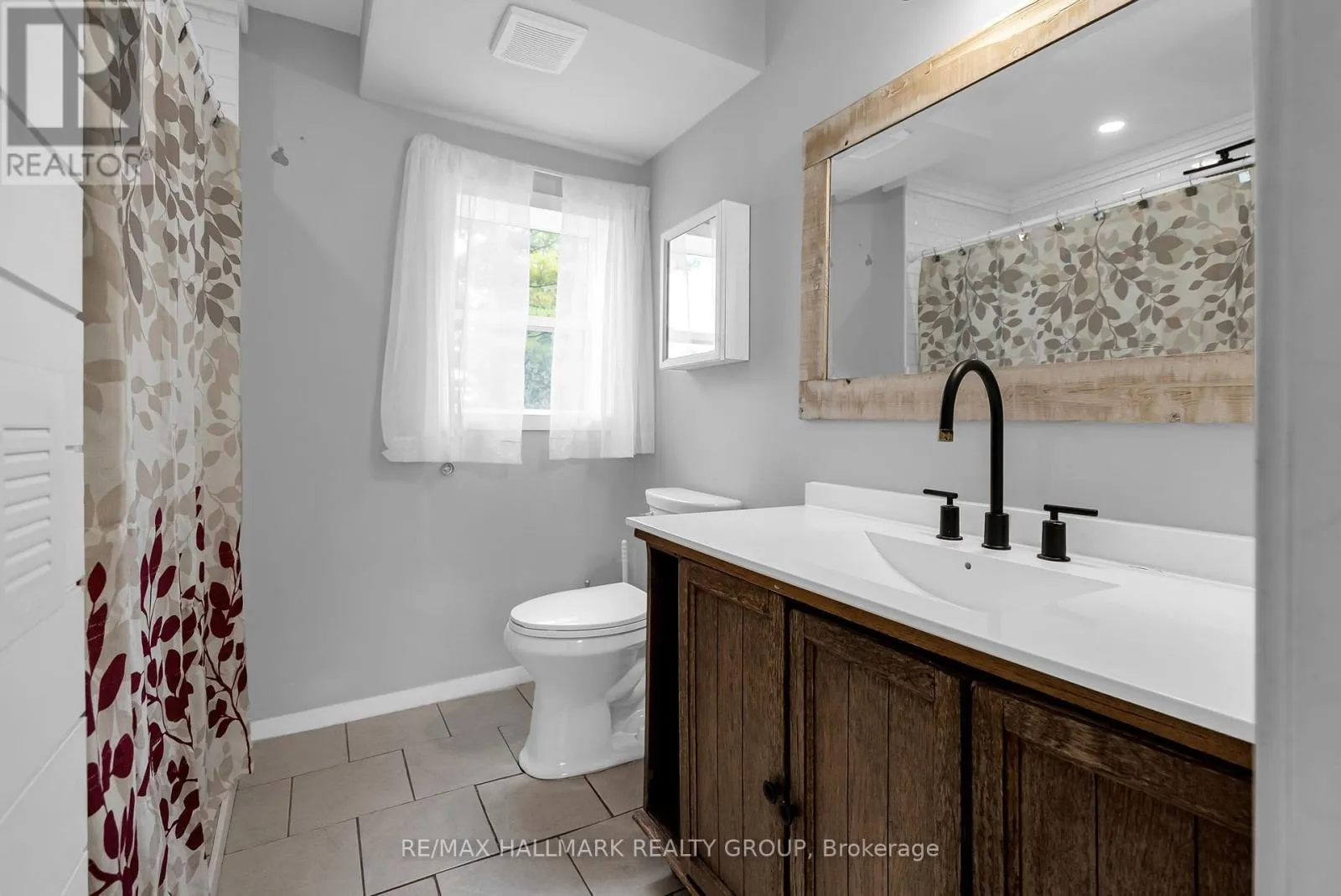 Cross Streets: County Road 1 / Clark Road. ** Directions: County Road 1, turn left on Clark Road. Charming farm style residence boasting a crisp white exterior with contrasting black roof in the quiet village of Mountain, North Dundas. Set on a sprawling 0.98-acre south-facing lot surrounded by nature, the grounds offer plenty of cleared space for gardening or recreation and the soaring trees provide a picturesque backdrop. Bonus detached garage is perfect for the hobbyist! Step inside and be greeted by your foyer and main floor laundry, followed by the dining area with wide plank laminate floors! The L- shaped kitchen features granite counters, ceramic backsplash, and plenty of cabinetry for storage. At the back of the home a spacious family room is a great space for entertainment and leads directly to your wood patio overlooking the backyard. Modern 4pc main bathroom with decorative panelled wall, tile floor, vanity with matte black hardware, and tub/shower with white tile surround. Upstairs is the primary bedroom and 2nd bedroom. More than a home, a quiet lifestyle - book your viewing today! 24 hours irrevocable. (id:27476)