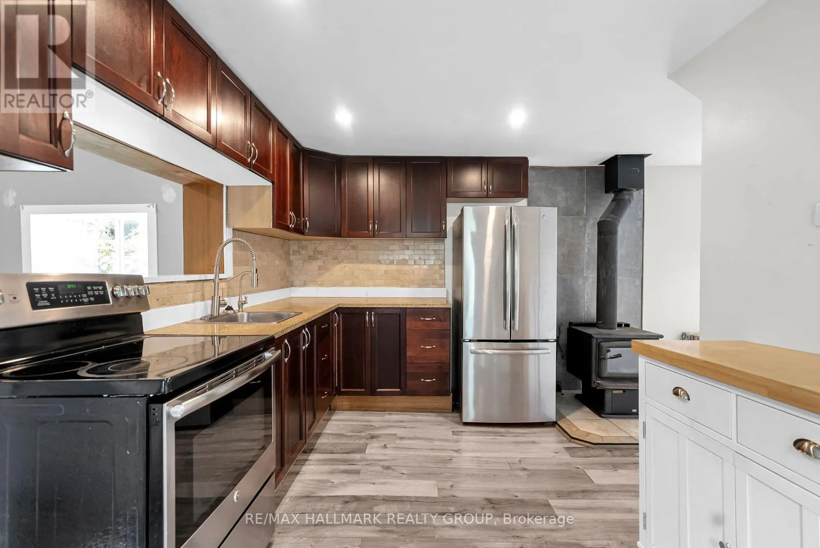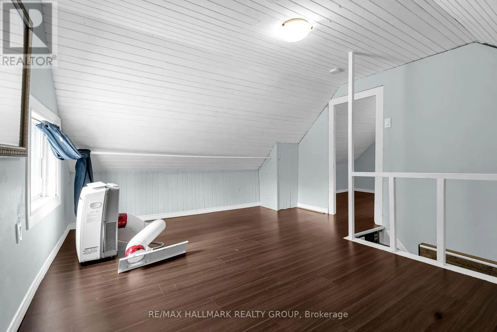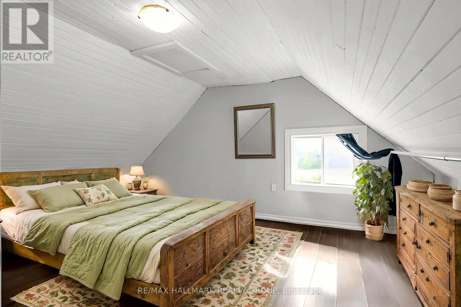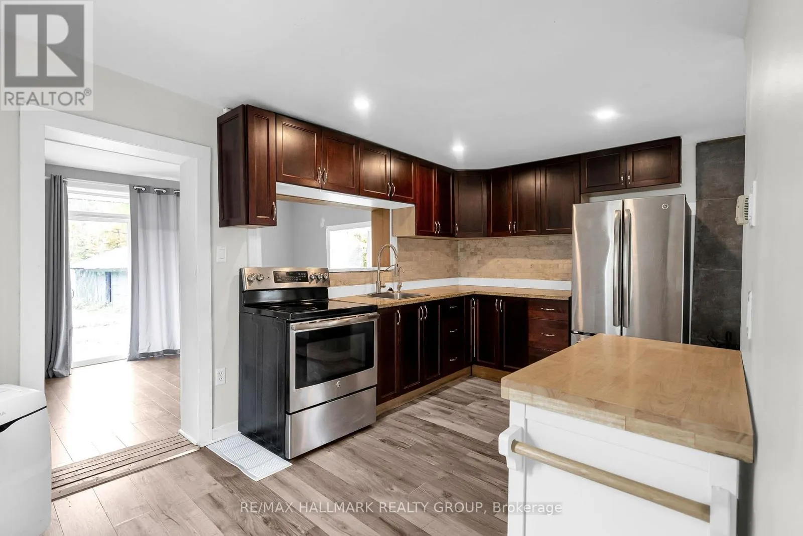 Cross Streets: County Road 1 / Clark Road. ** Directions: County Road 1, turn left on Clark Road. Charming farm style residence boasting a crisp white exterior with contrasting black roof in the quiet village of Mountain, North Dundas. Set on a sprawling 0.98-acre south-facing lot surrounded by nature, the grounds offer plenty of cleared space for gardening or recreation and the soaring trees provide a picturesque backdrop. Bonus detached garage is perfect for the hobbyist! Step inside and be greeted by your foyer and main floor laundry, followed by the dining area with wide plank laminate floors! The L- shaped kitchen features granite counters, ceramic backsplash, and plenty of cabinetry for storage. At the back of the home a spacious family room is a great space for entertainment and leads directly to your wood patio overlooking the backyard. Modern 4pc main bathroom with decorative panelled wall, tile floor, vanity with matte black hardware, and tub/shower with white tile surround. Upstairs is the primary bedroom and 2nd bedroom. More than a home, a quiet lifestyle - book your viewing today! 24 hours irrevocable. (id:27476)