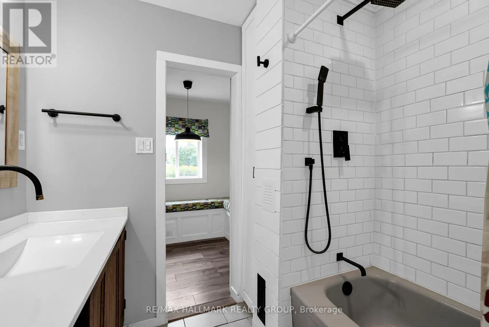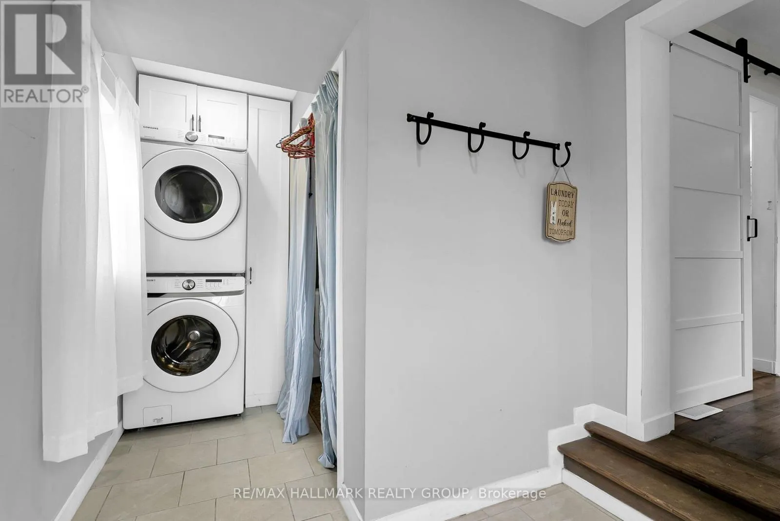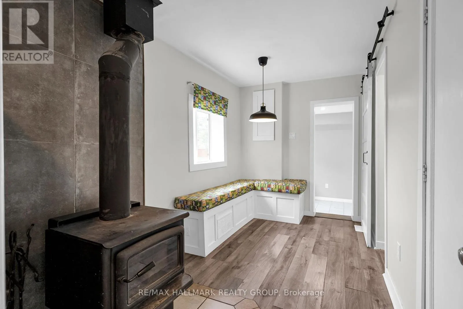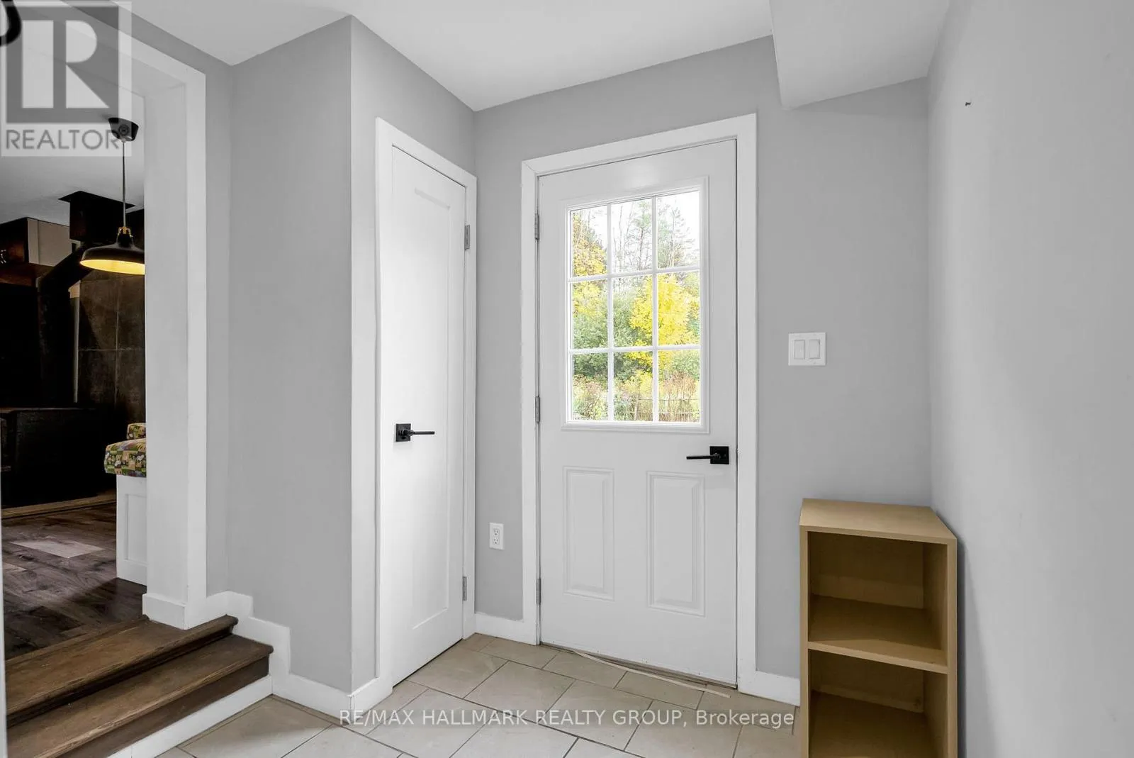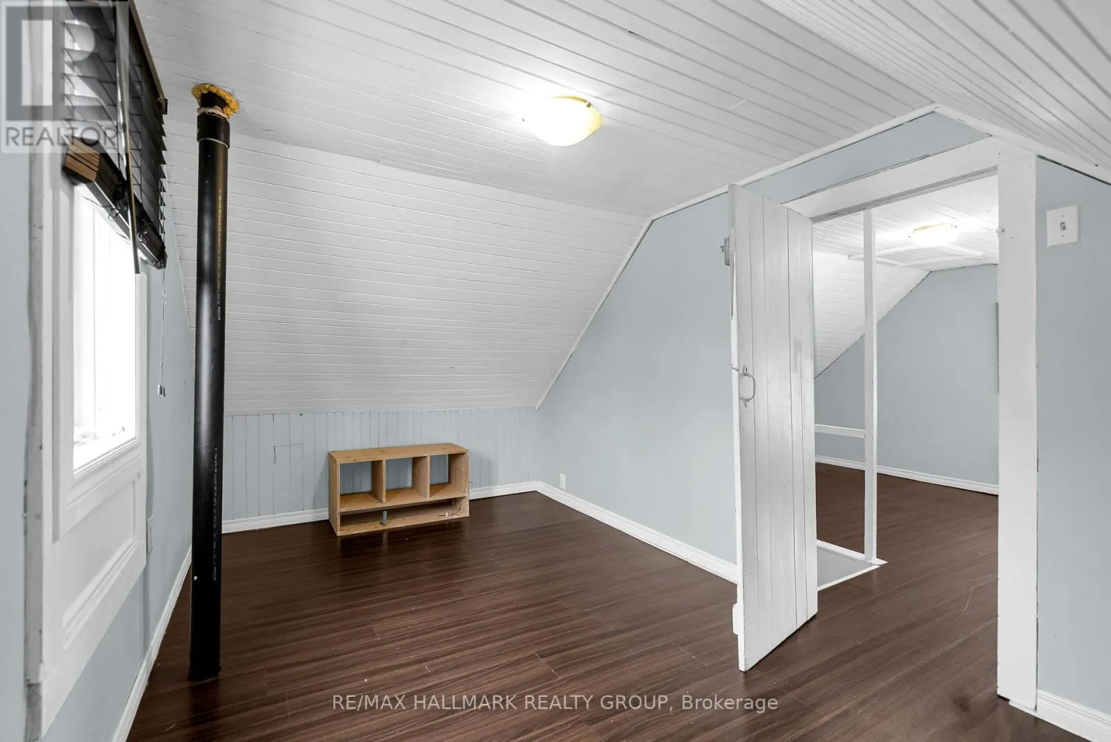 Cross Streets: County Road 1 / Clark Road. ** Directions: County Road 1, turn left on Clark Road. Charming farm style residence boasting a crisp white exterior with contrasting black roof in the quiet village of Mountain, North Dundas. Set on a sprawling 0.98-acre south-facing lot surrounded by nature, the grounds offer plenty of cleared space for gardening or recreation and the soaring trees provide a picturesque backdrop. Bonus detached garage is perfect for the hobbyist! Step inside and be greeted by your foyer and main floor laundry, followed by the dining area with wide plank laminate floors! The L- shaped kitchen features granite counters, ceramic backsplash, and plenty of cabinetry for storage. At the back of the home a spacious family room is a great space for entertainment and leads directly to your wood patio overlooking the backyard. Modern 4pc main bathroom with decorative panelled wall, tile floor, vanity with matte black hardware, and tub/shower with white tile surround. Upstairs is the primary bedroom and 2nd bedroom. More than a home, a quiet lifestyle - book your viewing today! 24 hours irrevocable. (id:27476)