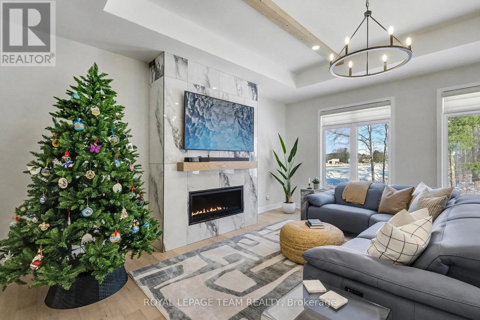 Cross Streets: Hetty St & Trizisky St. ** Directions: From County Road 43, head north onto Reid Mills Rd (County Rd 1), Turn left onto St John Street, Turn right onto Trizisky Street. Home will be on the right. The Sussex in Silver Creek offers a private retreat on 3/4 acre in the peaceful community of Hallville. This turnkey, EnergyStar-certified home by ParkView Homes blends timeless style with modern function in a serene everyday setting. A paved laneway leads to a landscaped front yard with raised gardens and in-ground accent lighting. Inside, the open-concept design features tray ceilings, wide-plank engineered hardwood, and a striking gas fireplace anchoring the living room. The chef-inspired kitchen includes quartz counters, stylish backsplash, stainless steel appliances, large sink, ample storage, and an oversized island perfect for entertaining. A covered porch off the dining area extends living outdoors. A mudroom with garage access and adjacent laundry adds efficiency, while a dedicated office or flex space suits work, study, or hobbies. The primary suite is a true retreat with a spa-like five-piece ensuite featuring a freestanding soaker tub, glass-enclosed shower, and a spacious walk-in closet. Two additional generous bedrooms share a nearby three-piece bath. The lower level offers hardwood flooring and a professionally installed 20' x 12' gym flooring area. Automatic Hunter Douglas blinds, a Generac backup system, and a water treatment system enhance comfort and peace of mind. Outside, the private backyard is designed for relaxation, featuring a large hot tub with lounger, lush greenery, apple, pear, and evergreen trees, perennial gardens, and rose bushes. Elegant wrought-iron fencing on three sides with chain-link along the tree line adds privacy. A professionally designed Amish-style shed with lean-to provides ample storage, complementing the attached two-car garage. Custom Gemstone permanent decorative lighting highlights the exterior, offering beauty and year-round curb appeal. This exceptional property delivers refined living, thoughtful design, and a tranquil country setting - truly a place to call home. (id:27476)