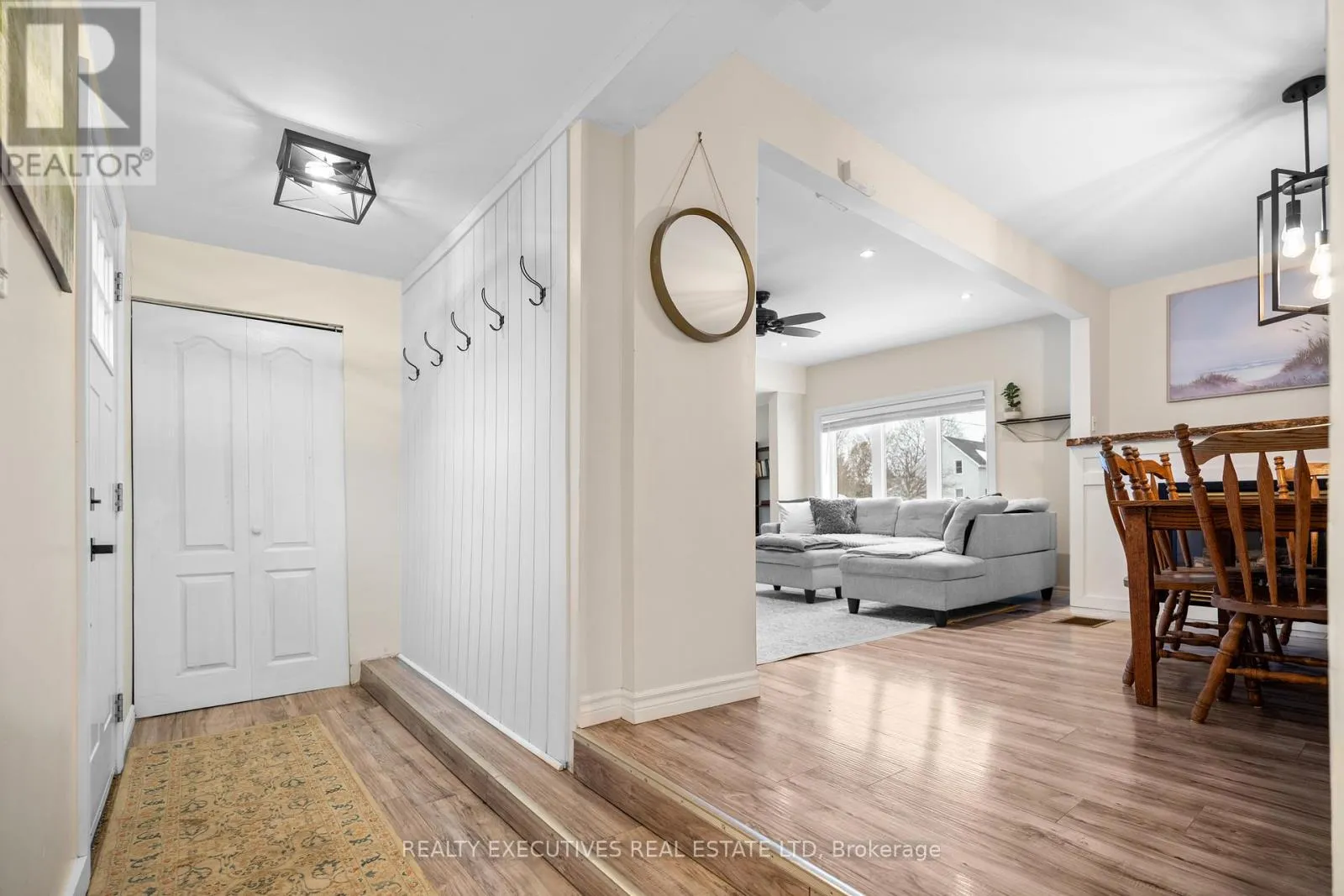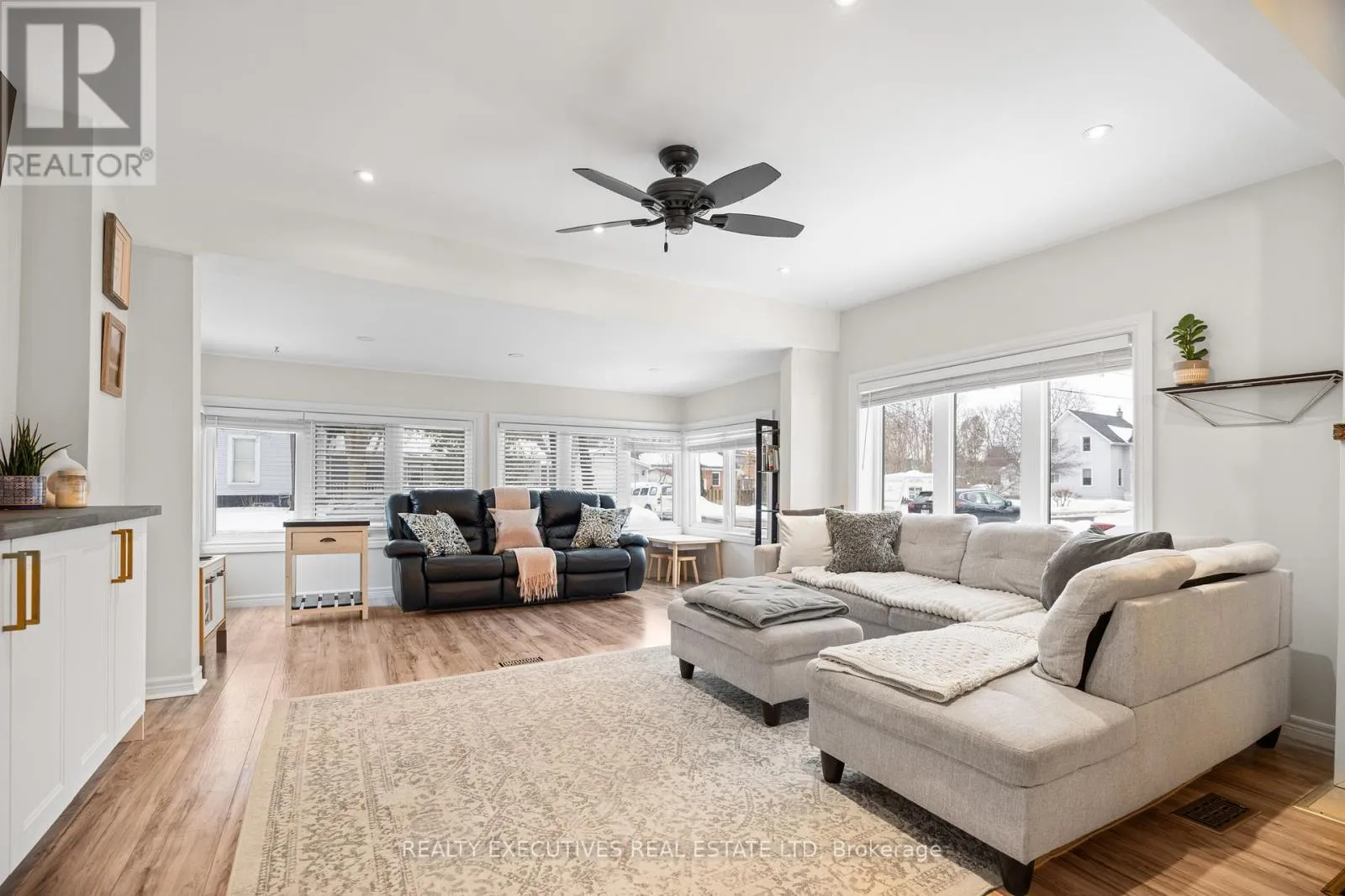 Cross Streets: Gladstone & Main Street, Winchester. ** Directions: Highway 31 to Winchester; Winchester Main Street to Gladstone. Charming Home in the Heart of a Quaint Small Town - Welcome to this delightful starter home or retirement retreat, perfectly nestled in a friendly community where small-town charm meets everyday convenience. Just a short stroll from local shops, schools, the library, a scenic park, and the arena, this home offers the perfect blend of comfort and accessibility. Step inside to an inviting open-concept living and dining area, where abundant natural light creates a warm and welcoming atmosphere. The dining space is enhanced by sleek new cabinetry and a cozy gas fireplace, setting the perfect scene for family gatherings and quiet evenings alike. The newly updated kitchen boasts stylish cabinetry and a functional layout, making meal prep effortless and enjoyable. Designed for easy main-floor living, this home features a ground-floor bedroom, laundry, and a full bathroom ideal for those looking for accessibility and convenience. Upstairs, you'll find a spacious primary bedroom, a second bedroom, and a charming 3-piece washroom, offering a comfortable retreat for family or guests. Outside, enjoy the private side yard, perfect for relaxing afternoons, gardening, or outdoor entertaining. Whether you're looking to downsize or start fresh, this home offers the best of small-town living while being just 40 minutes from both Ottawa and Cornwall a fantastic location for commuters or those seeking a peaceful lifestyle with city conveniences nearby. Don't miss this wonderful opportunity to call this charming house your home! 24 Hour Irrevocable Required on all Offers. (id:27476)