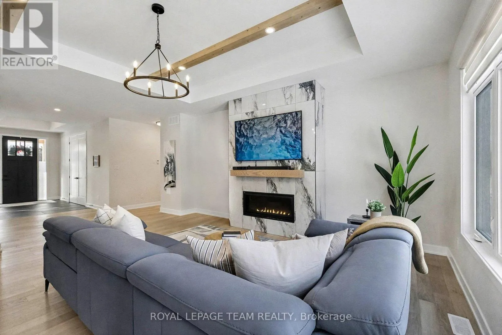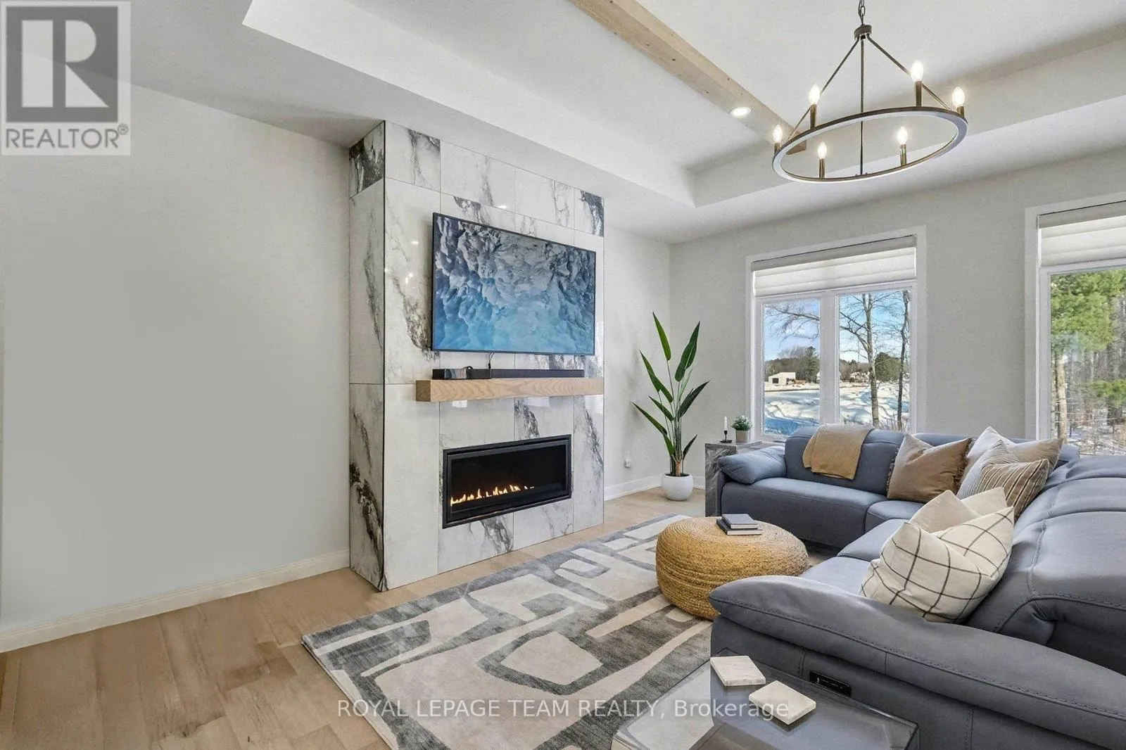Cross Streets: Hetty St & Trizisky St. ** Directions: From County Road 43, head north onto Reid Mills Rd (County Rd 1),Turn left onto St John Street, Turn right onto Trizisky Street. Home will be on the right. The Sussex in Silver Creek offers a private retreat on 3/4 acre in the peaceful community of Hallville. This turnkey, EnergyStar-certified home by ParkView Homes blends timeless style with modern function in a serene everyday setting. A paved laneway leads to a landscaped front yard with raised gardens and in-ground accent lighting. Inside, the open-concept design features tray ceilings, wide-plank engineered hardwood, and a striking gas fireplace anchoring the living room. The chef-inspired kitchen includes quartz counters, stylish backsplash, stainless steel appliances, large sink, ample storage, and an oversized island perfect for entertaining. A covered porch off the dining area extends living out doors. A mudroom with garage access and adjacent laundry adds efficiency, while a dedicated office or flex space suits work, study, or hobbies. The primary suite is a true retreat with a spa-like five-piece ensuite featuring a freestanding soaker tub, glass-enclosed shower, and a spacious walk-in closet. Two additional generous bedrooms share a nearby three-piece bath. The lower level offers hardwood flooring and a professionally installed 20' x 12' gym flooring area. Automatic Hunter Douglas blinds, a Generac backup system, and a water treatment system enhance comfort and peace of mind. Outside, the private backyard is designed for relaxation, featuring a large hot tub with lounger, lush greenery, apple, pear, and evergreen trees, perennial gardens, and rose bushes. Elegant wrought-iron fencing on three sides with chain-link along the tree line adds privacy. A professionally designed Amish-style shed with lean-to provides ample storage, complementing the attached two-car garage. Custom Gemstone permanent decorative lighting highlights the exterior, offering beauty and year-round curb appeal. This exceptional property delivers refined living, thoughtful design, and a tranquil country setting - truly a place to call home. (id:27476)