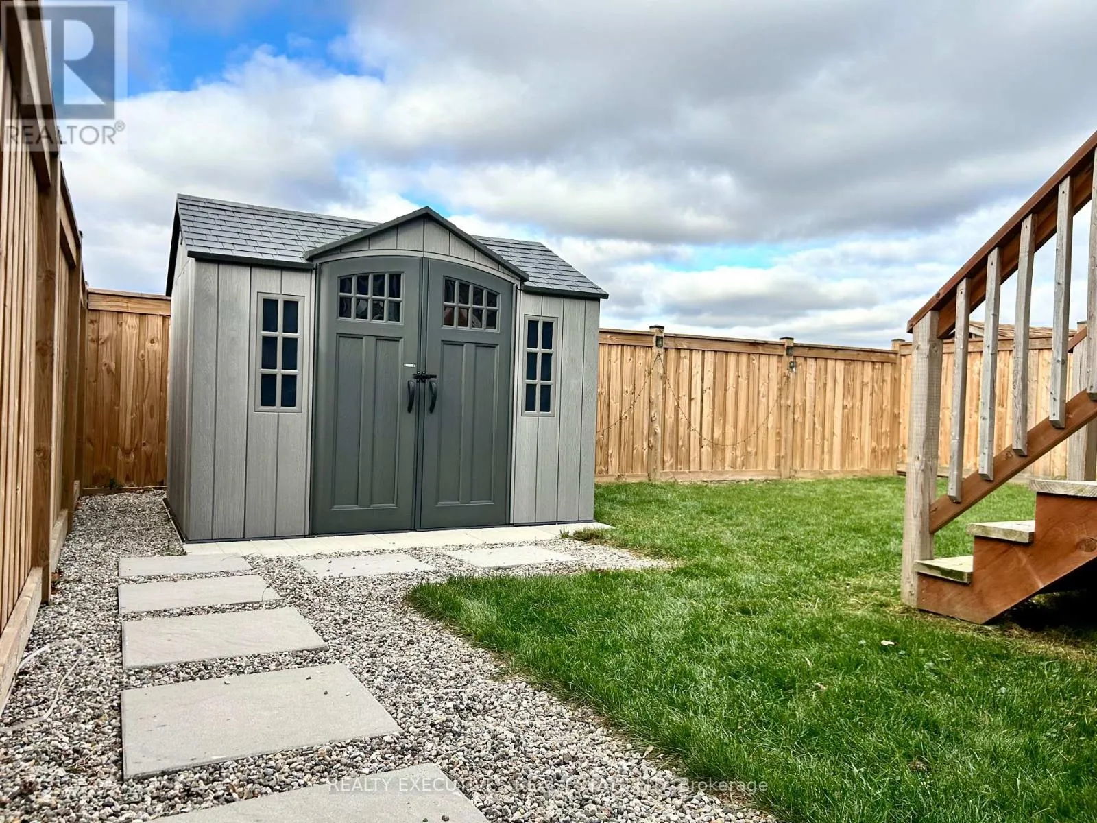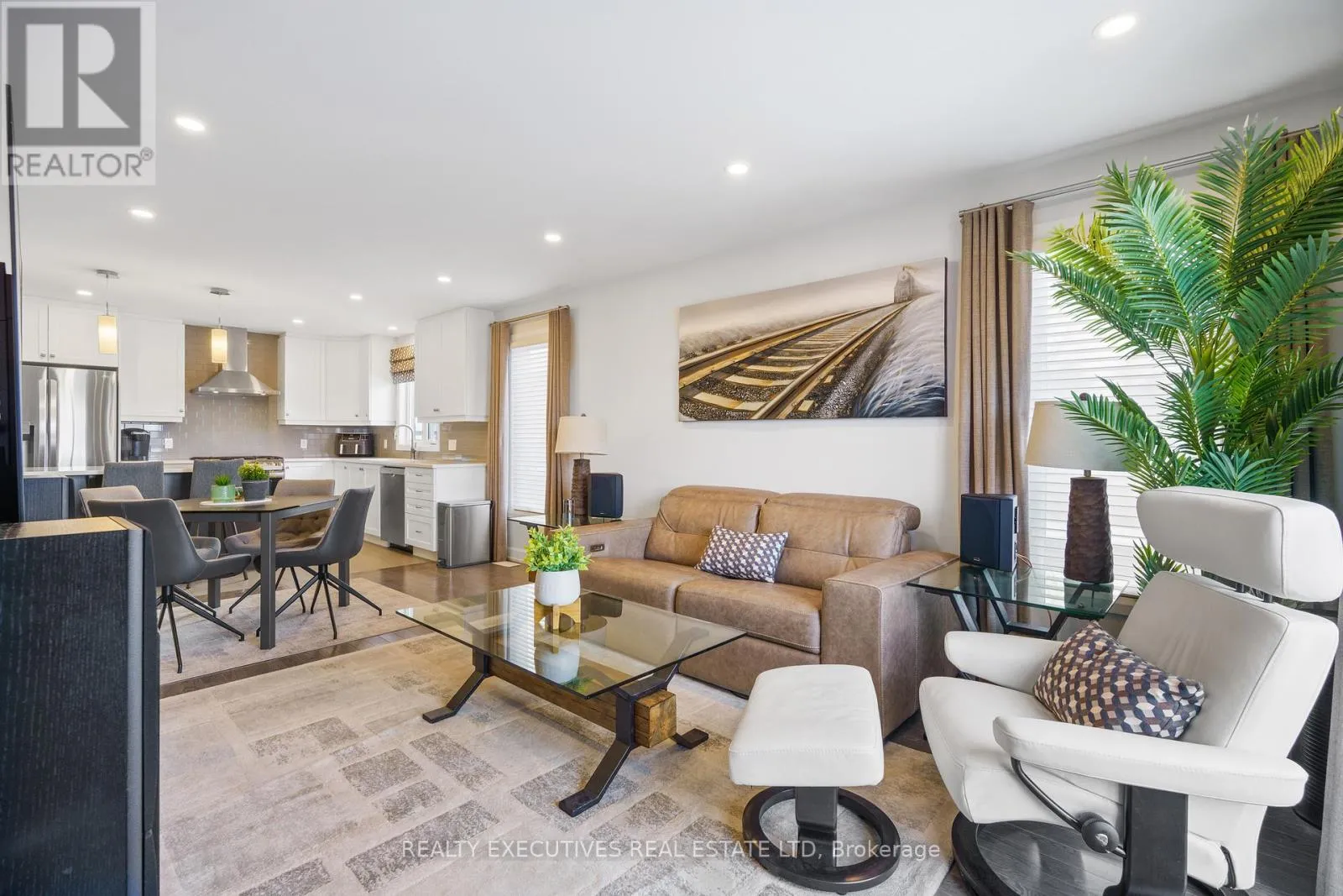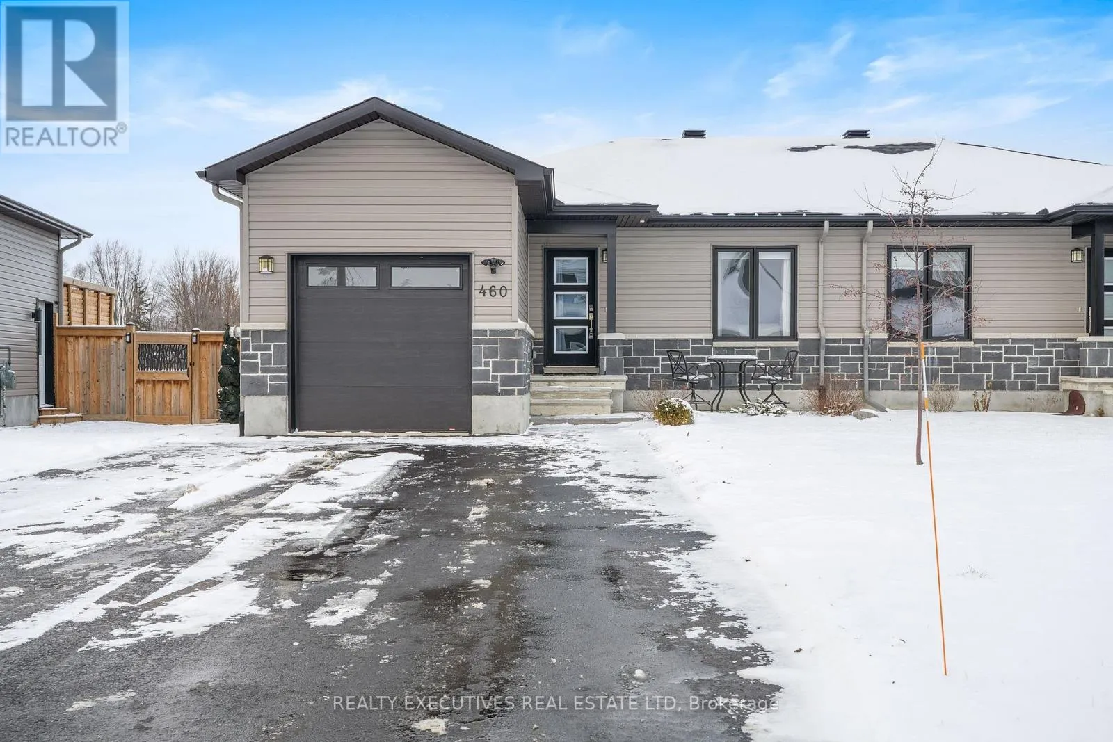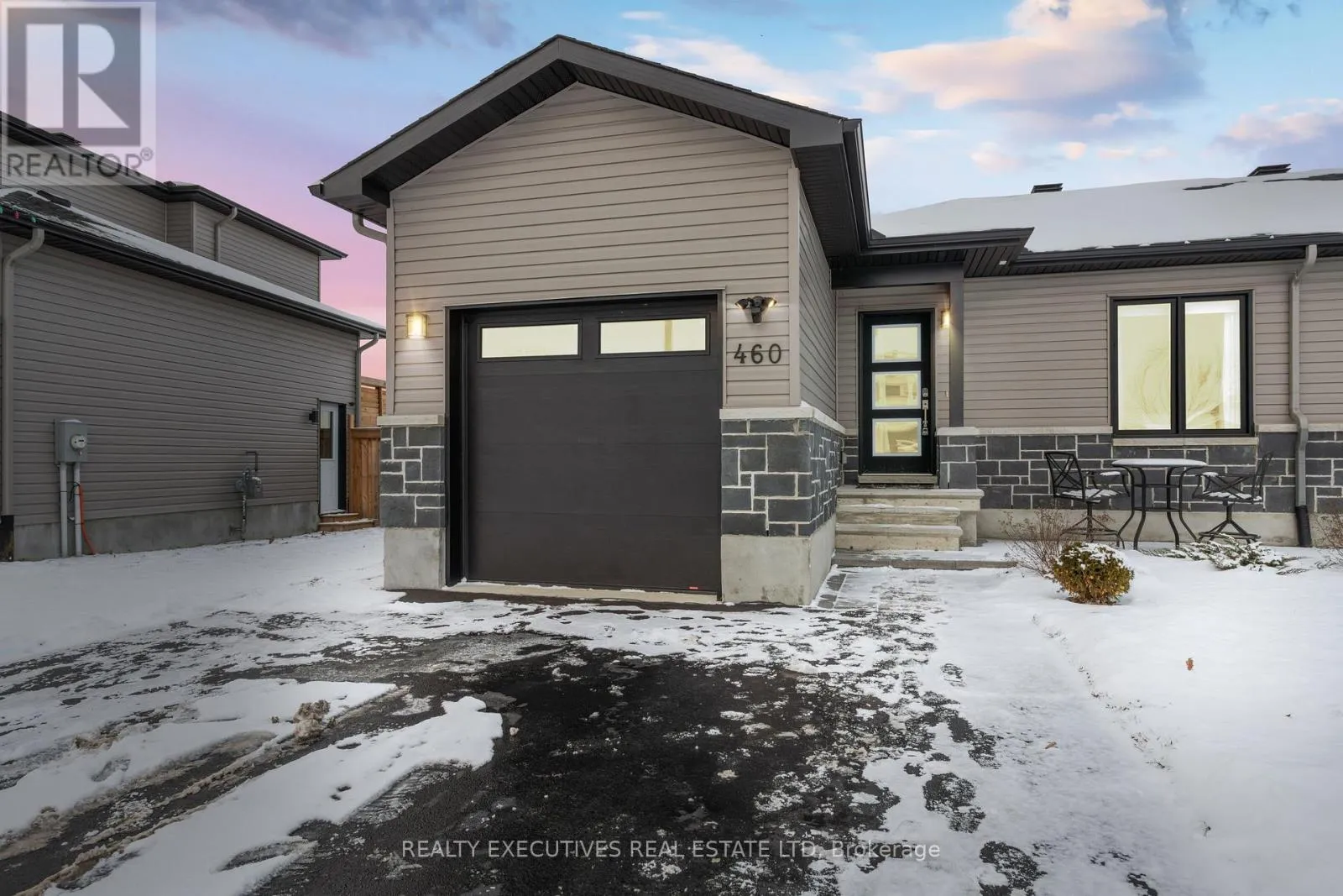 Cross Streets: Ottawa Street & Main Street. ** Directions: Winchester to Ottawa Street; turn right on Queen, left on Arora. Welcome to 460 Arora Crescent-A Modern, Move-In Ready Bungalow in Winchester Meadows! Discover comfort, style, and convenience in this beautifully designed 2021 semi-detached bungalow by Moderna Homes, located in the highly sought-after, family-friendly Winchester Meadows community. End unit provides windows and natural light from the west! Step inside to a bright, open-concept layout enhanced by 9-foot ceilings, hardwood flooring, and plenty of natural light. The modern kitchen features a breakfast-bar island, stainless steel appliances, and a natural gas stove, flowing effortlessly into the dining and living areas-perfect for everyday living or hosting family and friends. This home offers 2 bedrooms and a full bathroom on the main floor plus a full bathroom in the basement. The partially finished lower level is a major bonus, complete with a 3-piece bathroom, and additional versatile space for a family room, home gym, additional bedroom or extra storage. Step outside to a fenced backyard with no rear neighbours, offering peaceful views of the ravine and creek-your own private retreat. An attached 1-car garage with interior access adds everyday convenience. Generlink provides peace of mind with easy connection to a Generator. Close to parks, schools, shopping, and all the amenities Winchester has to offer, this move-in ready bungalow delivers modern living in a quiet, serene setting. A stylish, low-maintenance home in a desirable neighbourhood! (id:27476)