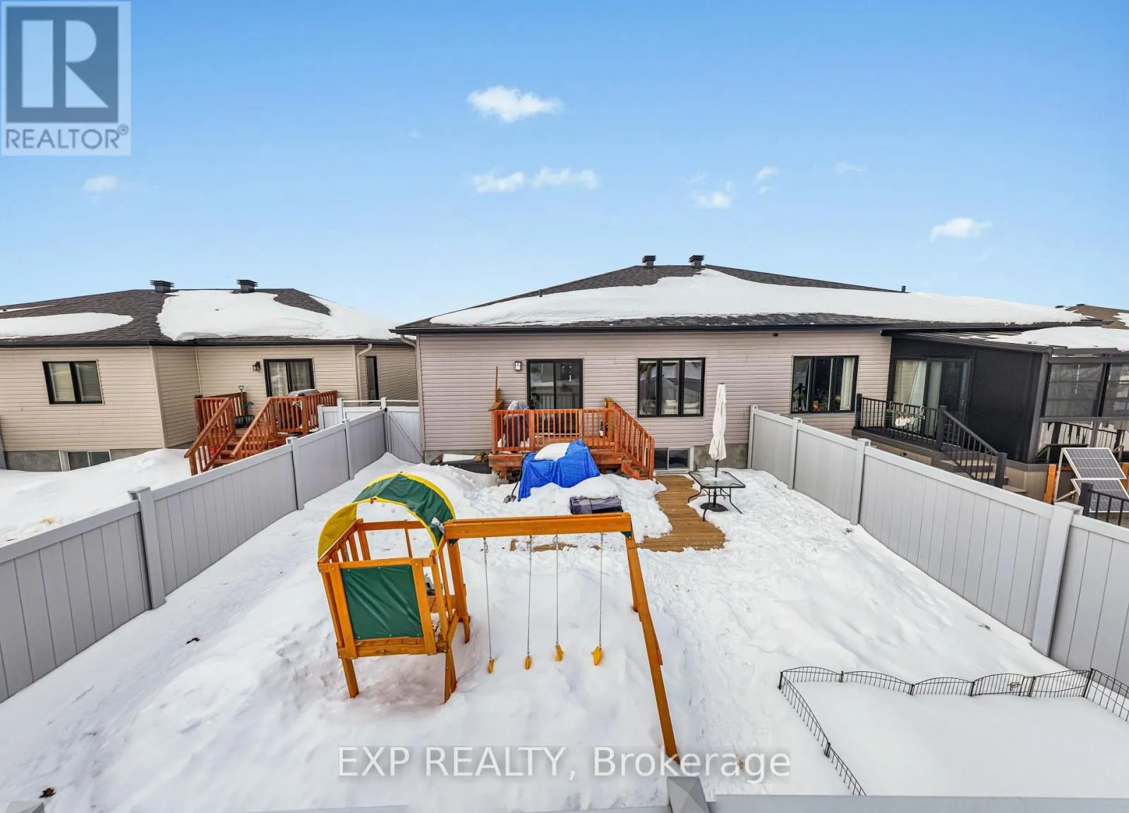 Cross Streets: Lancaster lane and Arora Crescent. ** Directions: From Main st East, head North on Ottawa street, turn right on Queen street and then a left on Arora Cres. Built in 2021 and still covered by Tarion warranty, this beautifully maintained 1344 sq.ft semi-detached bungalow offers modern comfort in the calm and friendly community of Winchester. With 3 bedrooms on the main floor plus a fully finished basement, this home delivers space and flexibility for families, downsizers, or multi-generational living. The bright main level features 9-foot ceilings and engineered hardwood throughout the living area, creating an open and inviting atmosphere. The primary bedroom includes its own private ensuite, while two additional generously sized bedrooms provide plenty of room for family or guests. Convenient main floor laundry is located near the garage entrance for everyday ease. Downstairs, the fully finished basement offers an additional bedroom and full bathroom-perfect for guests or extended family and a massive mechanical room providing exceptional storage space. Outside, enjoy a fully fenced backyard with a newer patio ideal for relaxing or entertaining. The paved driveway offers plenty of parking, complemented by a high-ceiling single-car garage. Ideally located close to the hospital, bank, grocery store, and other essential amenities, this move-in-ready home checks all the boxes. Don't miss your opportunity-book your private showing today! *Check out the video below* (id:27476)