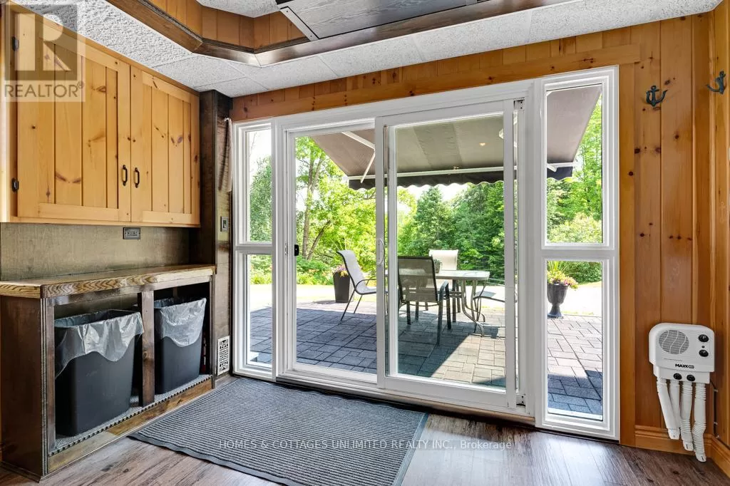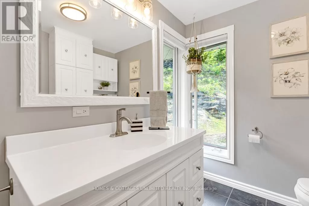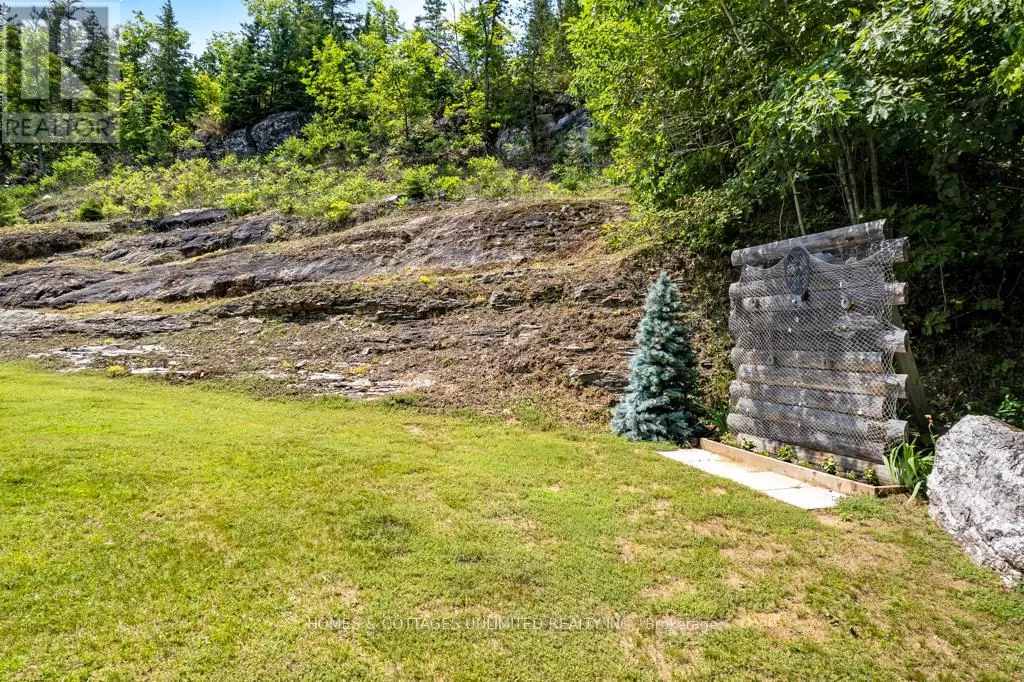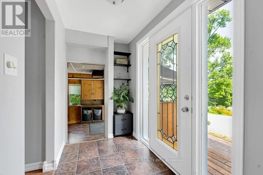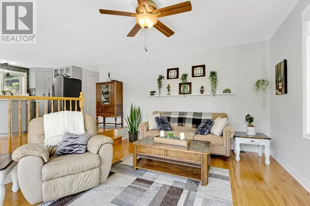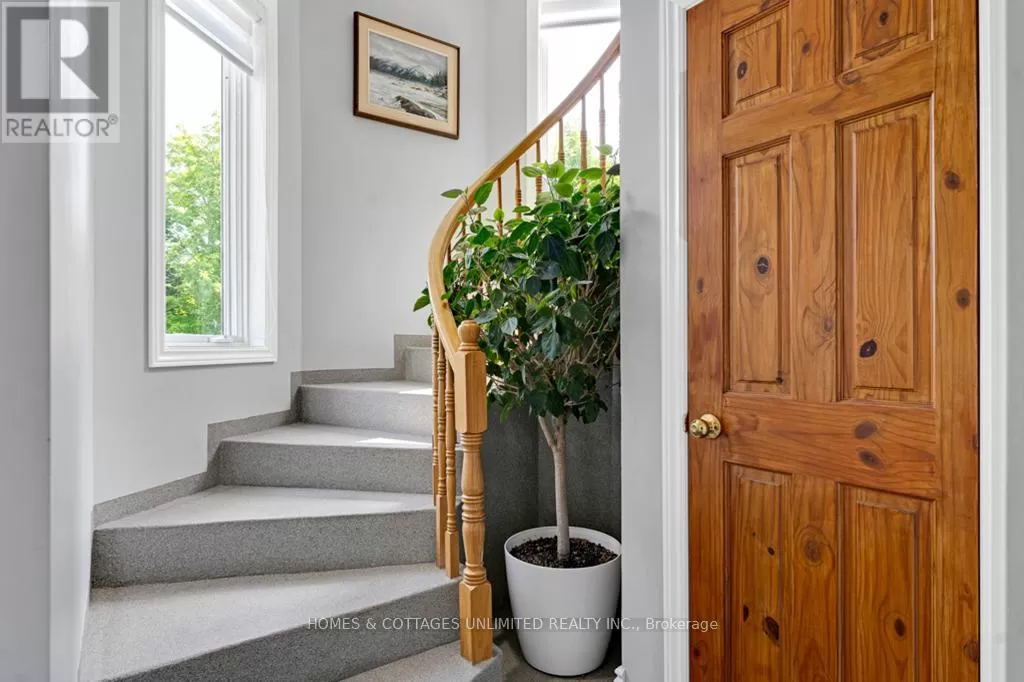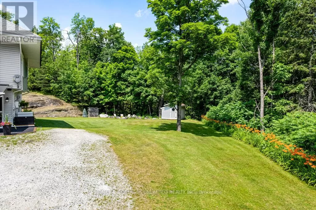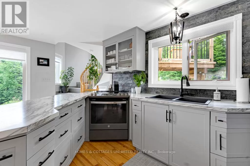 Cross Streets: Road 506. ** Directions: Located btw Ompah and Plevna on Hwy 509. Step into a home where every step is met with positive energy and charm. Inspired by castles and impeccably maintained, this light-filled haven offers a rare blend of whimsical design and contemporary comfort.The open-concept kitchen overlooks a cozy sunken living room, while a graceful circular staircase with granite-textured steps leads to a finished loft, ideal as a creative space or quiet retreat. Hardwood and laminate floors provide timeless appeal throughout.The walk-out lower level features a welcoming bar and generous storage, while the main floor bath conveniently doubles as a laundry space. A private backyard with a shed offers room to garden or unwind, and the raised balcony is perfect for evening sunsets and stargazing with a glass of wine in hand.Just a short stroll to the sandy shores of Palmerston Lake, and mere minutes to local conveniences including a hardware store, LCBO, market, and restaurant with the vibrant town of Perth only an hour away.A rare offering for those drawn to something magical, memorable, and entirely their own. (id:27476)