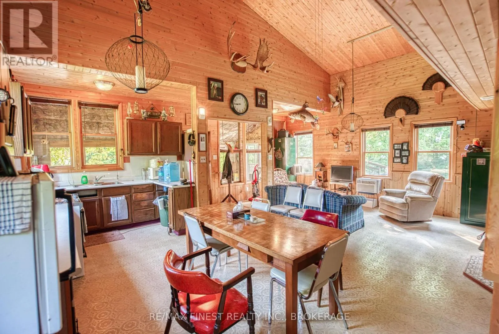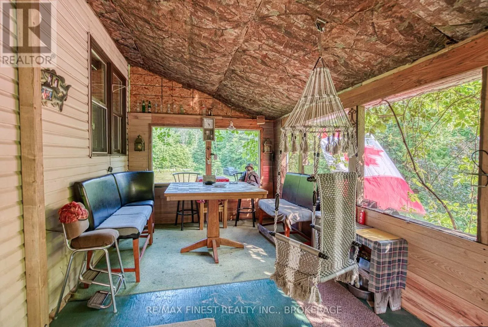 Cross Streets: Donldson Road. ** Directions: Contact listing agent (vehicle must sit higher for a water crossing, all wheel drive is ideal). Antoine Lake, Snow Road Station ON; If you have been seeking a remote Hunting/Fishing getaway, then this could be it. 88-acre parcel of land with frontage on Antoine Lake and Antoine Creek- this lake is a private lake with only a few private landowners on the lake. Seller saysits good walleye fishing, also northern pike, bass and perch. The land is heavily wooded with trails throughout and hunting blinds throughout the property. Great property for someone wanting to cut their personal firewood as well. The cabin is nicely finished in cedar and pine, it features an open concept living room and kitchen, 2 bedrooms on the main level with a potential 3rd currently used for storage, and a large loft area for extra sleeping. The generously sized screen porch is a great place to gather, tell some stories and play cards. The cabin is powered with generator and some solar. Potable water is brought in, rainwater is gathered for outdoor shower and outdoor privy is accessible by deck from the cabin. It is about a 10-minute trip from township road to the property. A unique and fun property for any outdoors person. (id:27476)