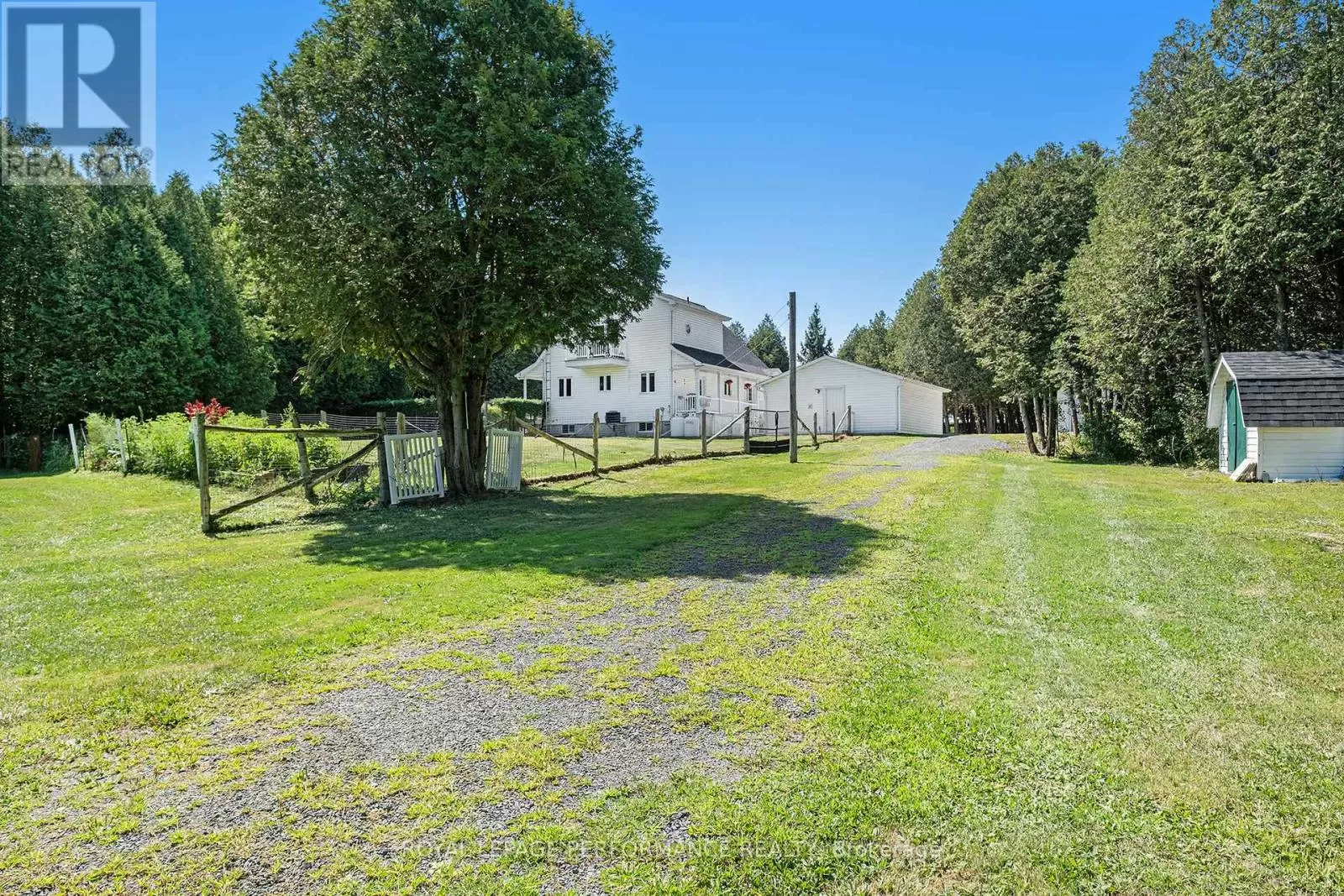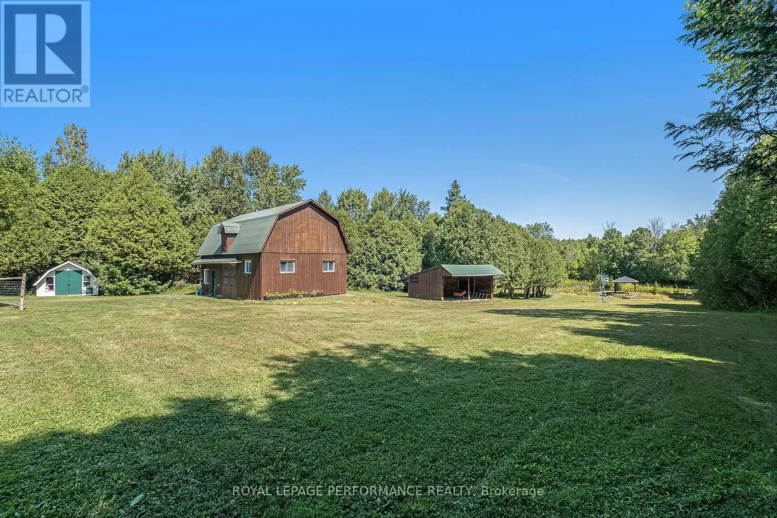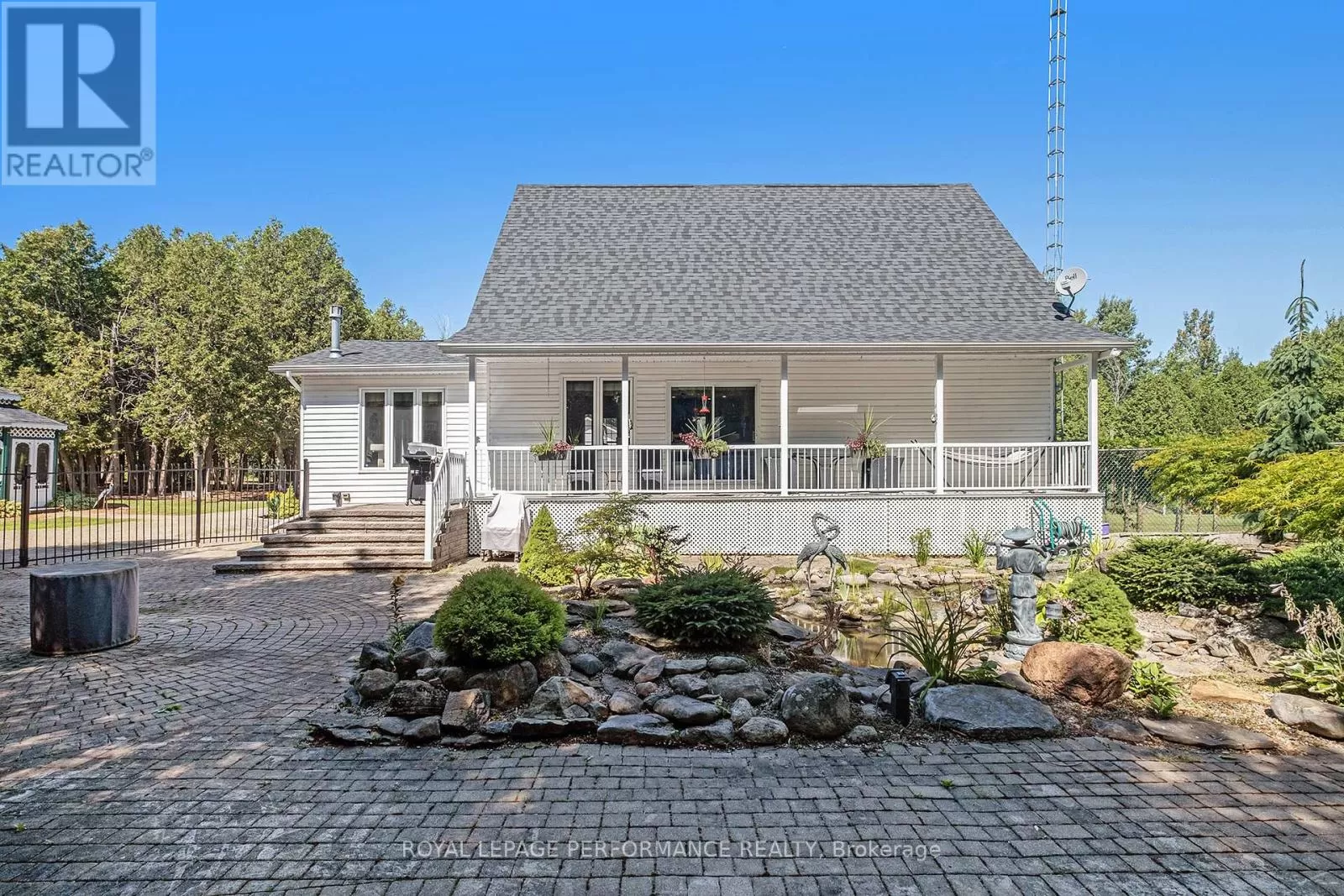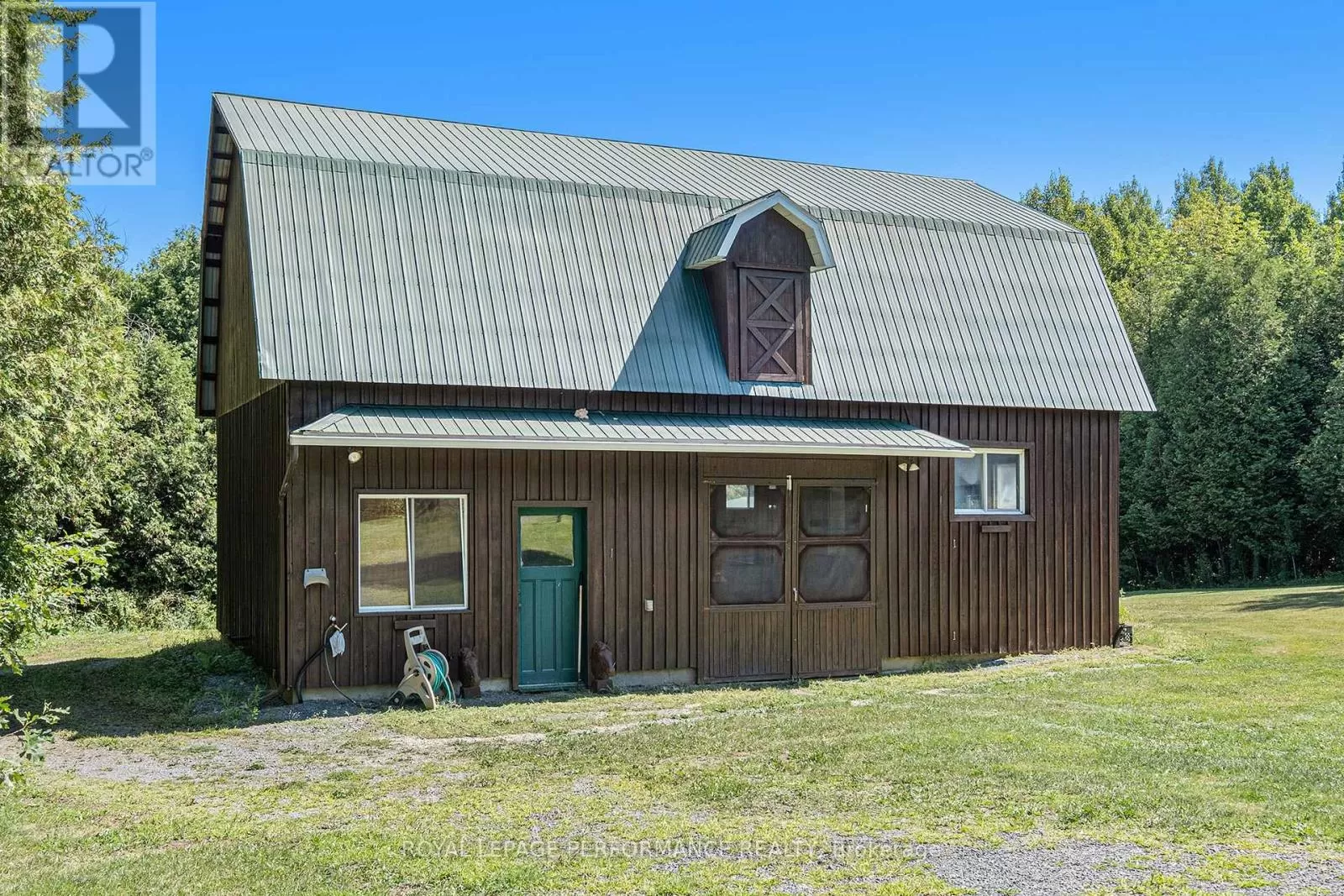 From Alexandria, West on Hwy 43 to Kenyon Dam Road, South on Kenyon Dam Road approximately 1 mile to property. Charming chalet style 2 bedroom home on 5.69 acres. A perfect blend of privacy and peaceful retreat for you and your beloved animals. This incredible property with it's many out buildings offers numerous possibilities. Two detached garages. (One currently being used as a dog kennel-rear with access to a fenced dog yard). The other double garage is a perfect spot for your vehicles and other toys. The 4 stall barn is well equipped with a tack room water lines. The home boasts recent updates including the gourmet kitchen with granite counters, backsplash, stainless appliances and breakfast island. Cathedral ceilings lend to the spacious and bright atmosphere. Living room with access to the covered porch overlooking the rock pond. A dining room, suitable for family gatherings is showered by plenty of natural light. Second floor loft features a home office space. A primary bedroom with a updated 3pc bathroom, walk in closet and a balcony overlooking your homestead. The finished basement includes a rec room, storage, utility rooms and potential for a 3rd bedroom . Sip your morning coffee from the screened in gazebo out front. Or take a stroll and cross a bridge over a private pond to the covered picnic shelter. Other notables: Roof shingles 2024. (All other outbuildings 2020). Generac Generator 2023, interlocking patio/ driveway. Shopping, hospital and other amenities in the nearby towns of Alexandria/Lancaster. Quick commute to Cornwall/Montreal. As per Seller direction allow 24 hour irrevocable on offers. Schedule your private tour today! (id:27476)